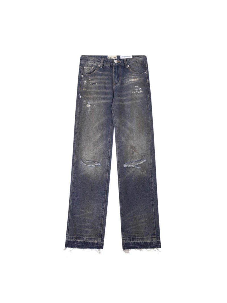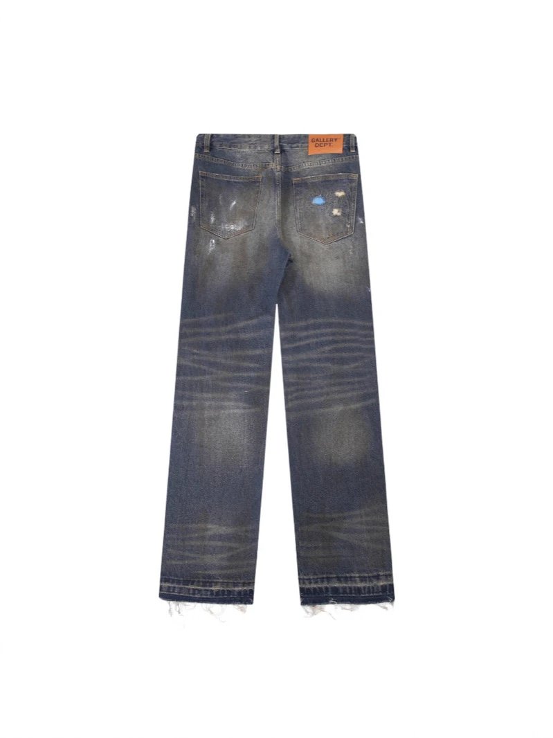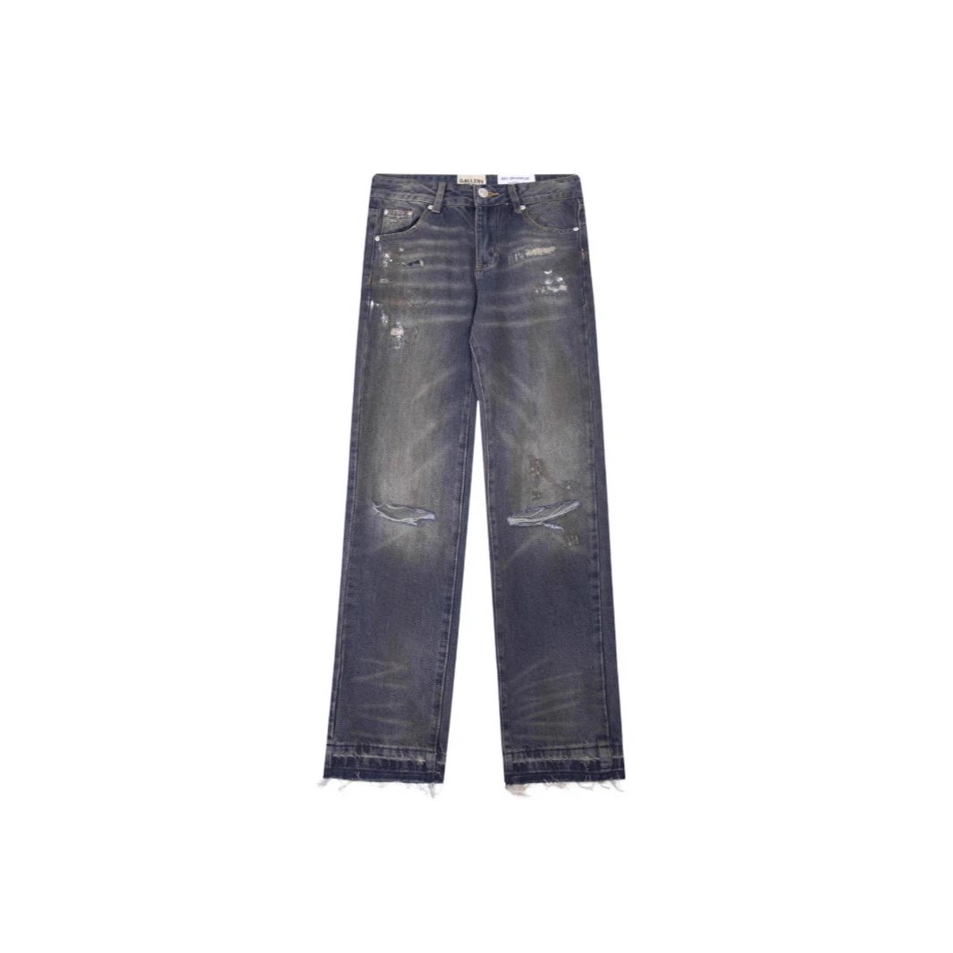 Gallery Dept复古泼墨破洞刺绣洗水小直筒束脚牛仔裤休闲长裤