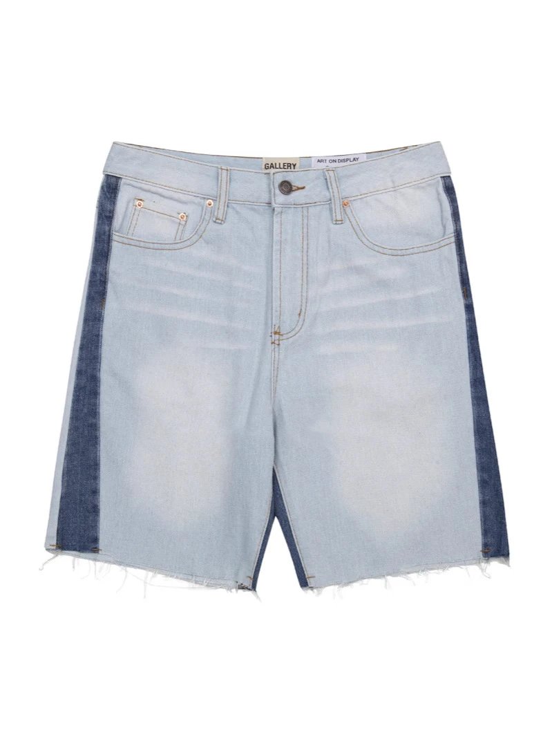 Gallery Dept水洗浅蓝色拼接牛仔短裤刀割流苏牛仔裤休闲裤男女