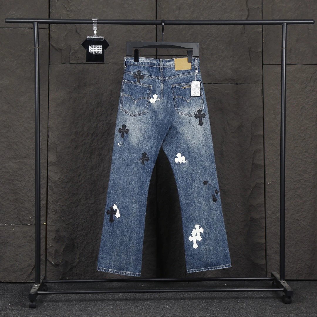 Trendy Broken Planet Embroidered Cross Straight Leg Jeans for Spring/Summer Street Fashion