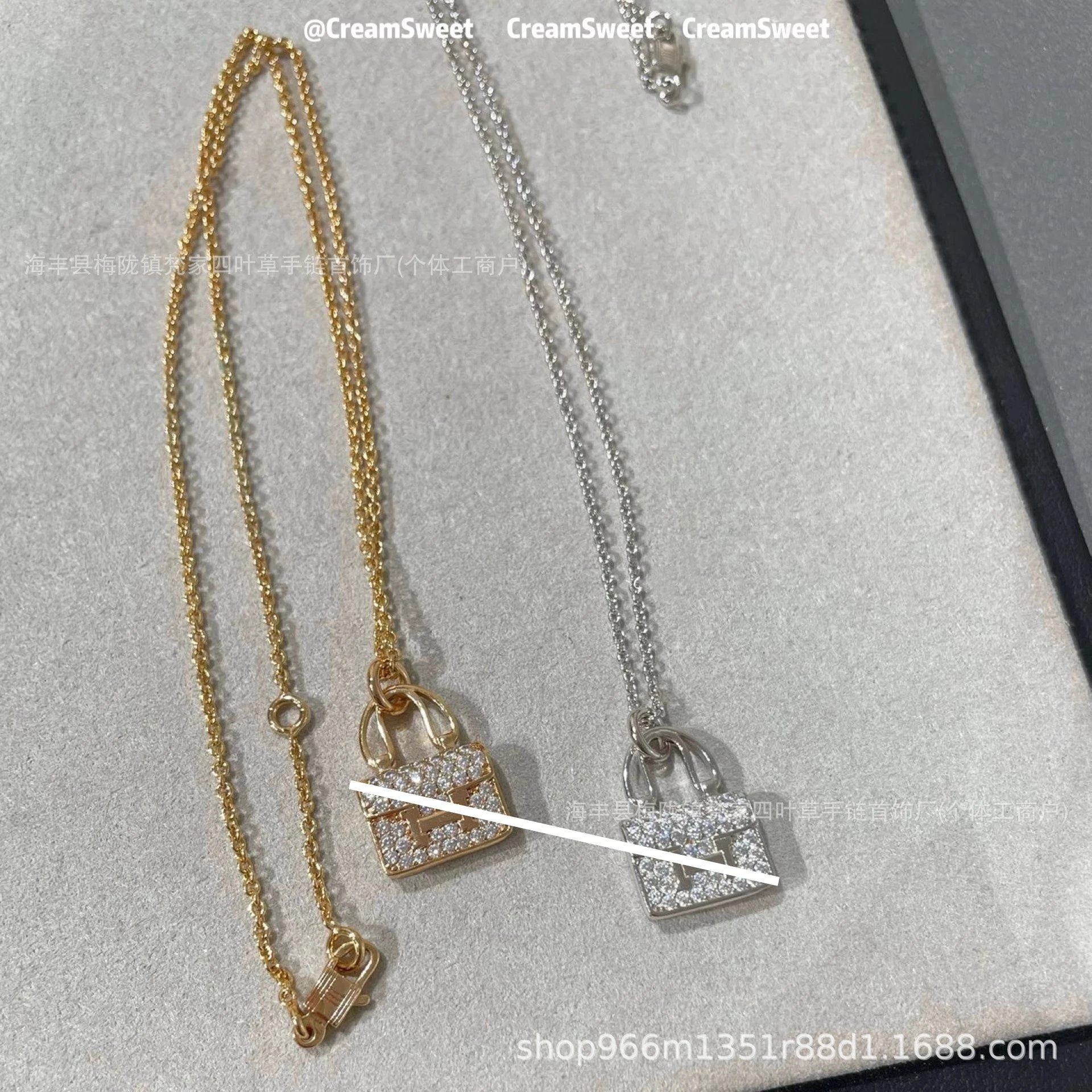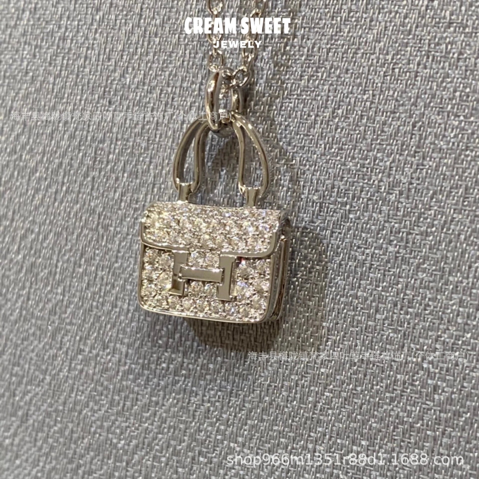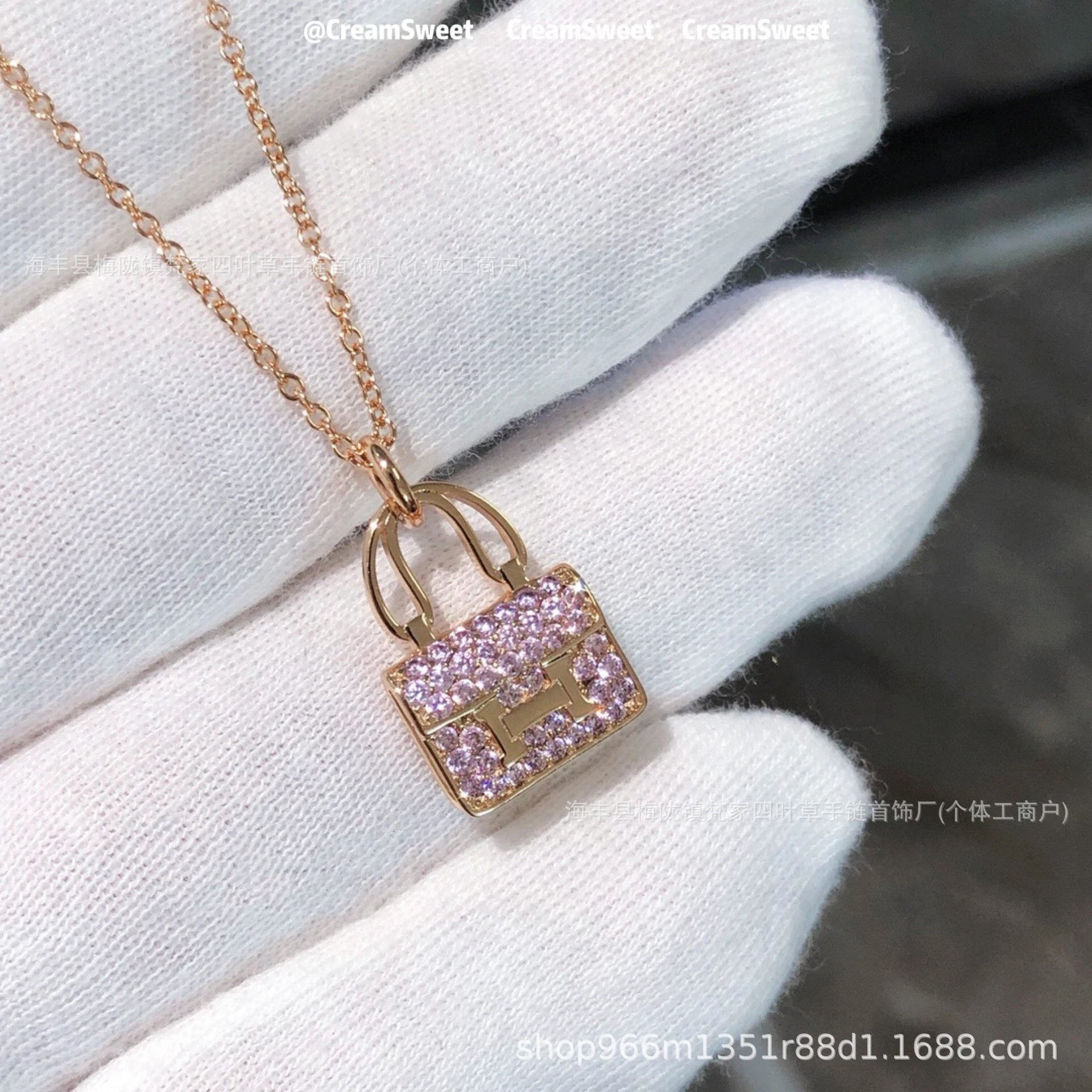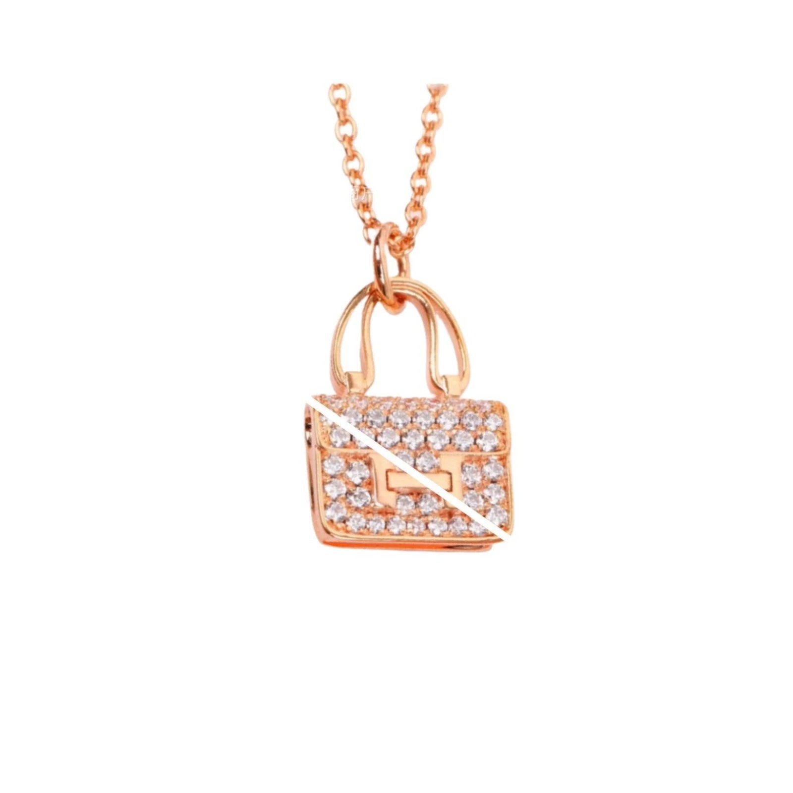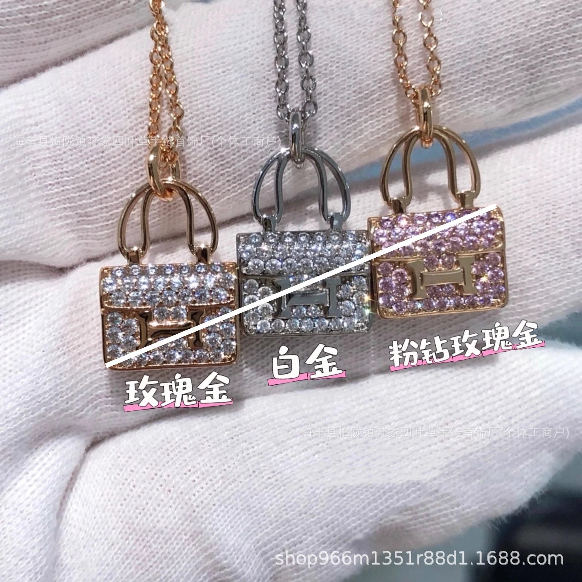 爱家镶钻H康康包项链锁骨链女镀18K金玫瑰金吊坠锁骨链