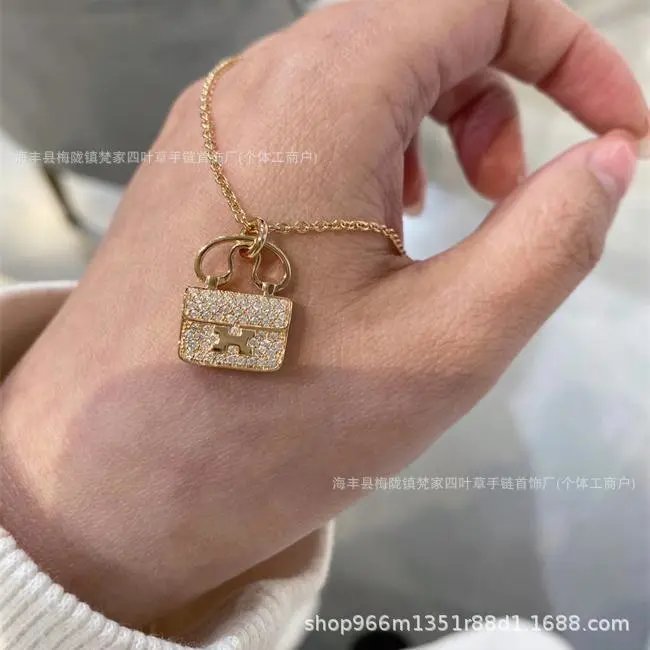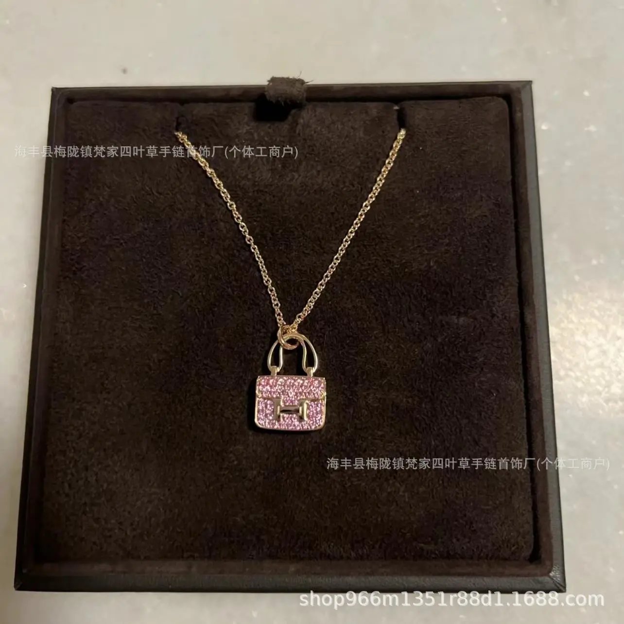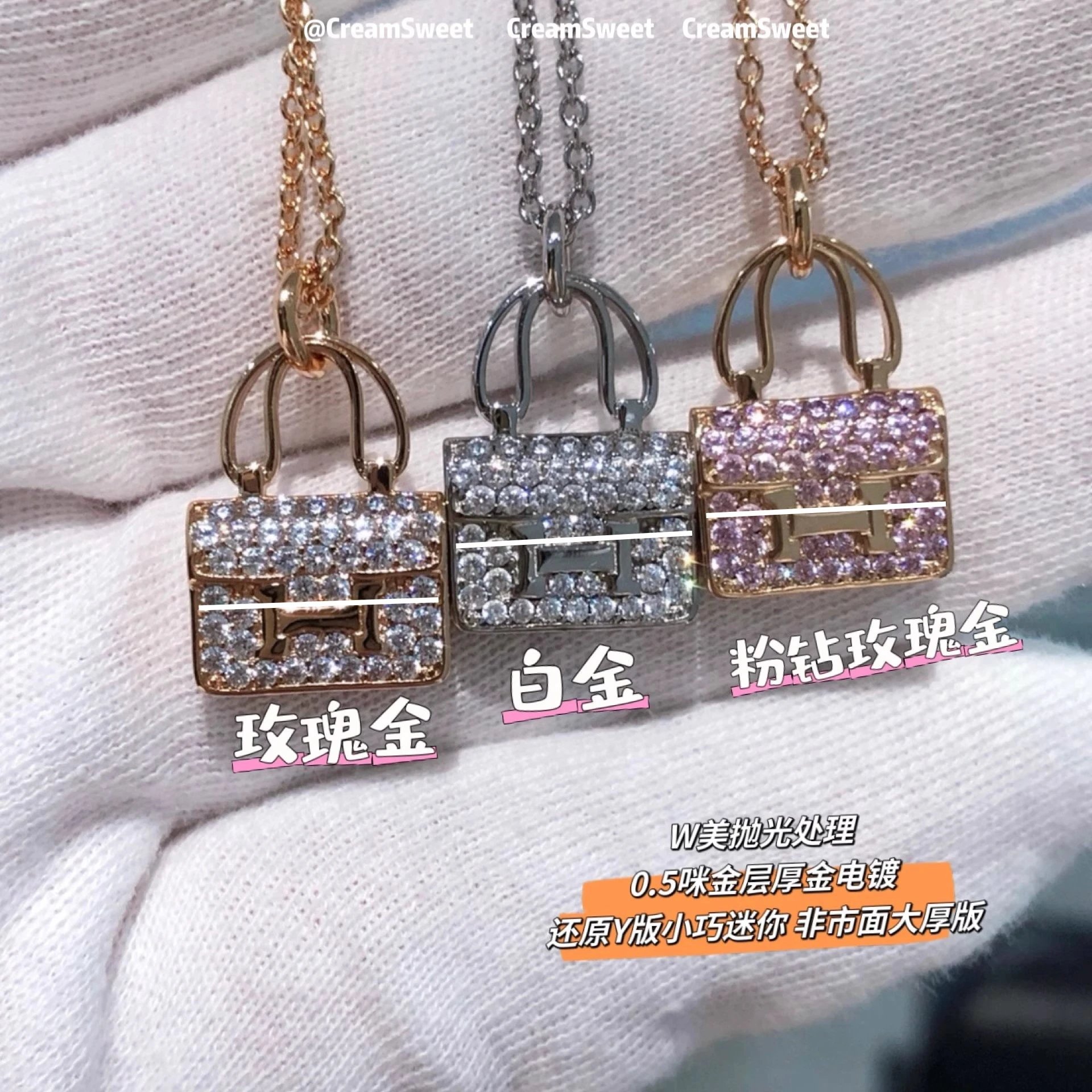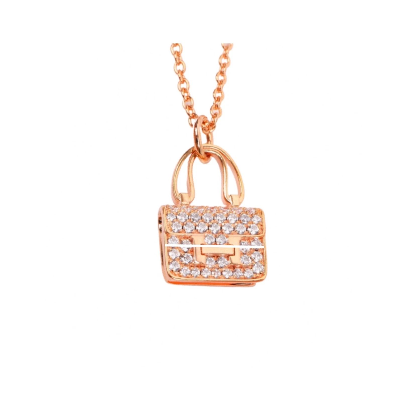 爱家H康康包项链女镀18K玫瑰金吊坠锁骨链轻奢手提包锁骨链
