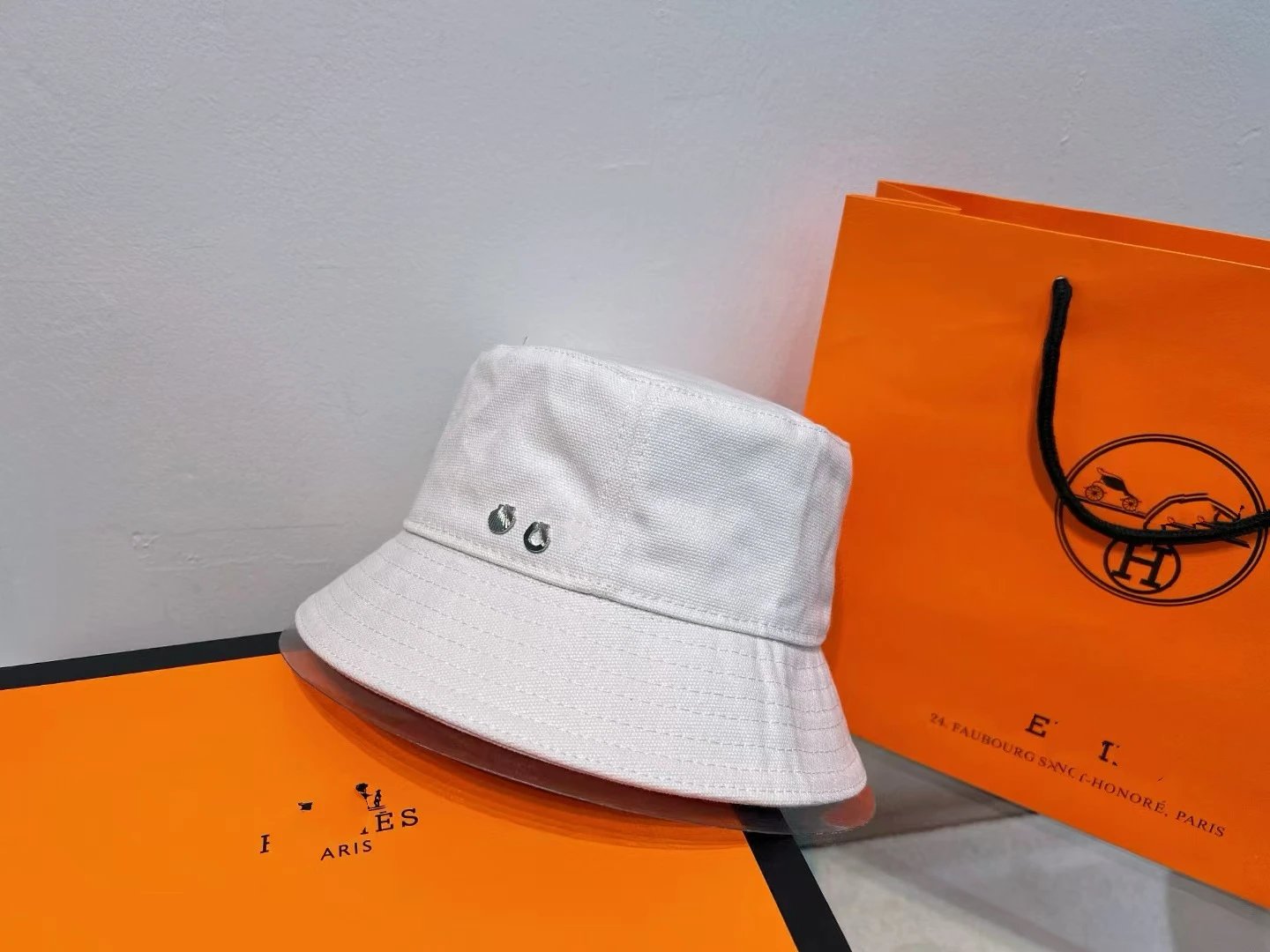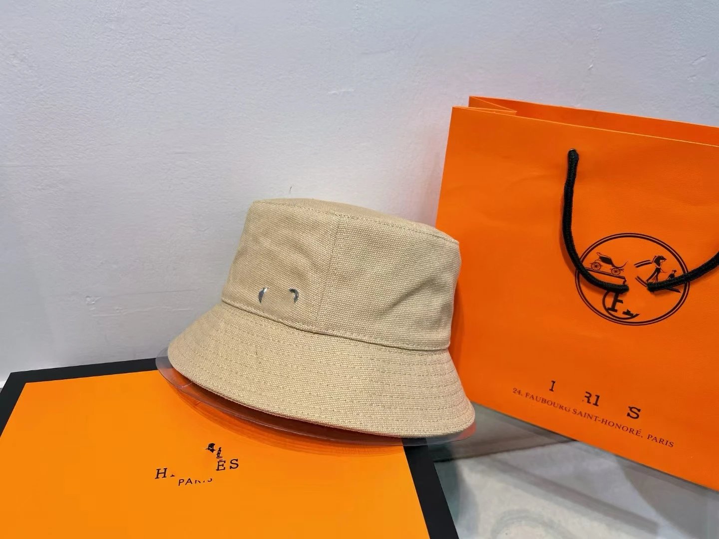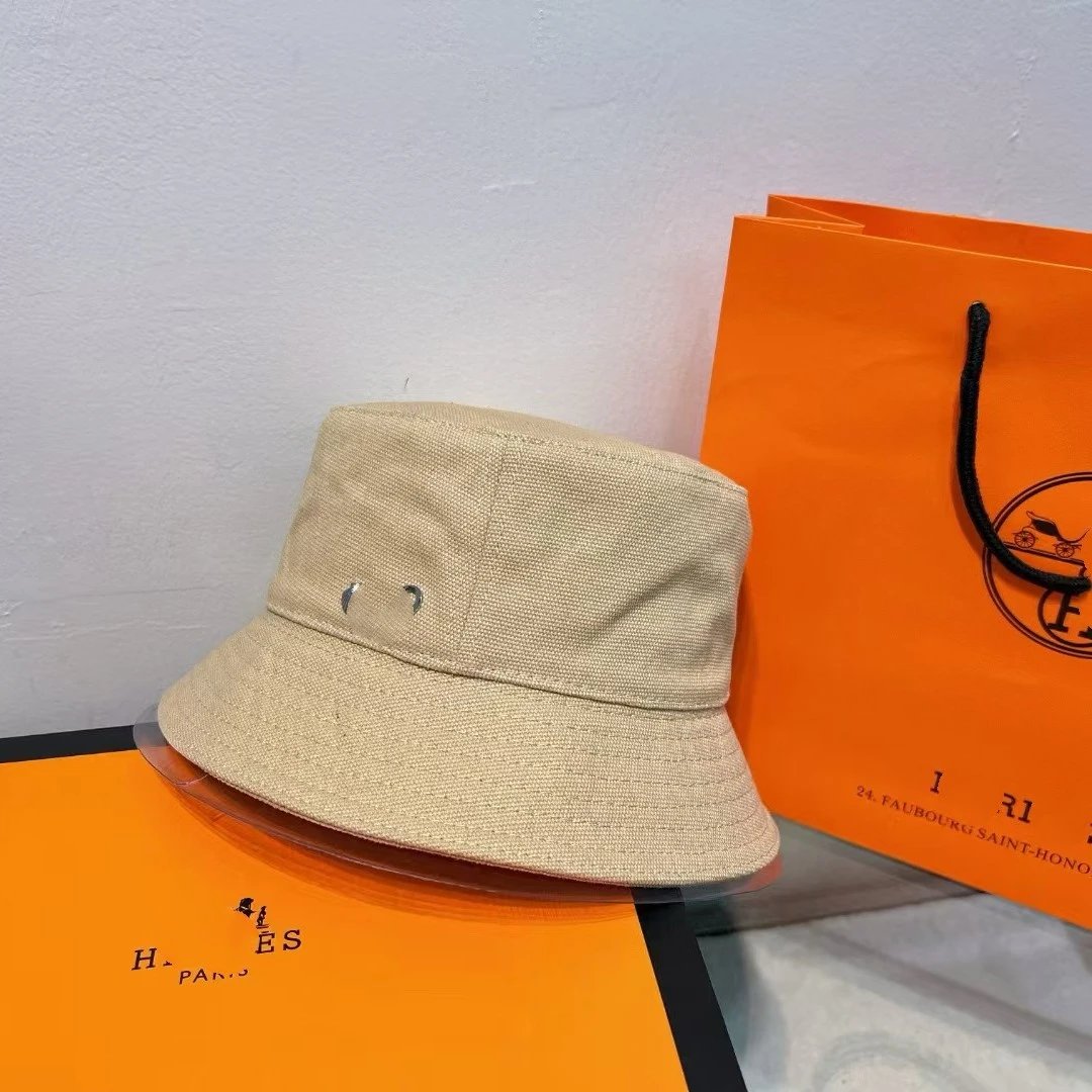 H家新棉质帆布渔夫帽女铆钉徽章高级感高版时尚透气百搭帽男