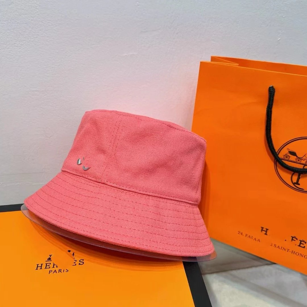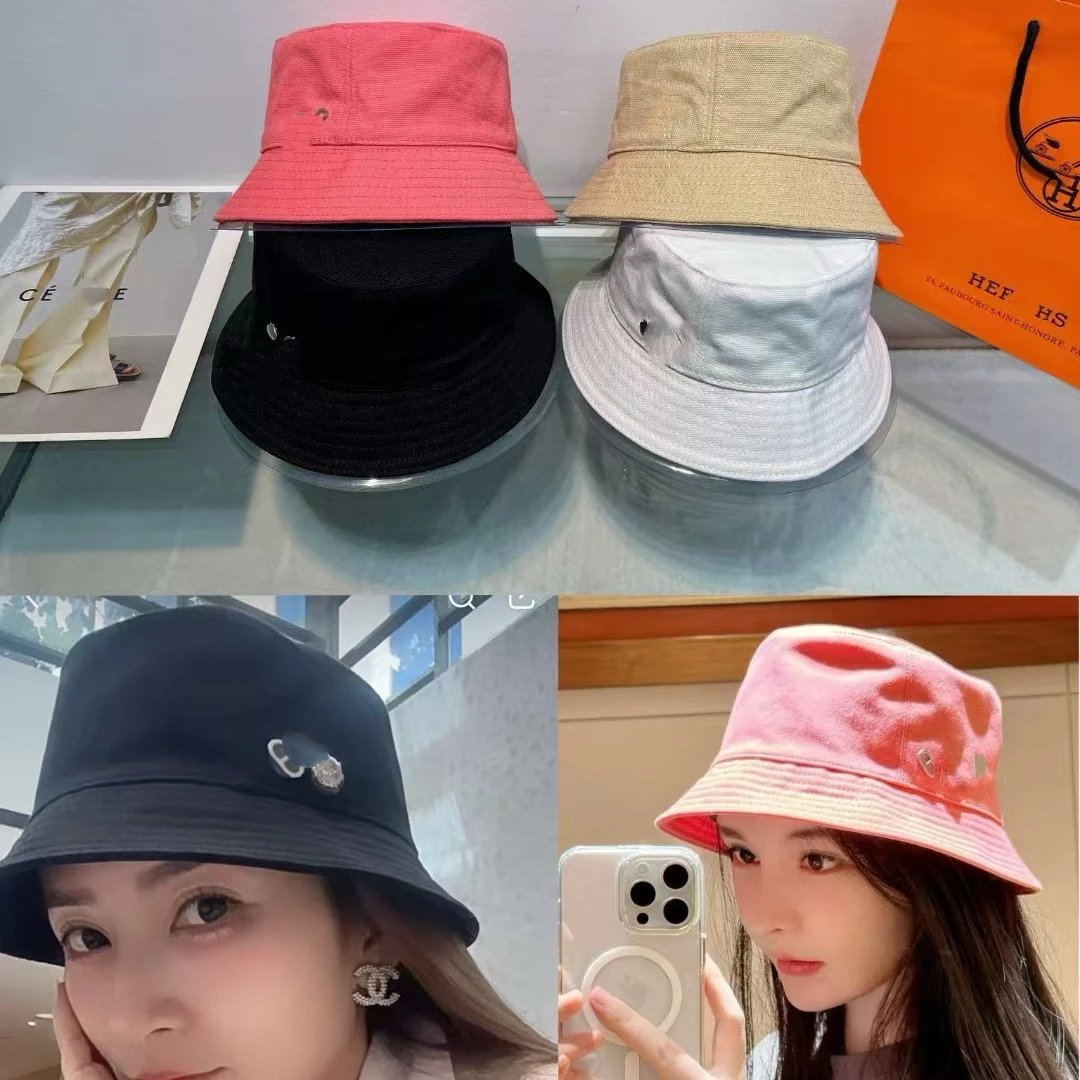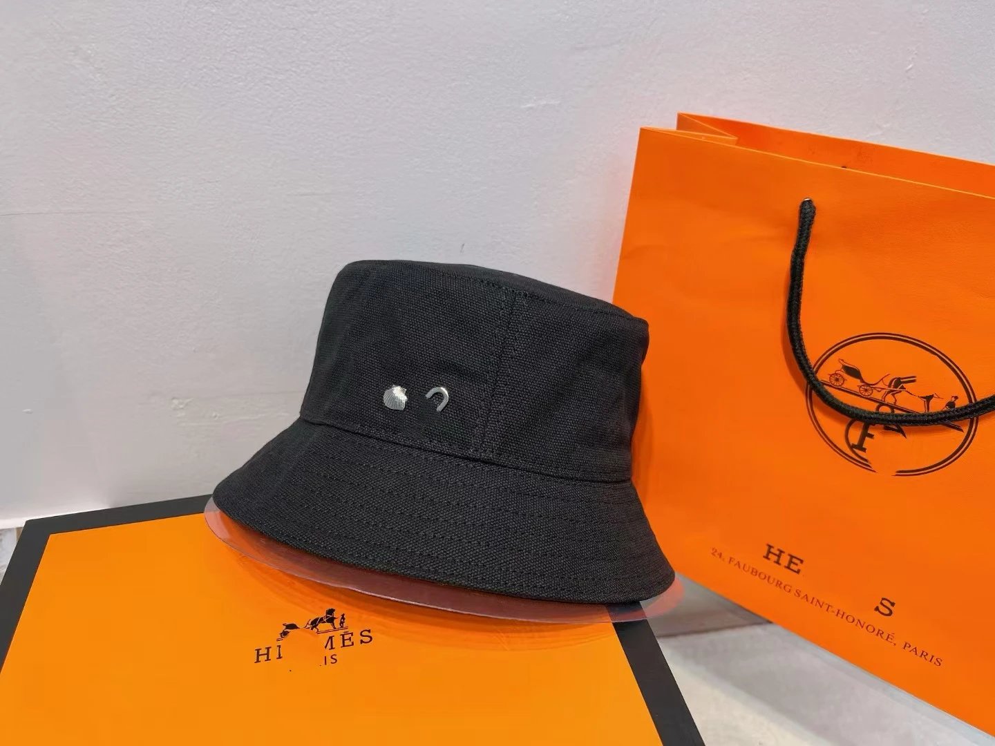 H家新棉质帆布渔夫帽女铆钉徽章高级感高版时尚透气百搭帽男