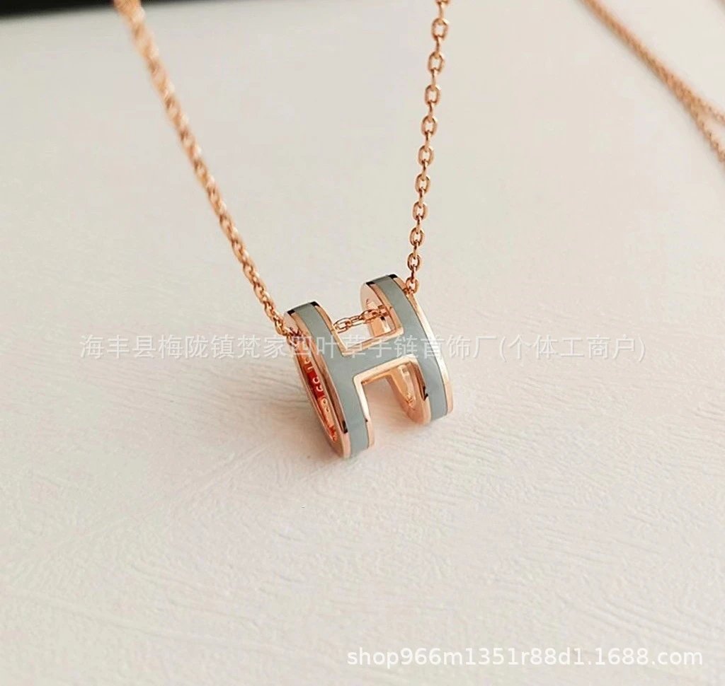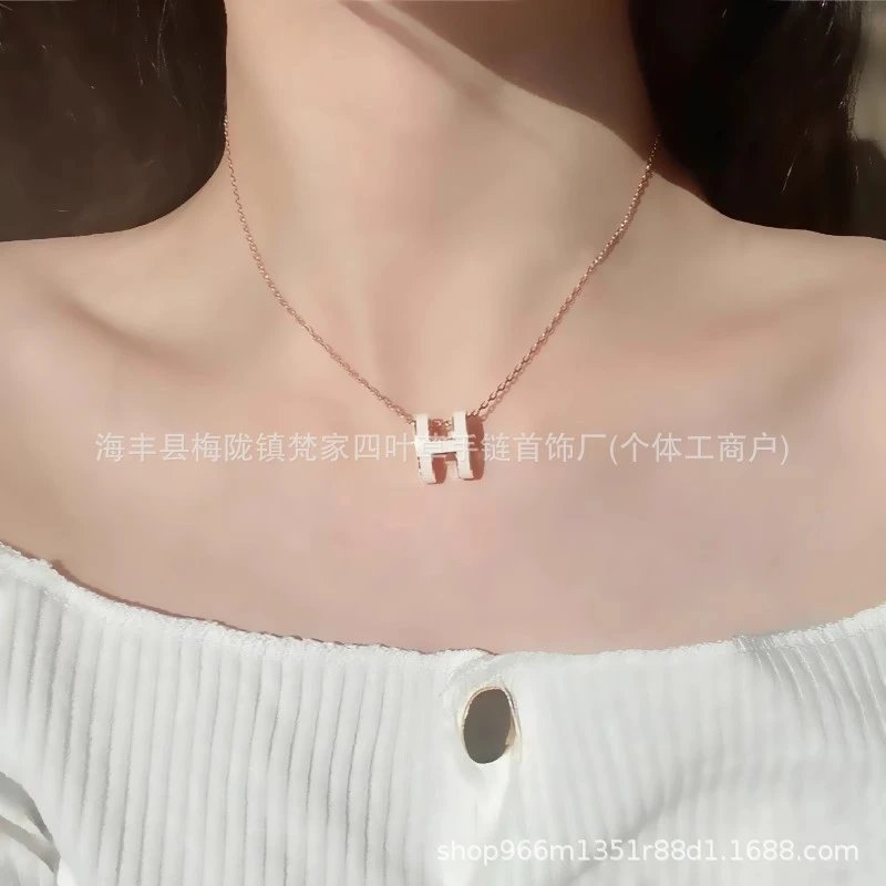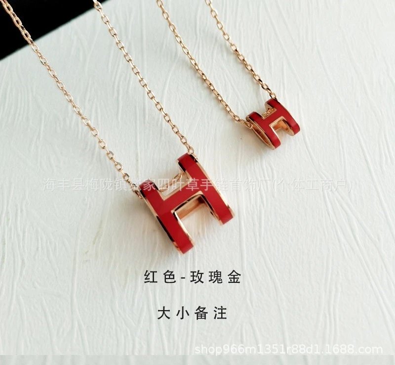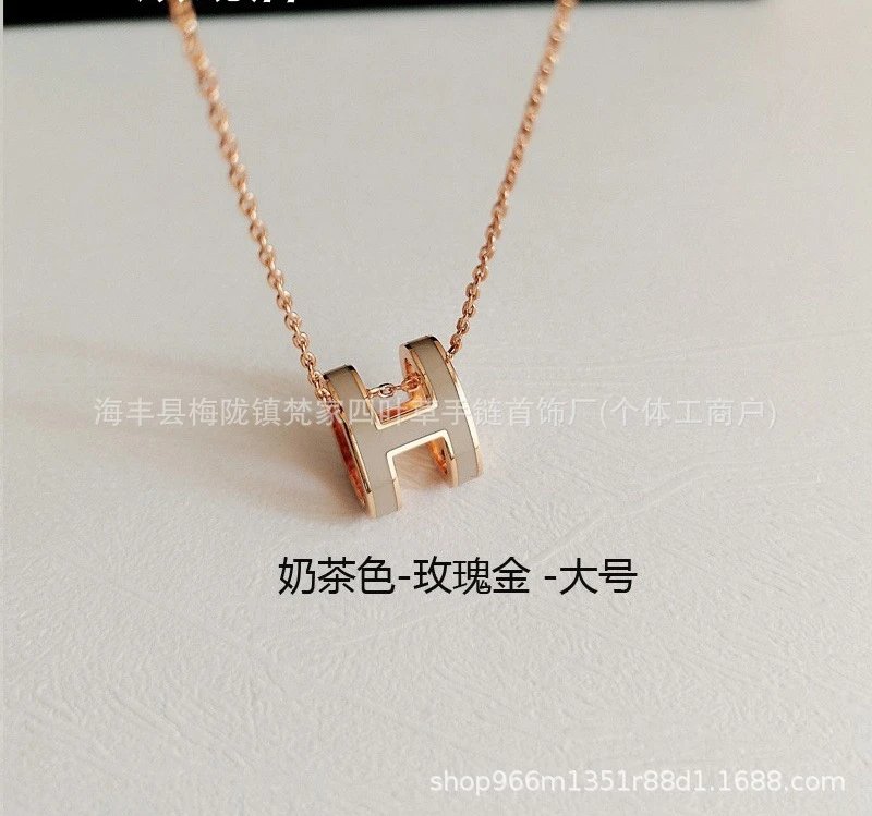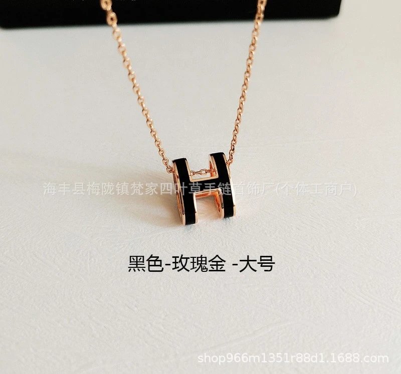 爱家新款H项链女H字母吊坠轻奢V金高级感锁骨链mini号