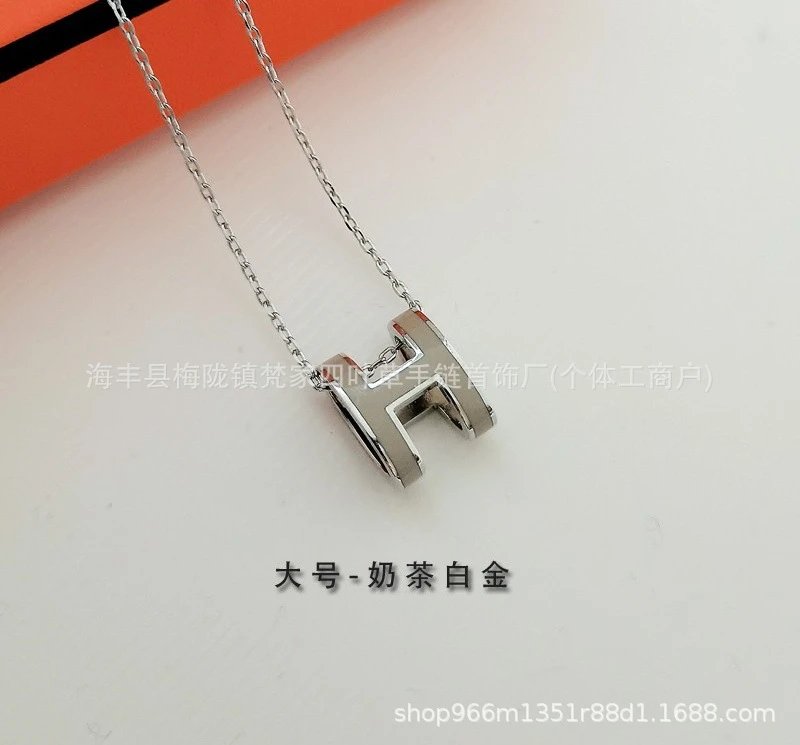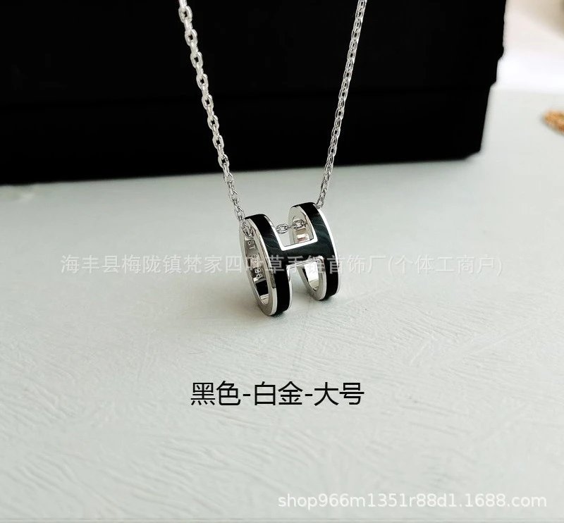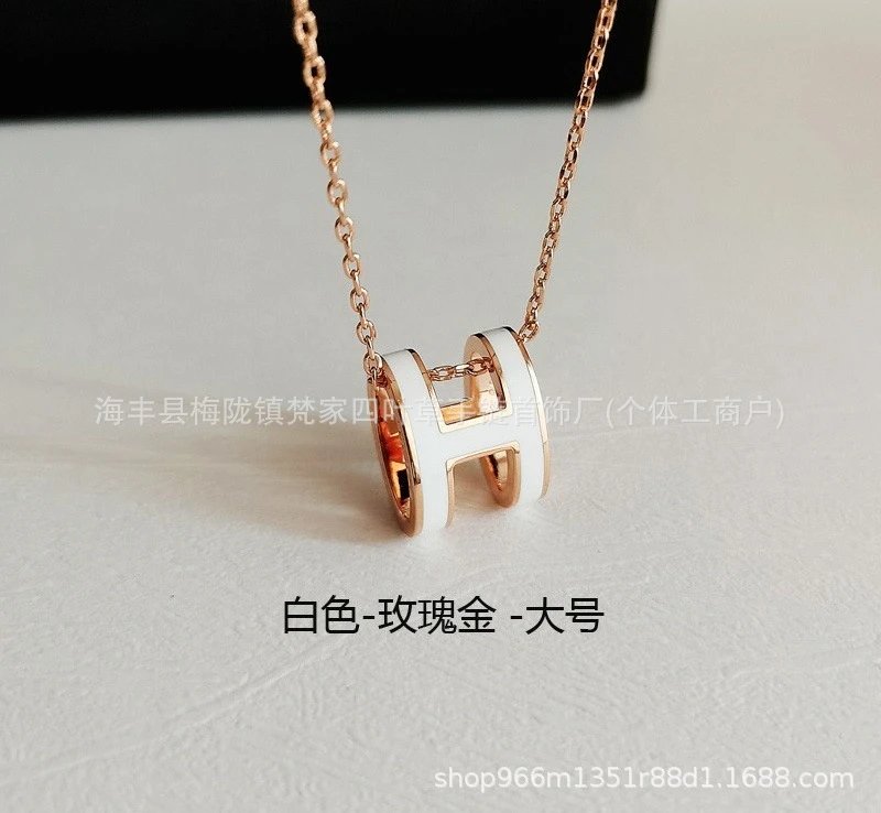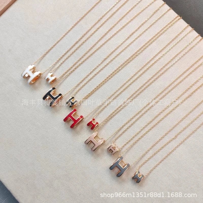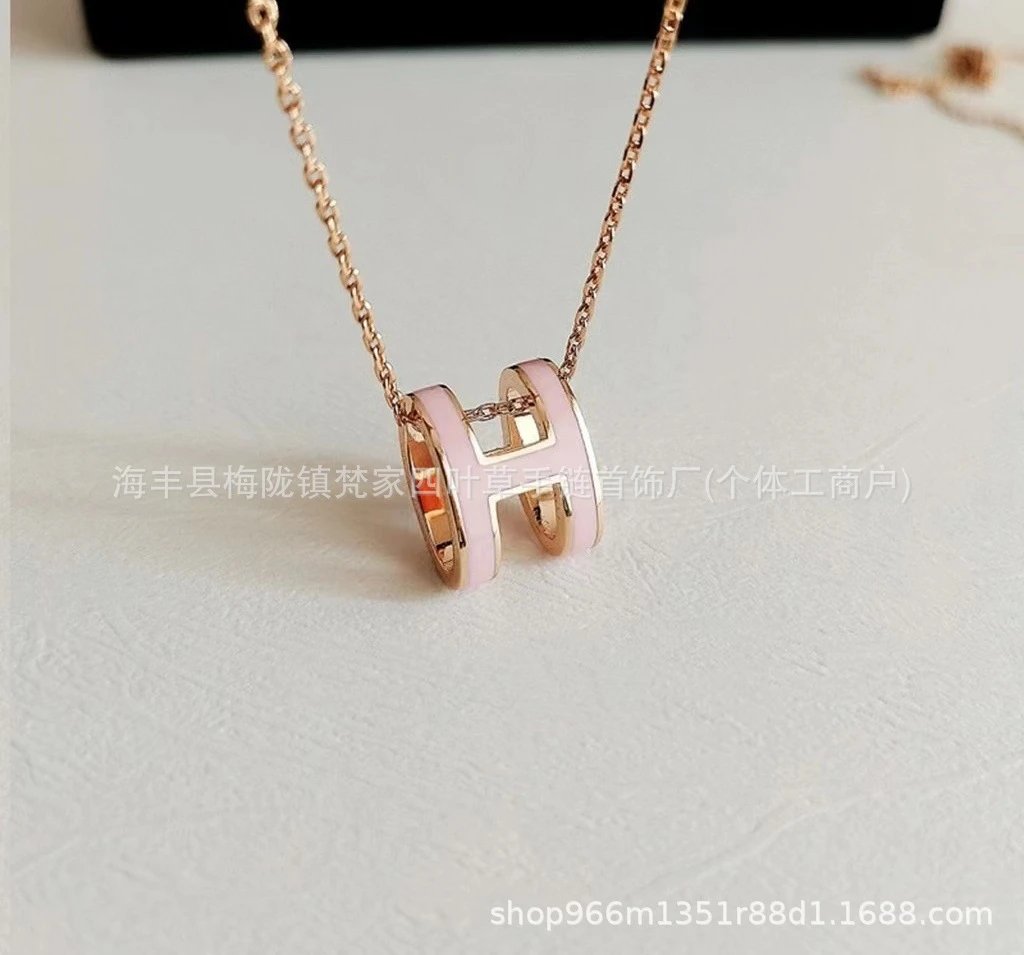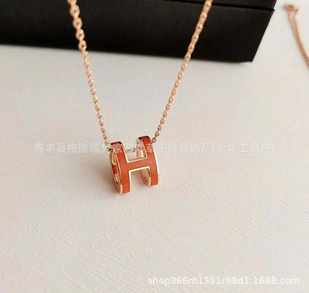 爱家新款H项链女H字母吊坠轻奢V金高级感锁骨链mini号