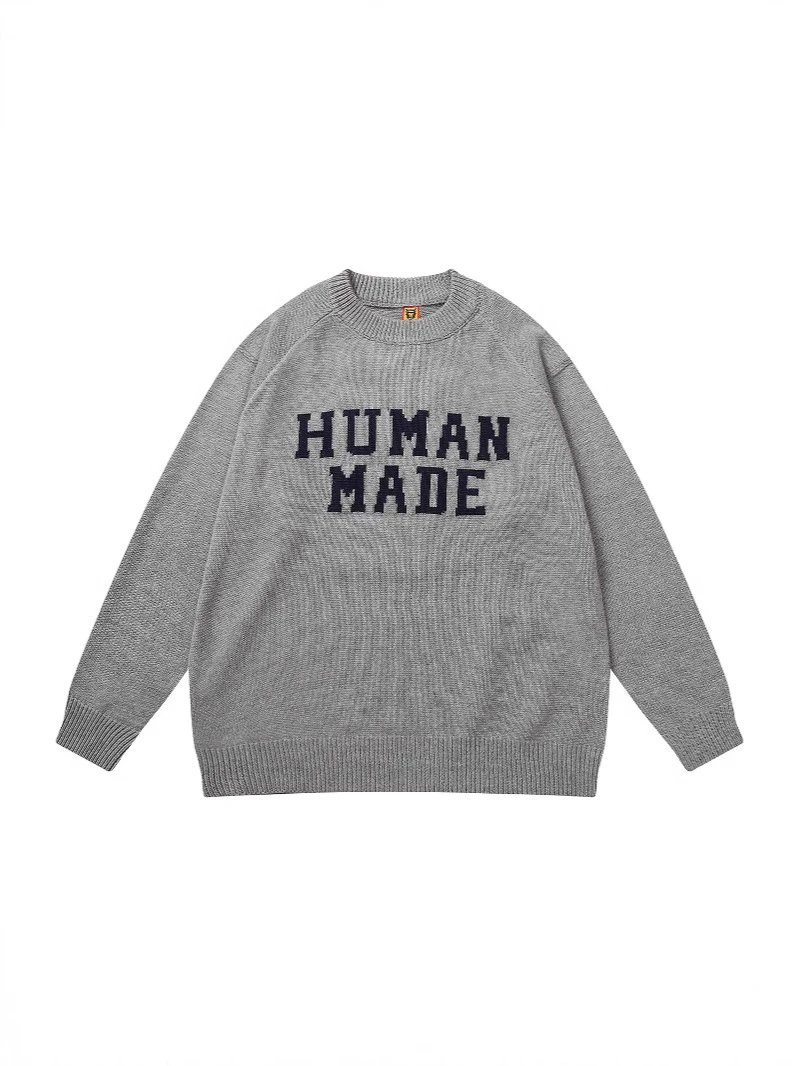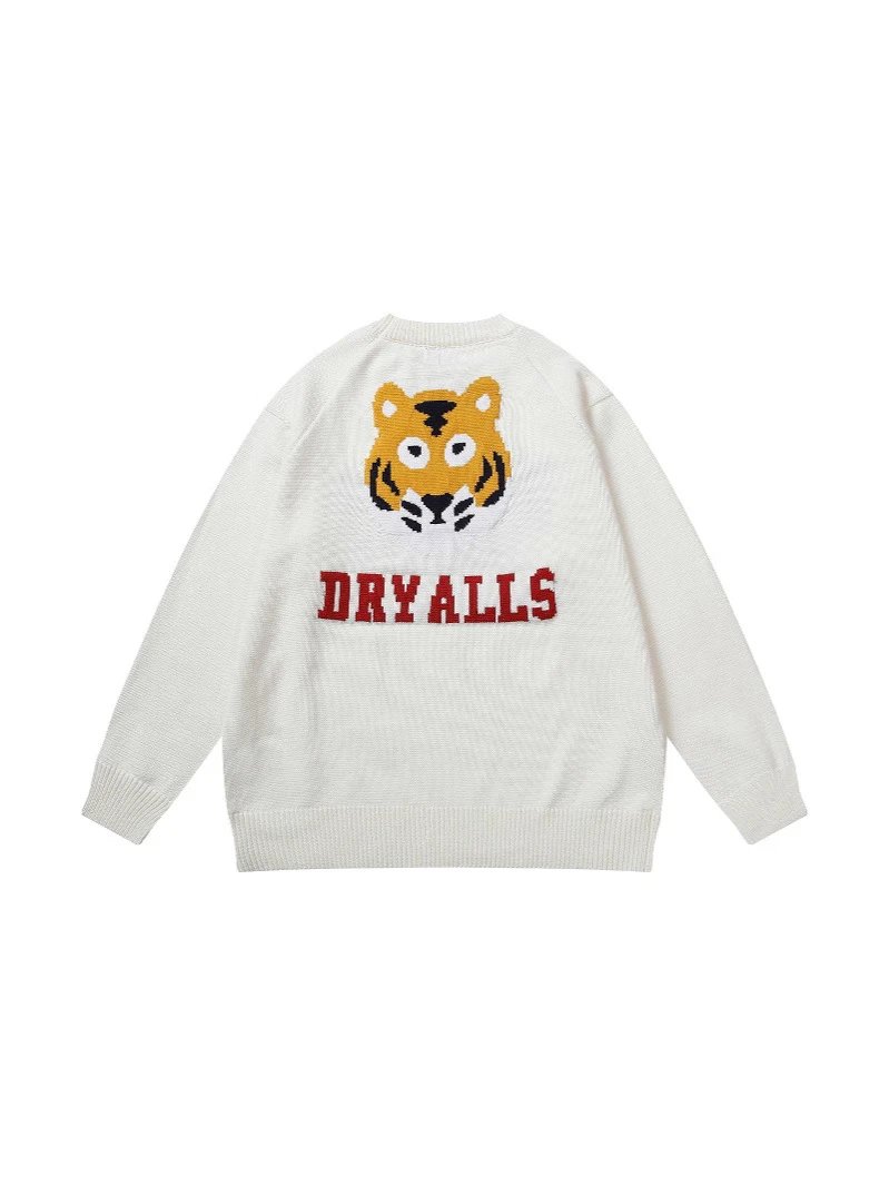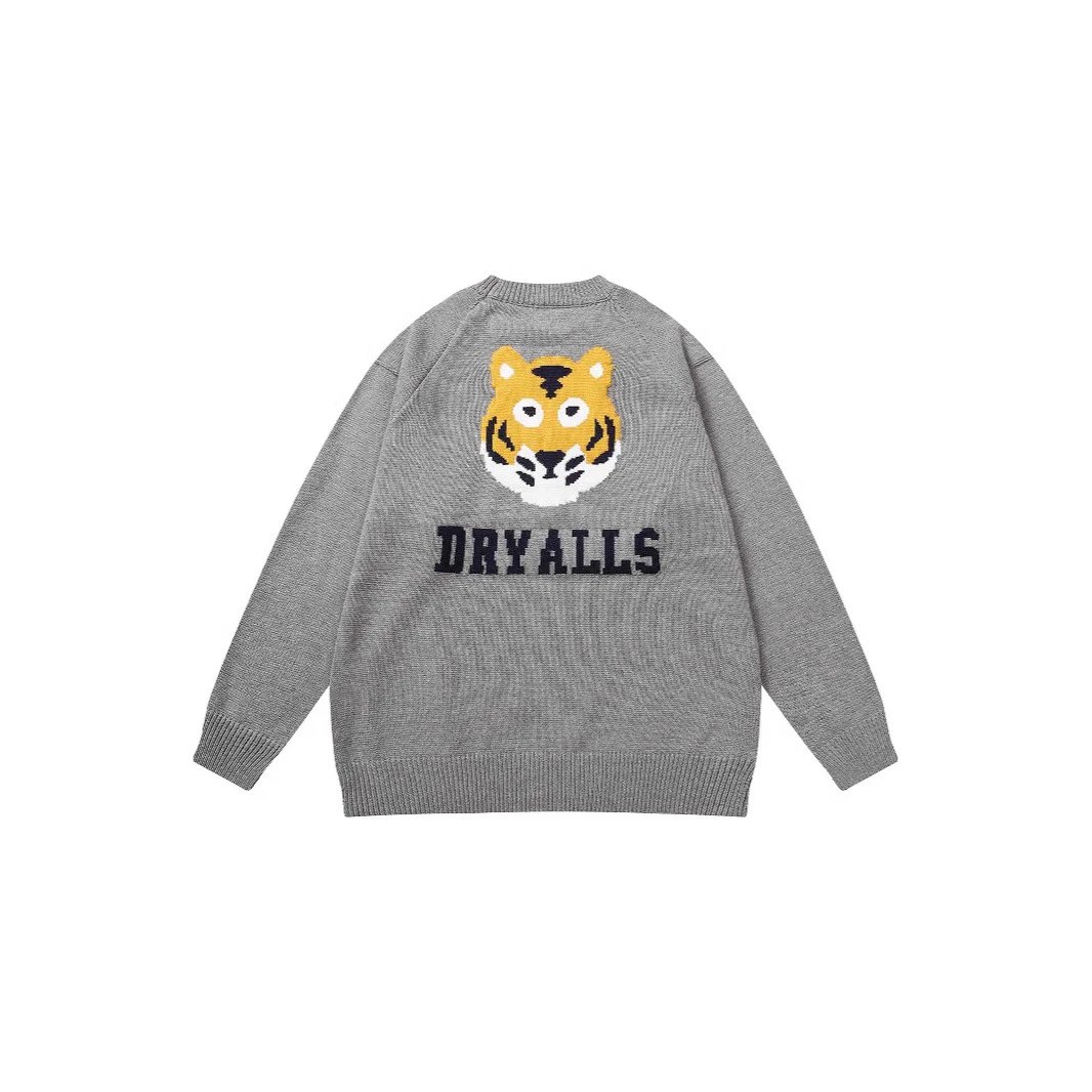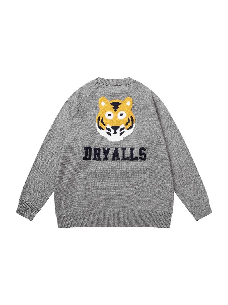 日系复古斗HUMAN 虎头印花男女秋冬宽松休闲毛衣针织衫潮