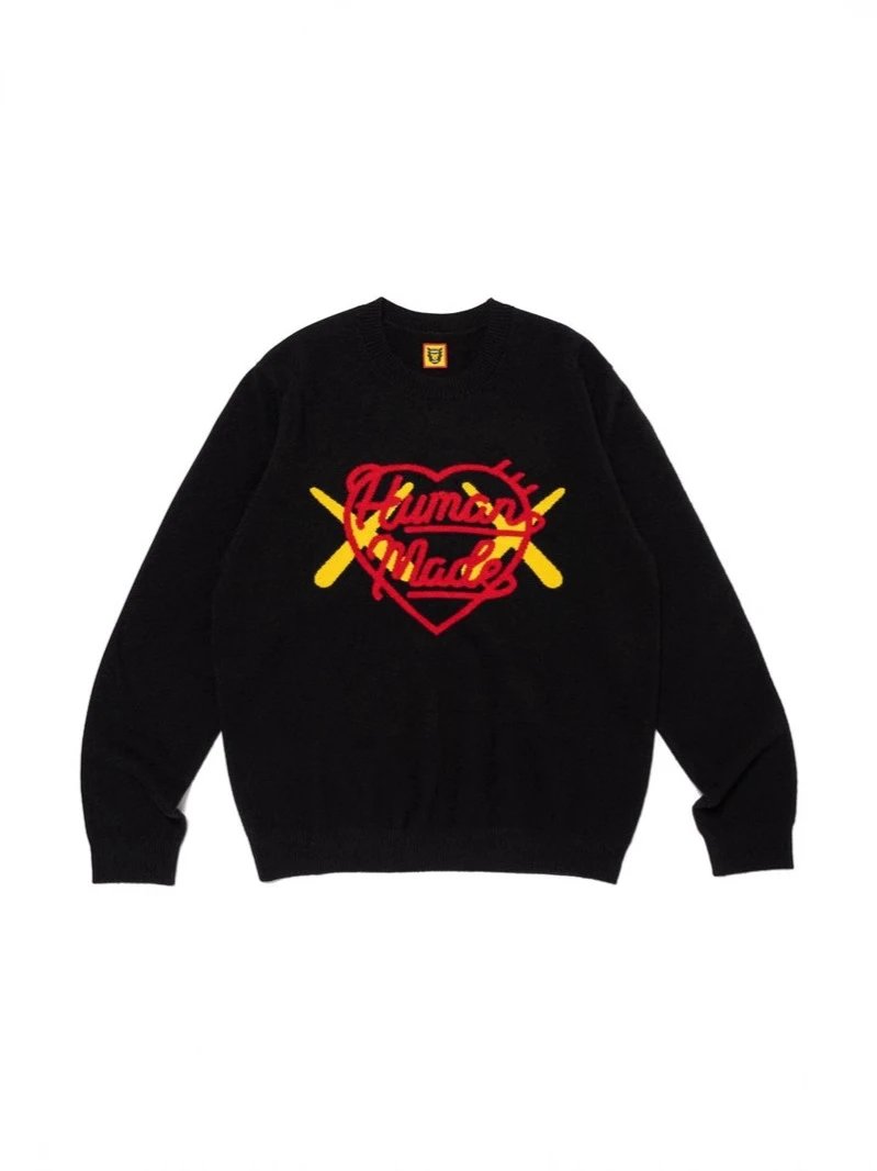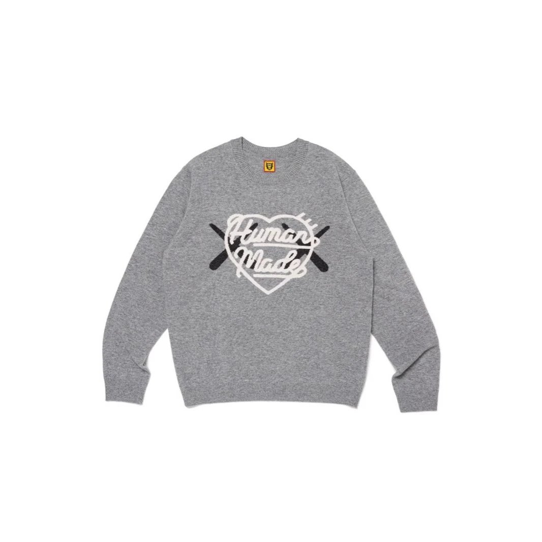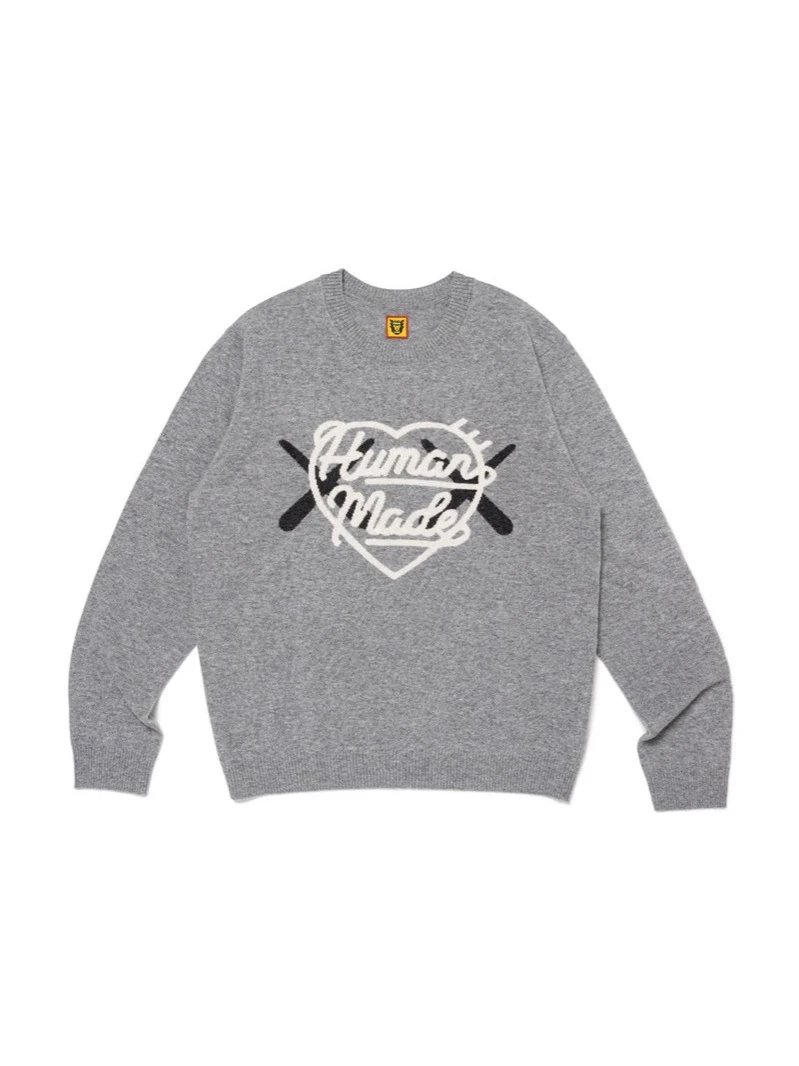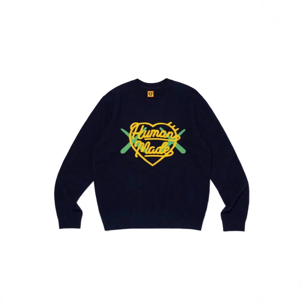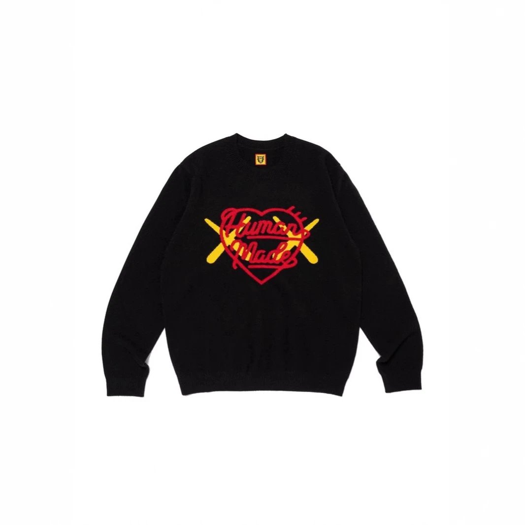 日系原宿风HUMAN 毛衣徽章动物字母毛衣休闲圆领情侣针织衫