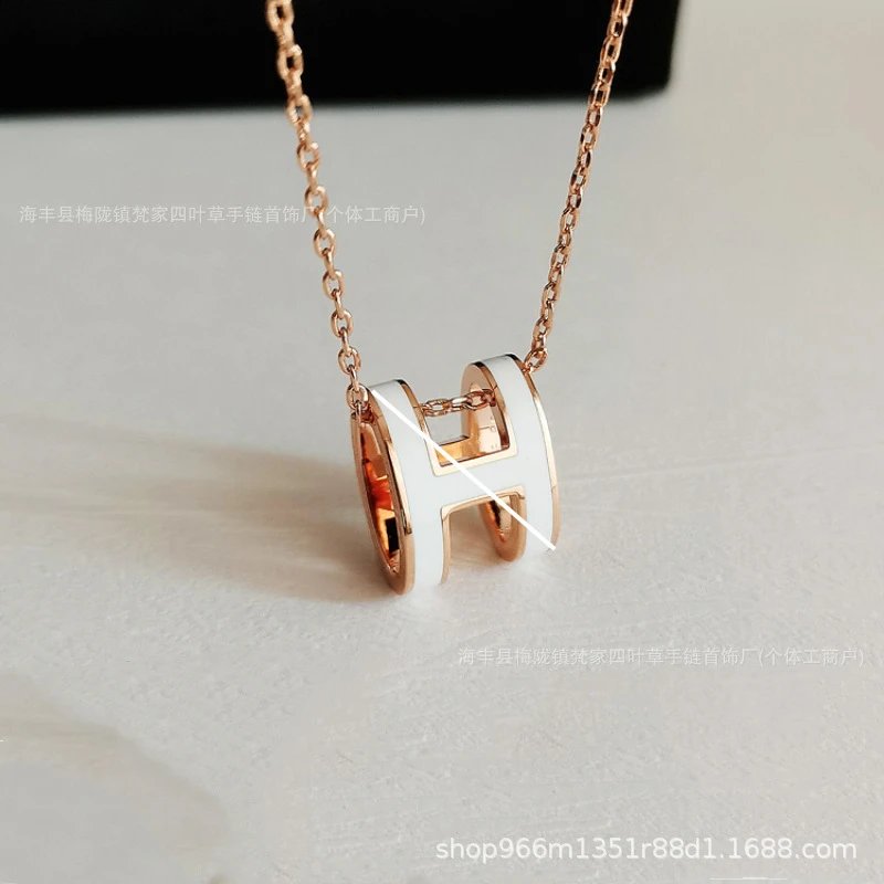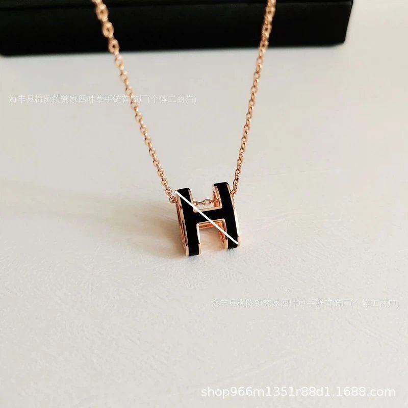 爱家经典款H字母项链女珐琅吊坠ins款情侣锁骨链精致轻奢