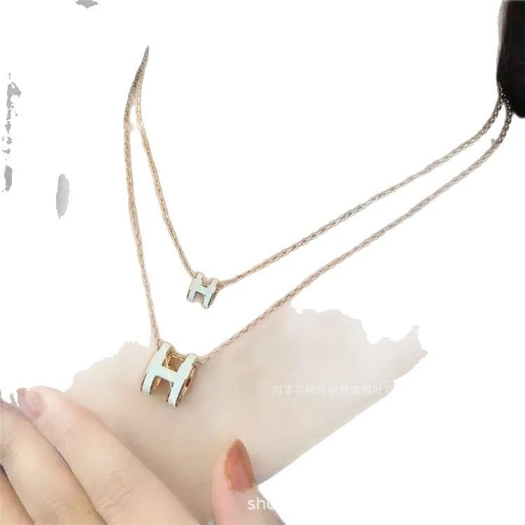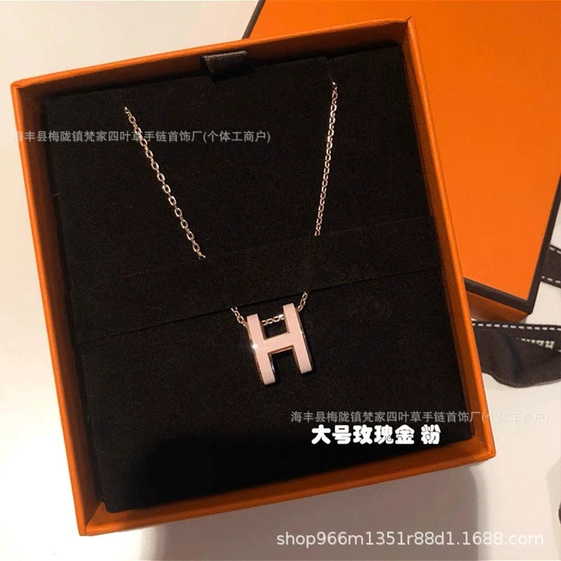 爱家H项链女珐琅字母轻奢锁骨链吊坠mini大号气质高级感ins