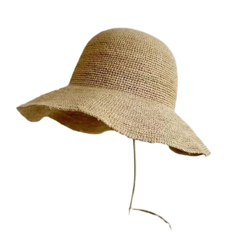 凯旋门手工钩针拉菲草遮阳帽夏季大帽檐遮脸沙滩防晒草帽女