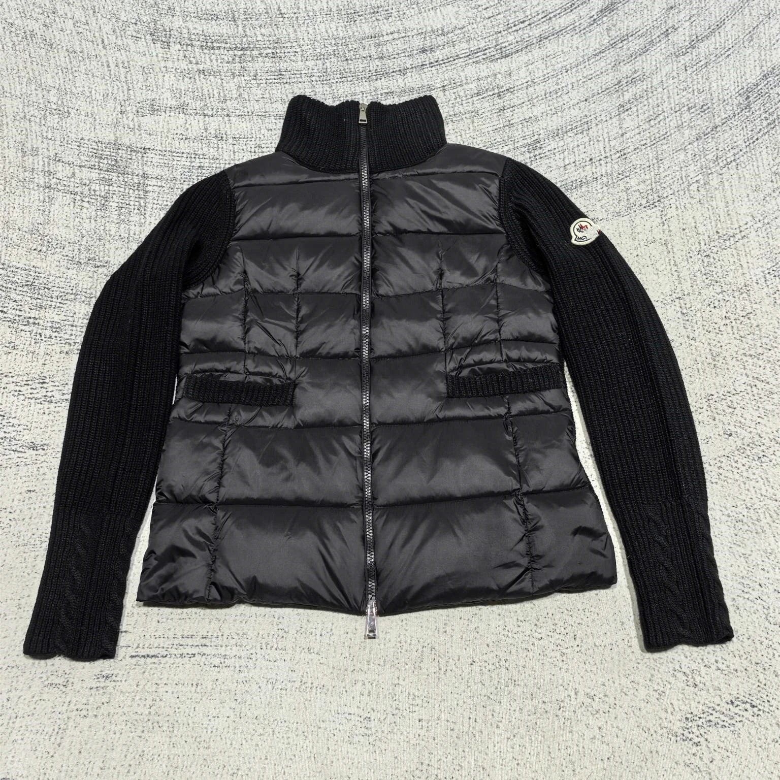 蒙家徽章刺绣LOGO针织袖拼接90白鸭绒轻薄立领羽绒服女装