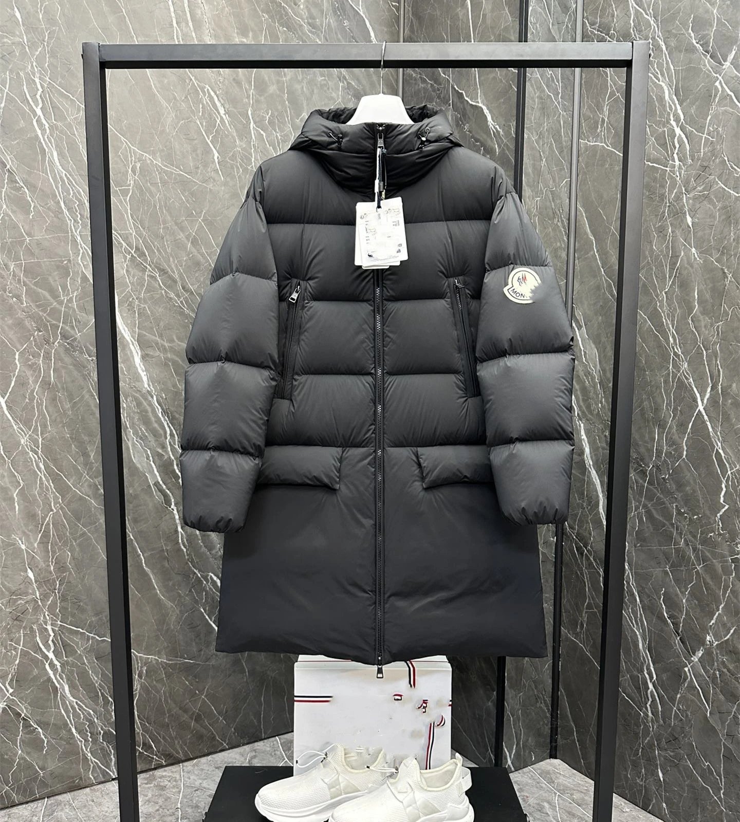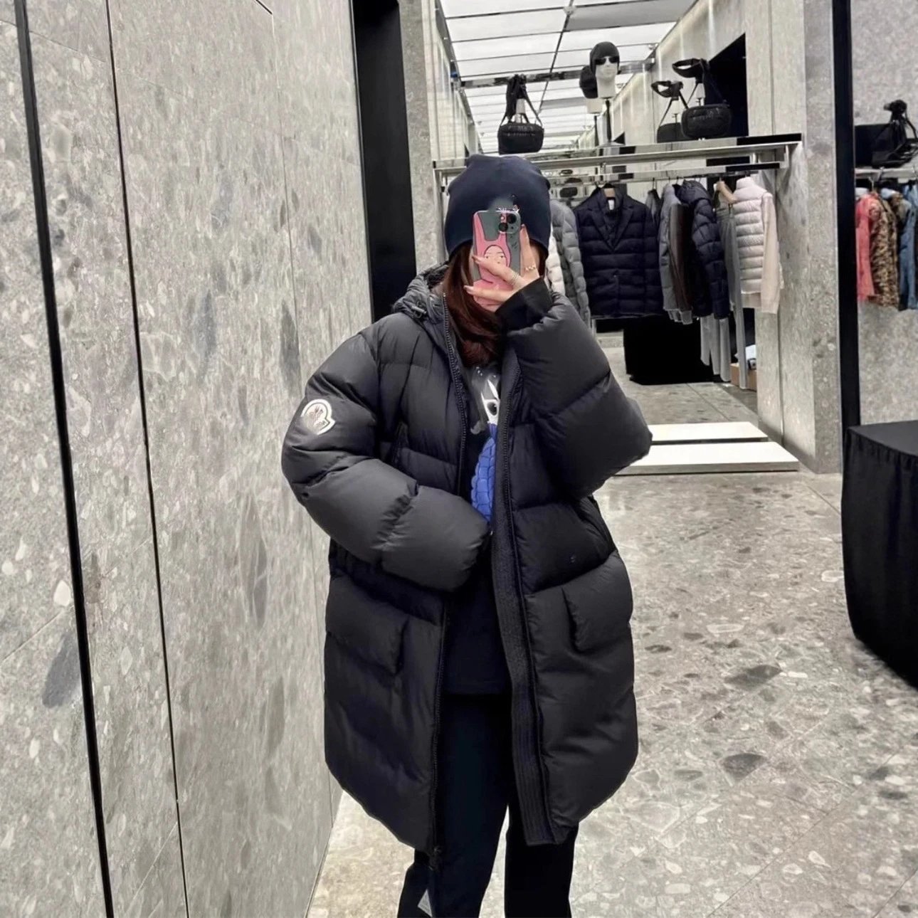 M蒙家网红款中长款大号毛毡徽章90白鹅绒羽绒服外套