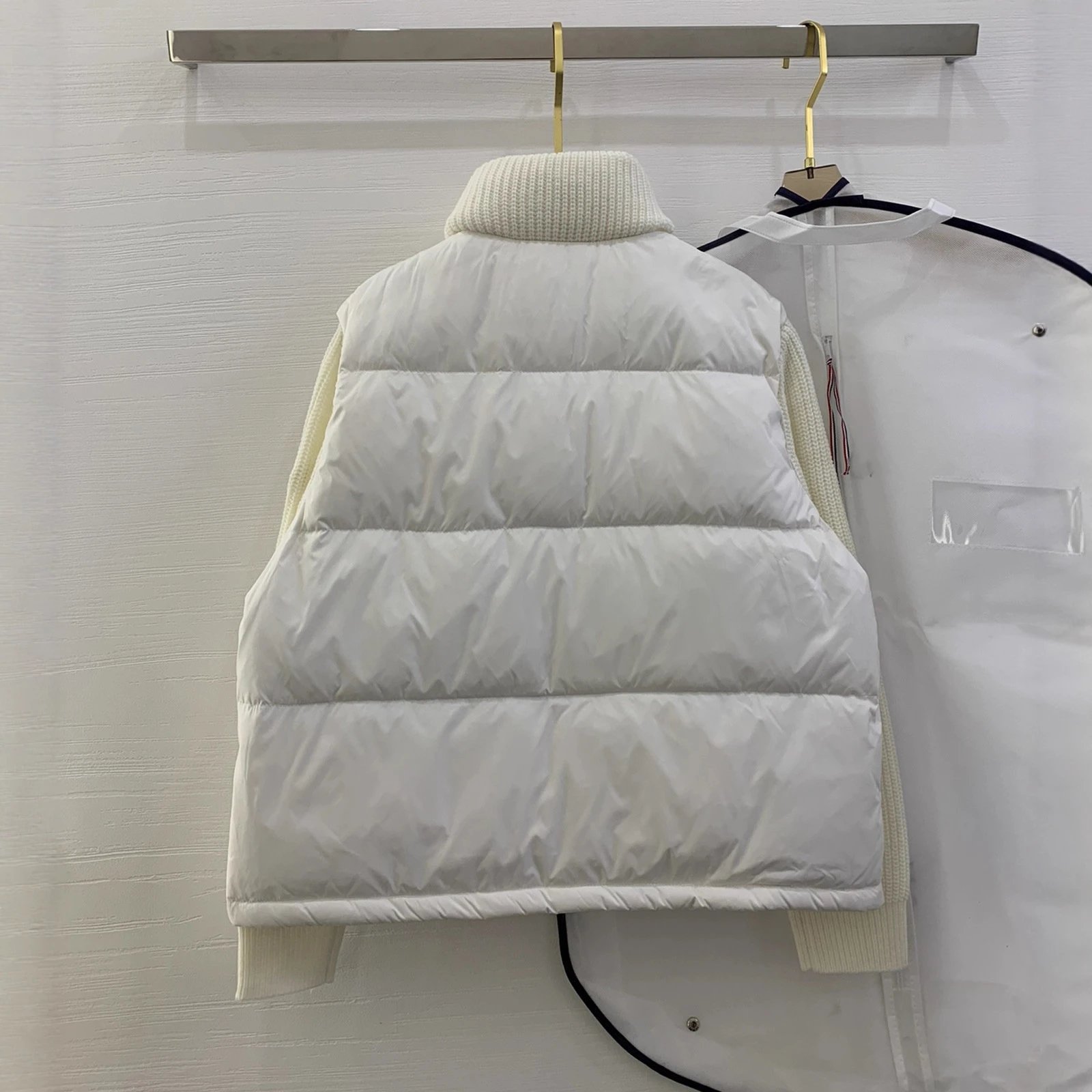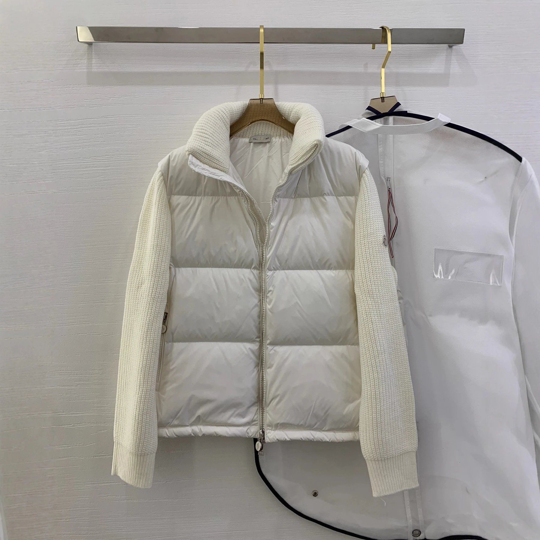 M蒙家女士拼接毛线立领针织衫90白鸭绒羽绒服外套