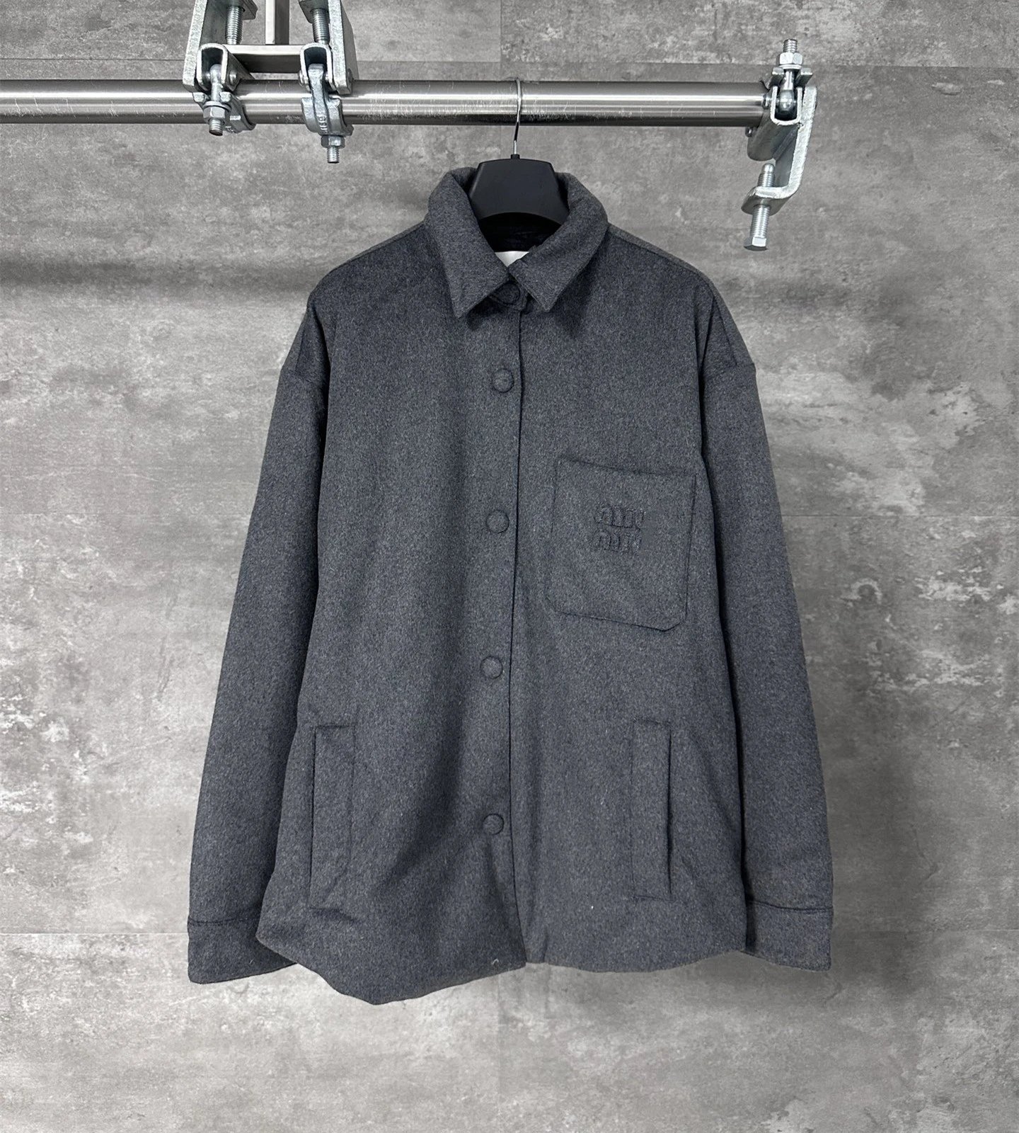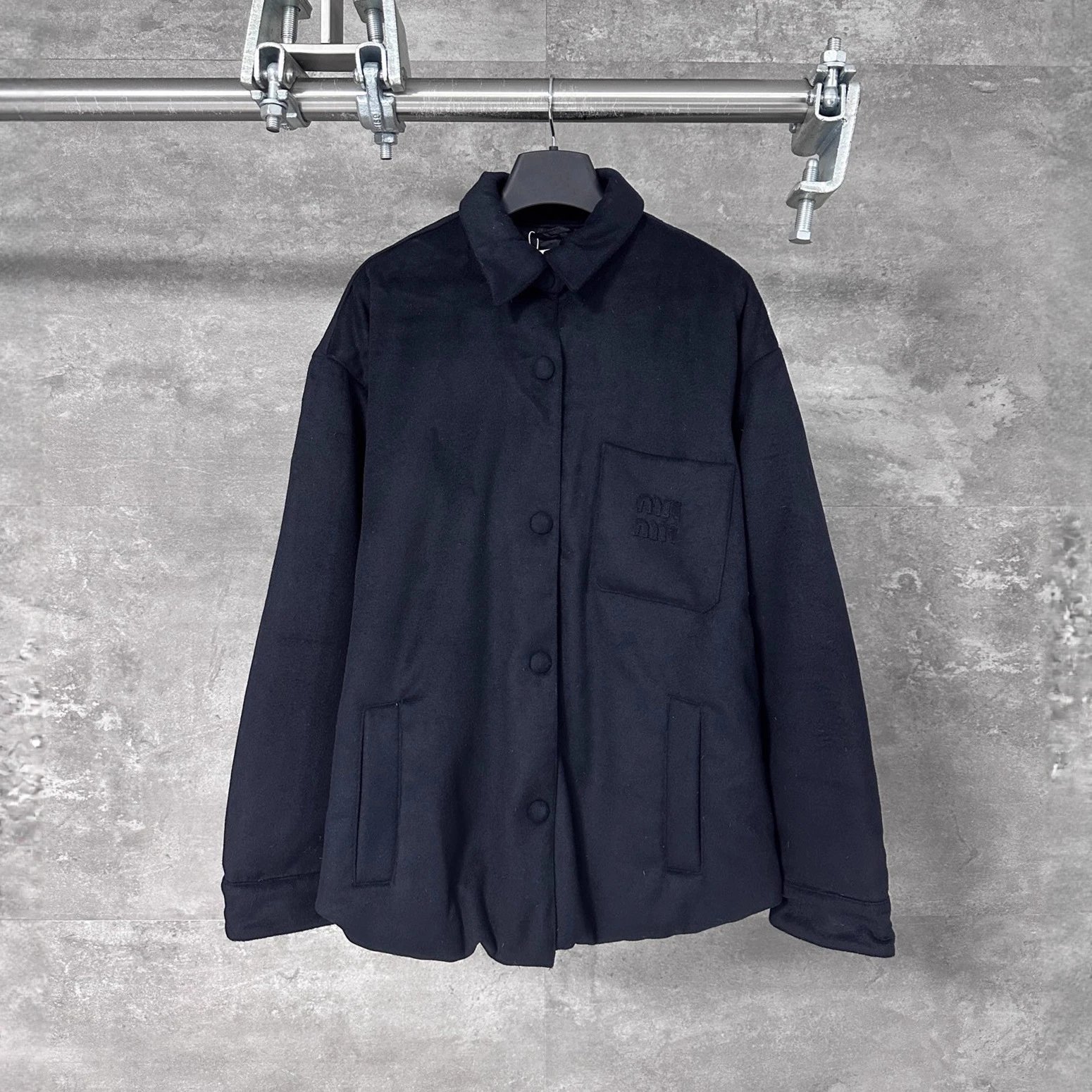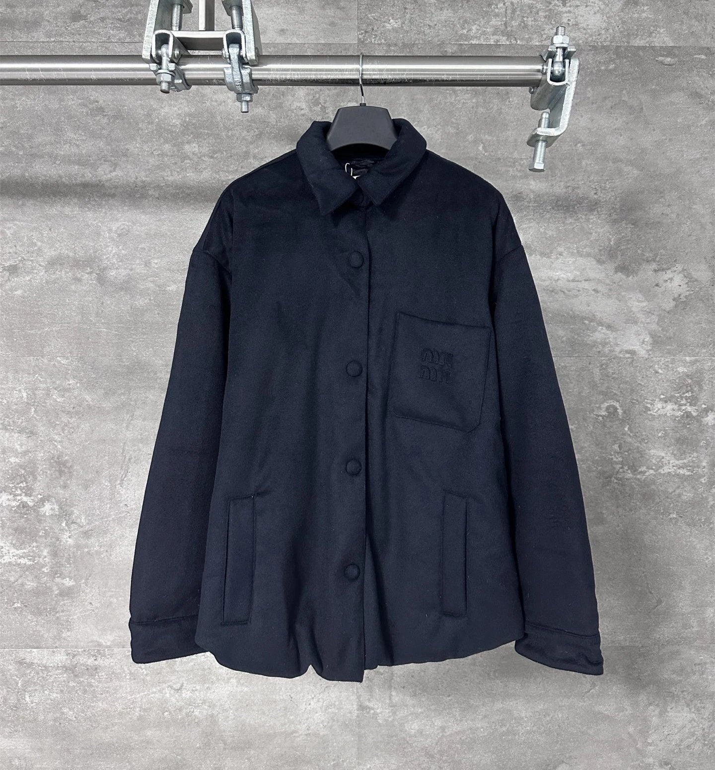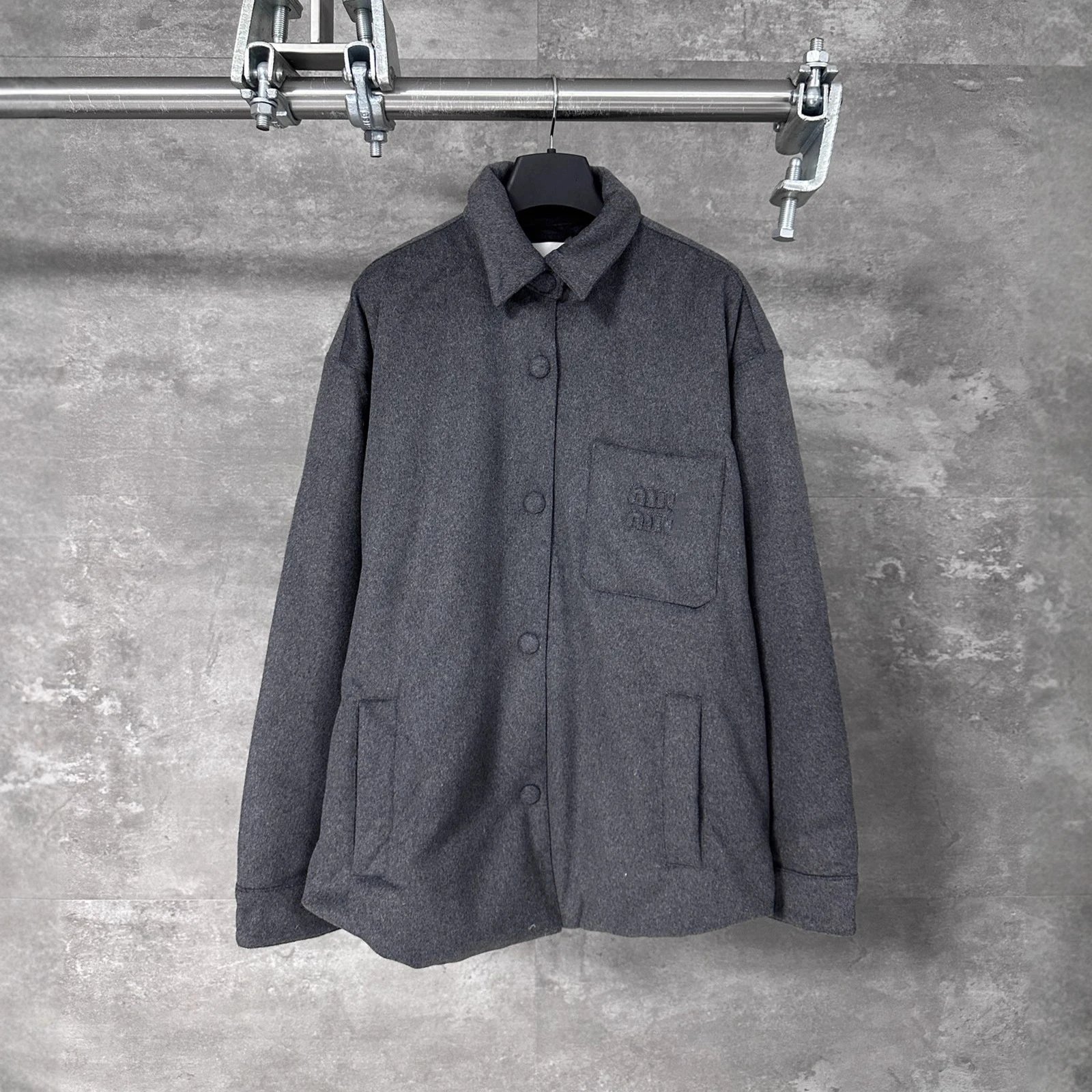 MIU缪家胸前口袋白鸭绒羽绒服纽扣夹克外套男女