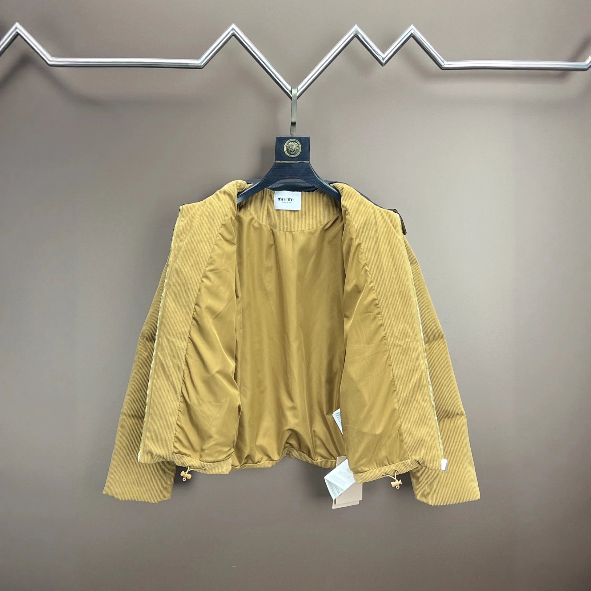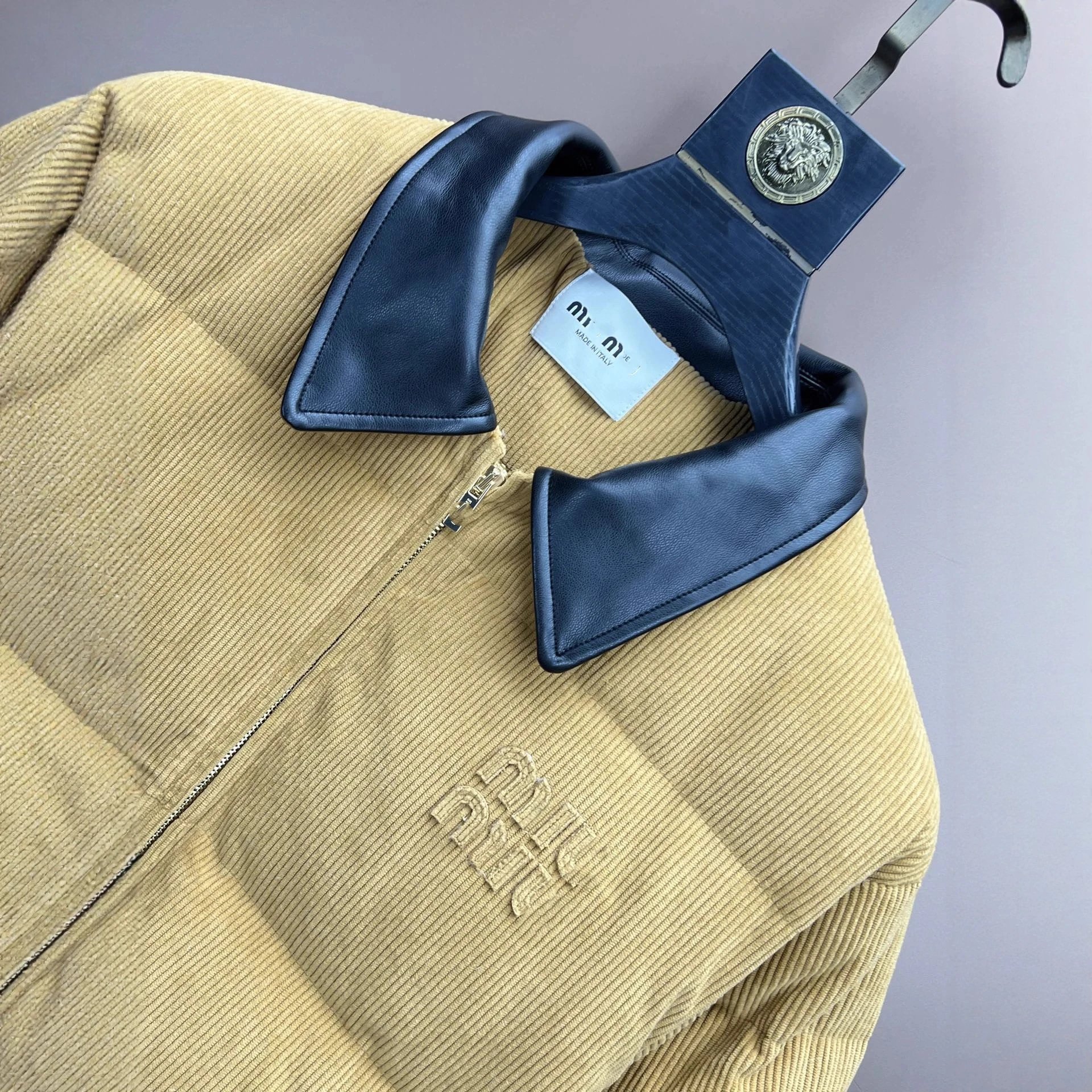 版本MIU缪家经典字母贴标灯芯绒90白鹅绒皮领面包羽绒服