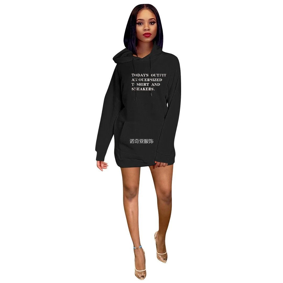 N1532女装流行字母卫衣 连衣裙 连帽卫衣加绒