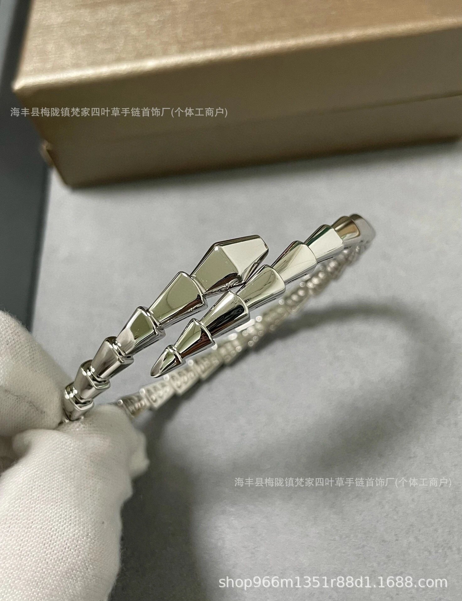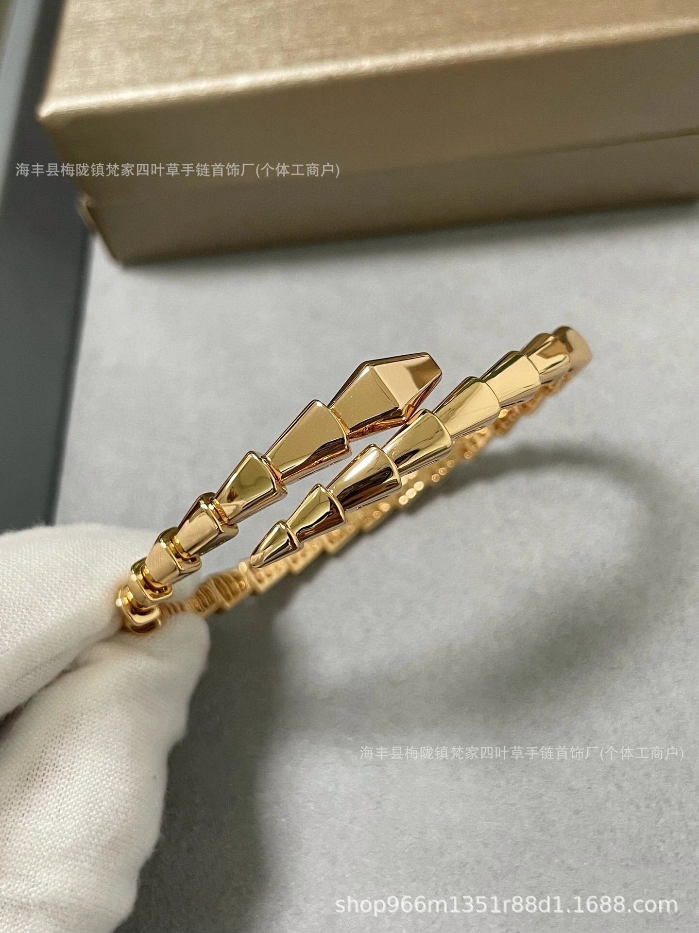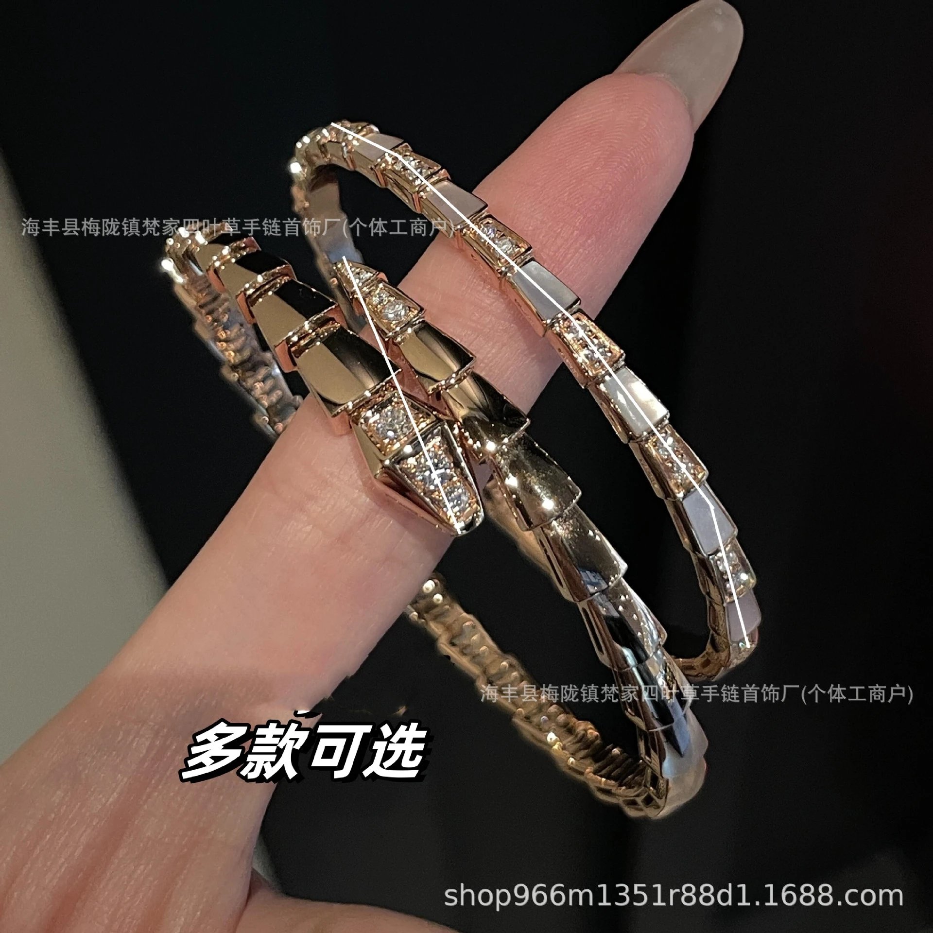 宝家玫瑰金新款满钻白贝母蛇形手镯头尾钻光面蛇形手环闺蜜时尚