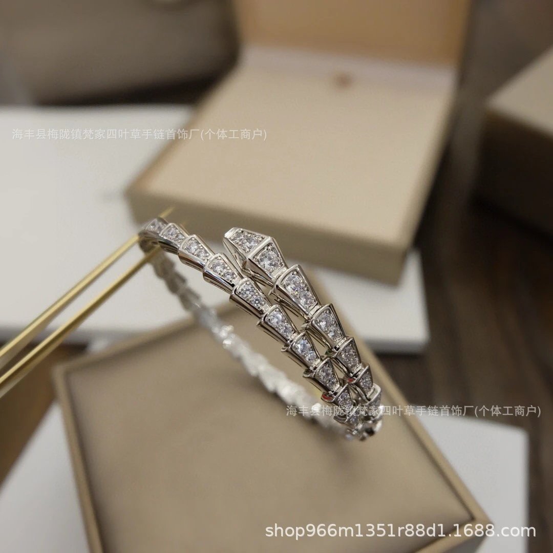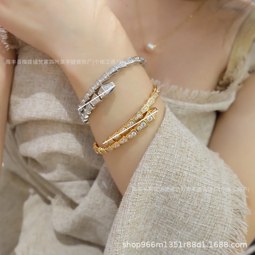 宝家新款玫瑰金蛇形手镯女奢华大气手链高品质蛇头手环超闪蛇骨潮