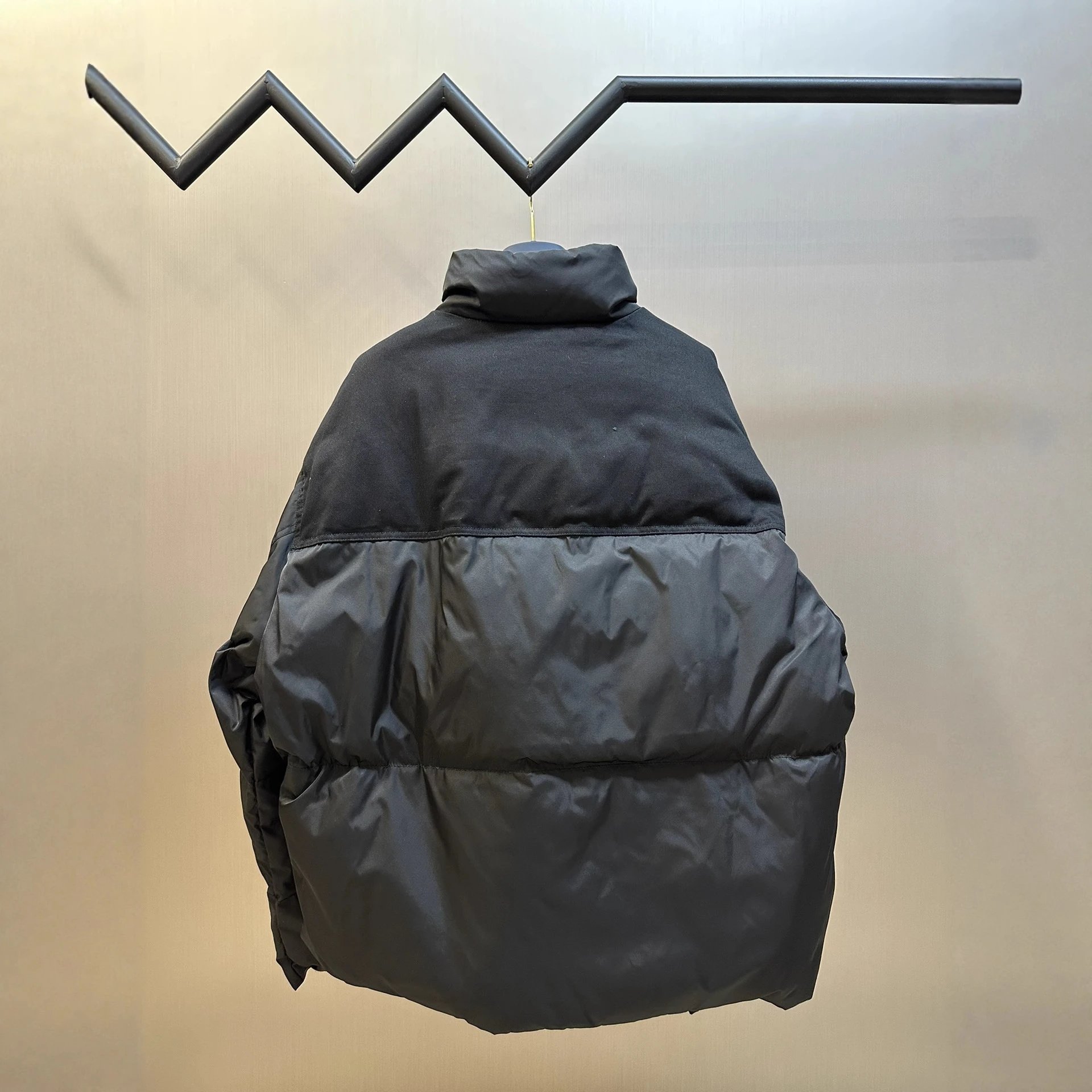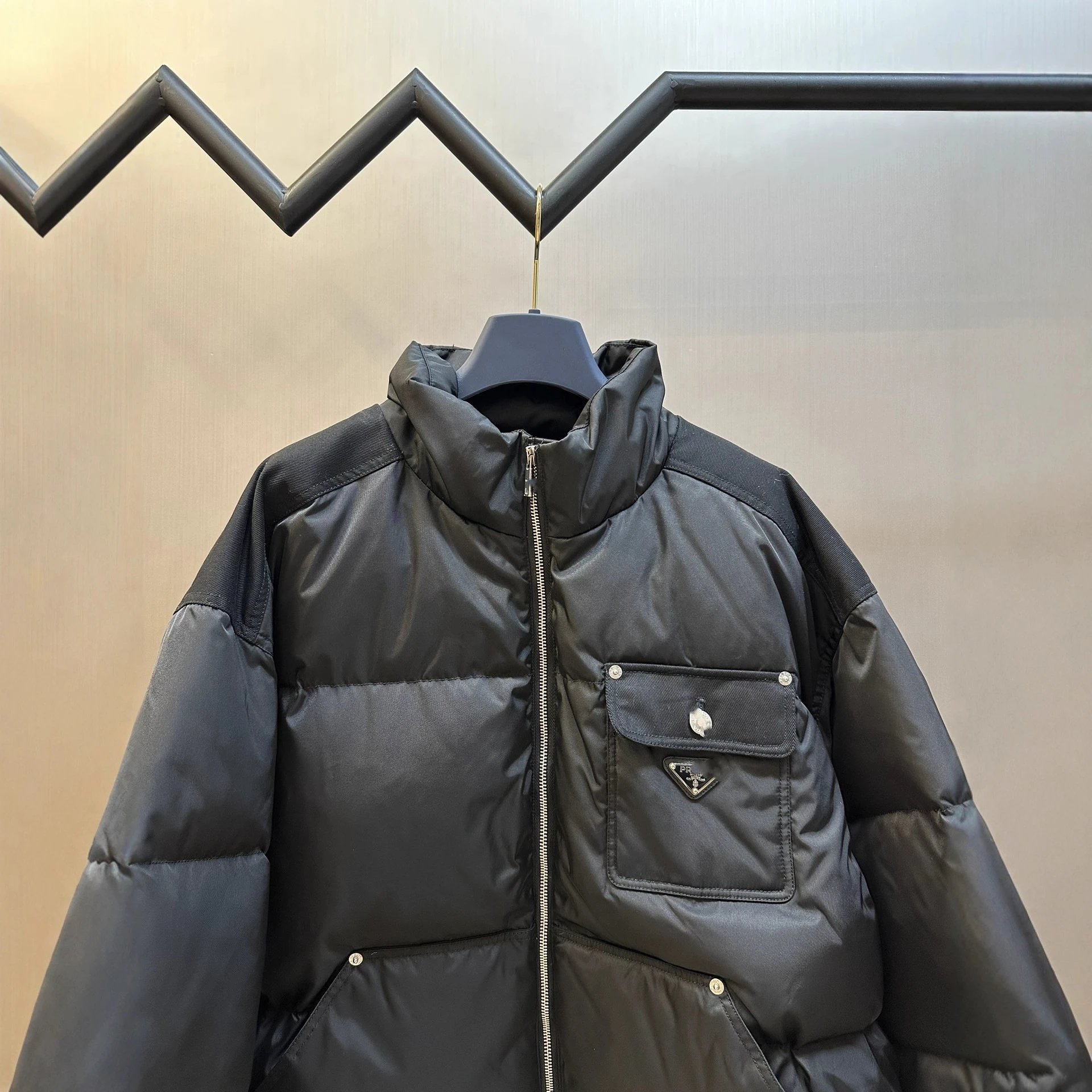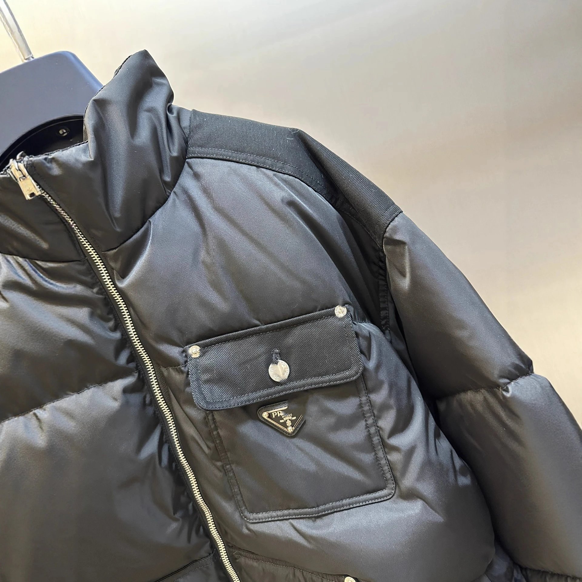 P家再生尼龙拼接斜纹梭织面90白鸭绒羽绒服夹克外套