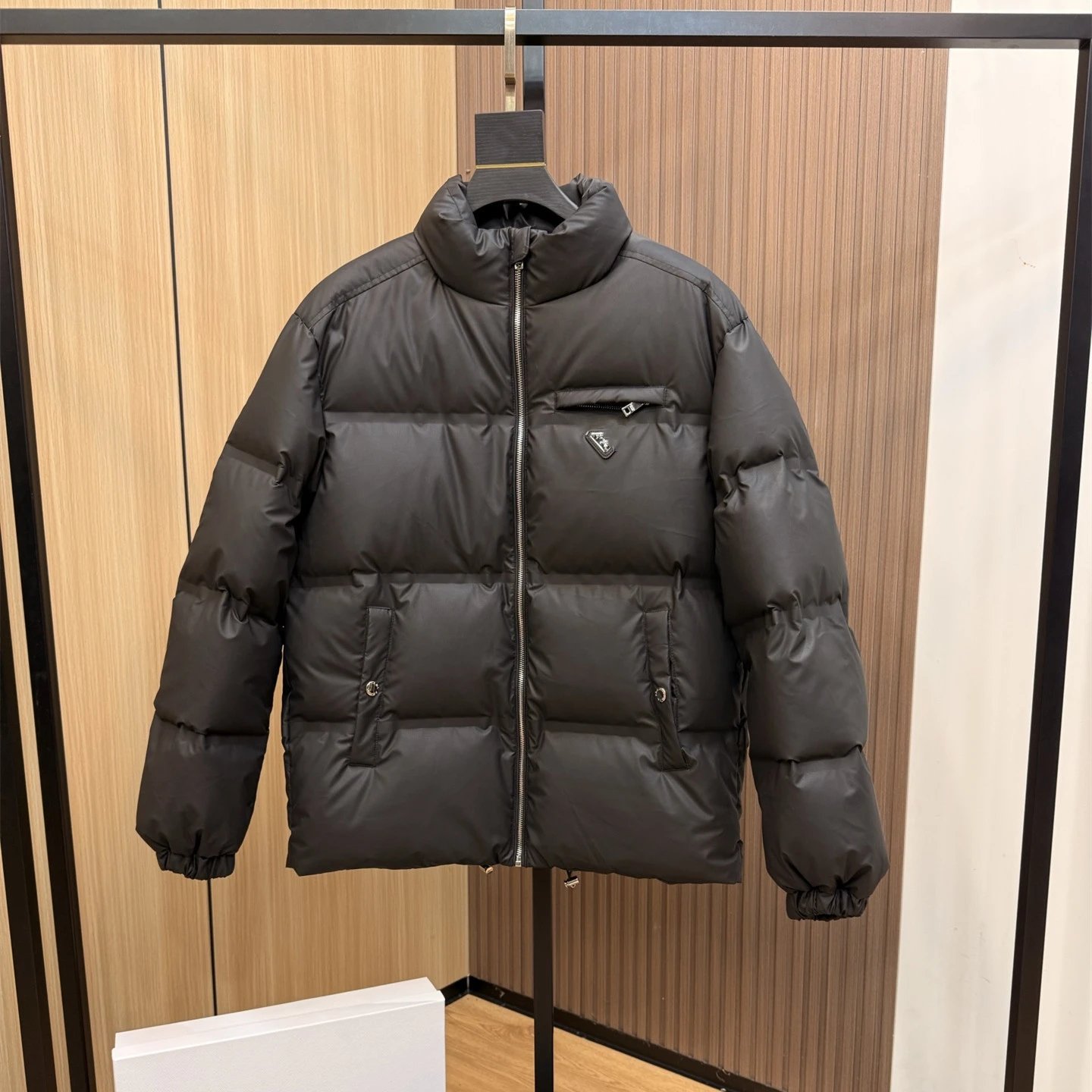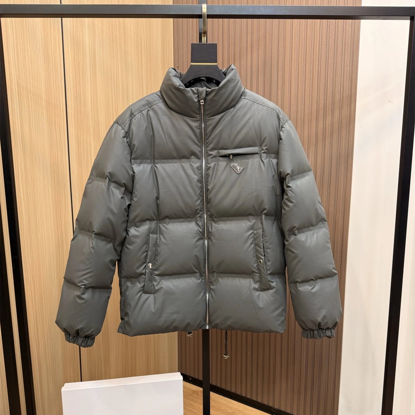 P家经典三角铁标拉链口袋90白鸭绒蓬松羽绒服外套
