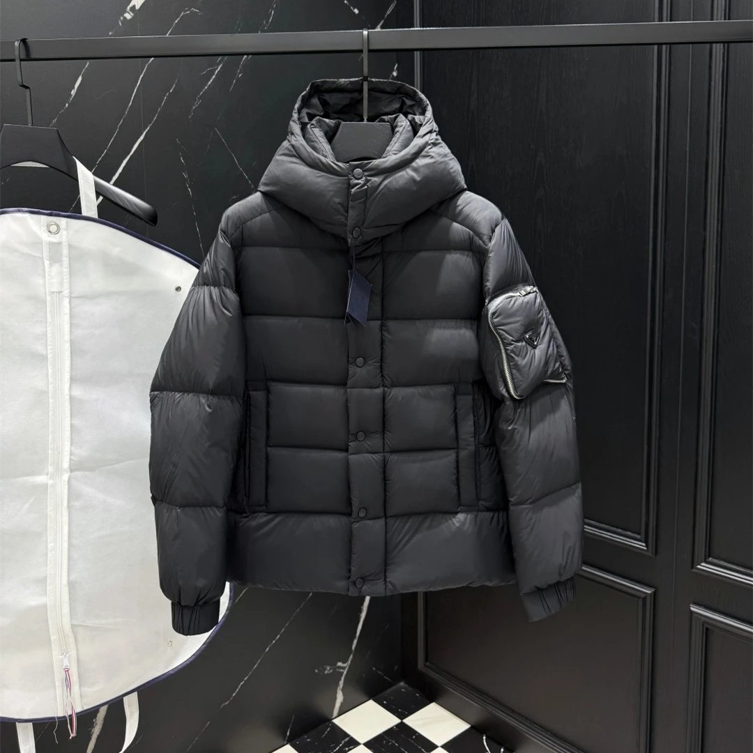 P家黑武士三角铁标纯色90白鸭绒羽绒服夹克外套男女