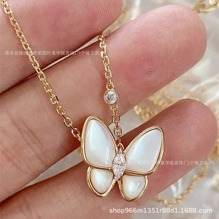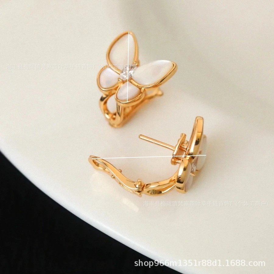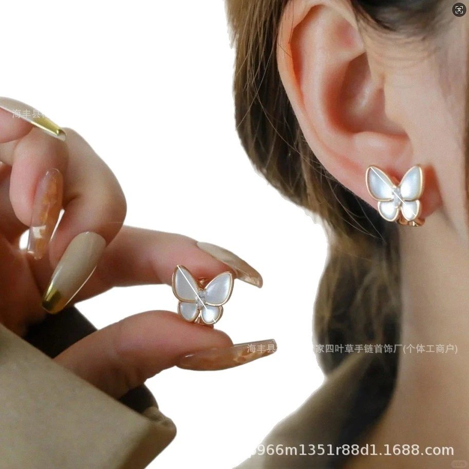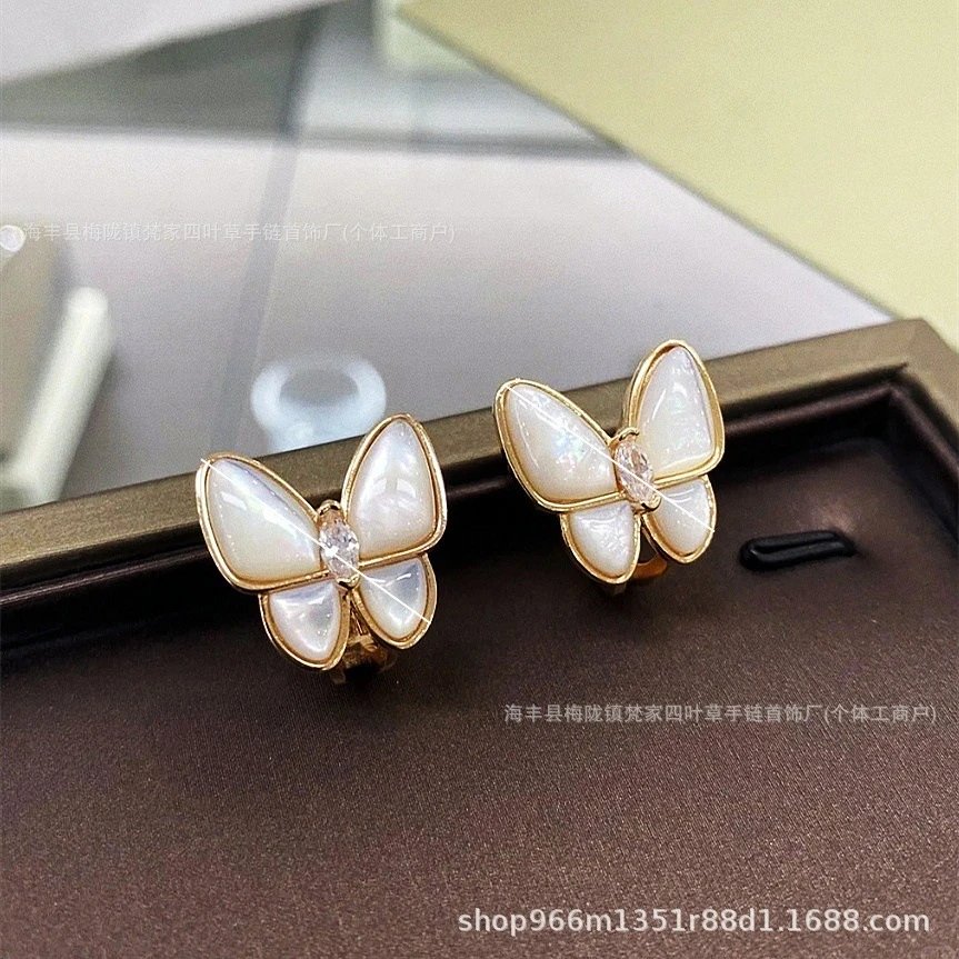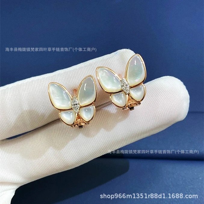 梵家白贝母蝴蝶耳拍女玫瑰金镶钻耳拍气质高级感时尚风百搭礼物潮