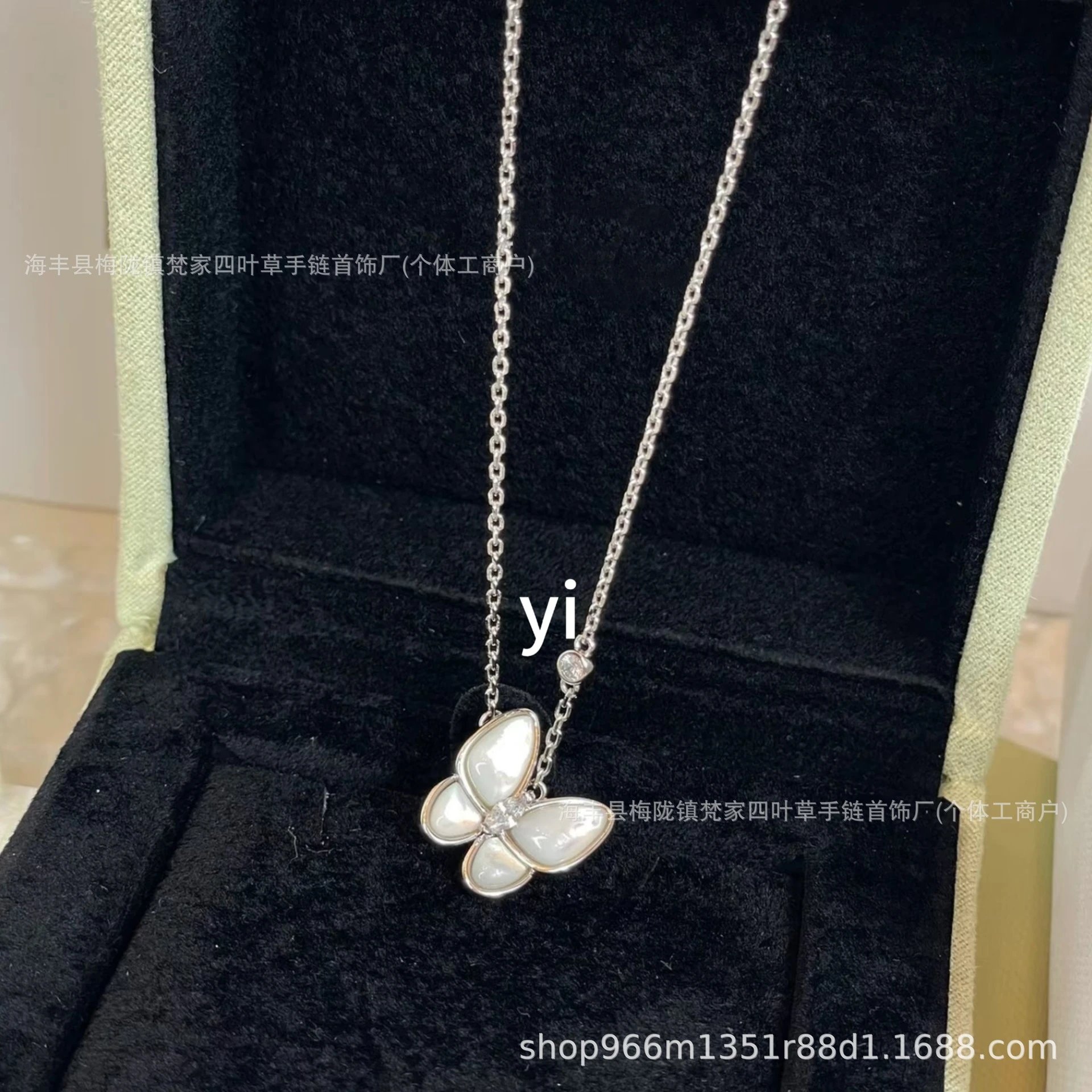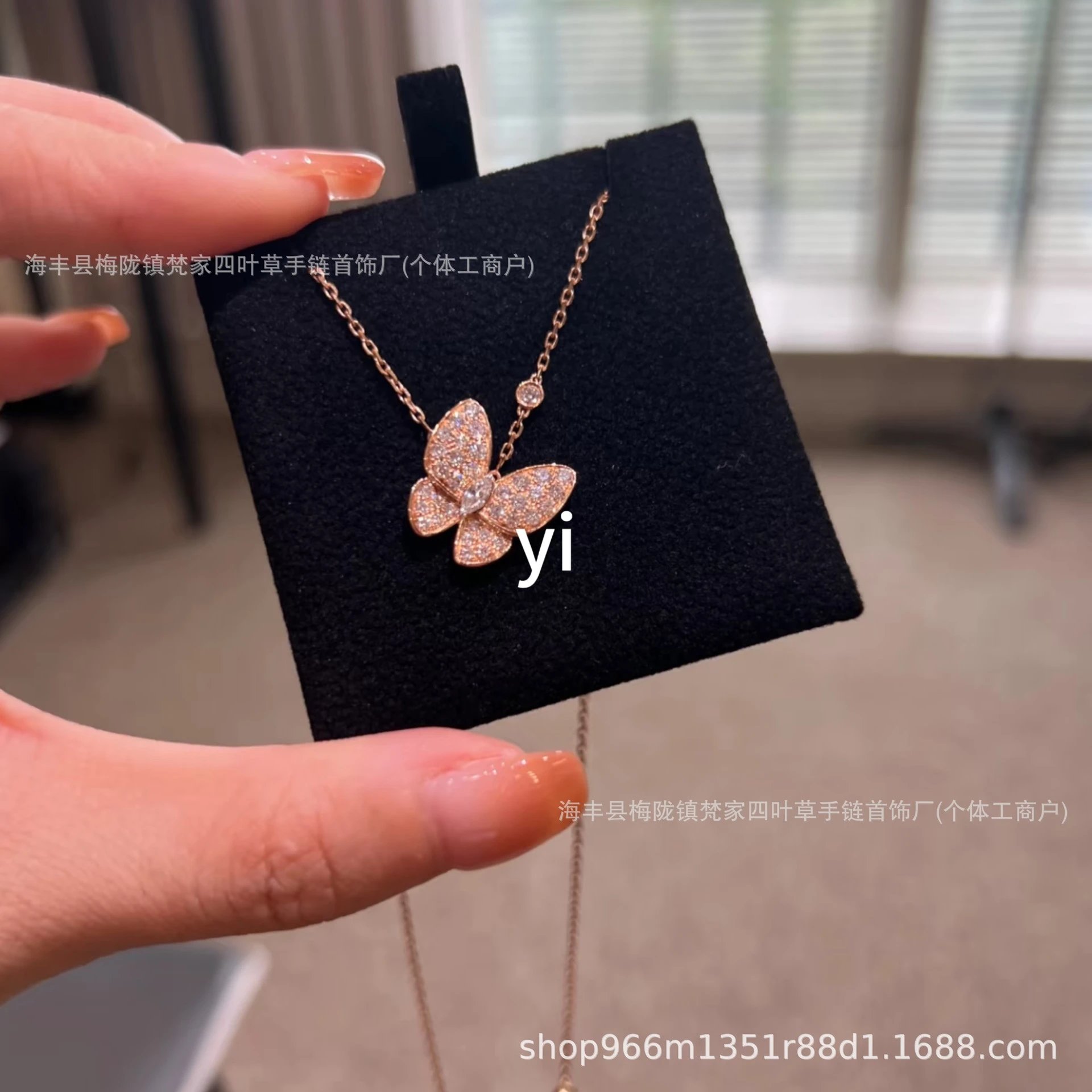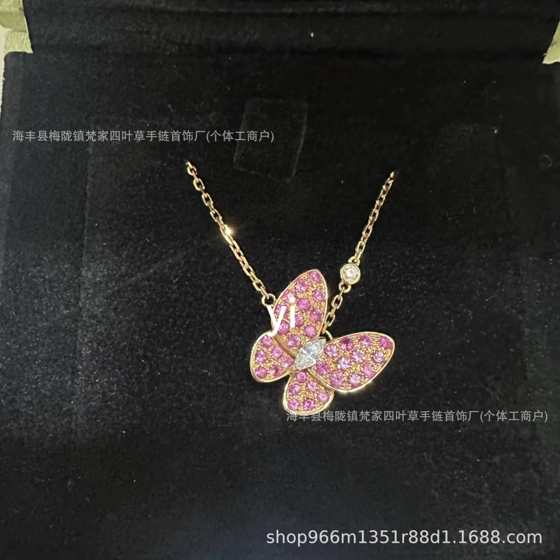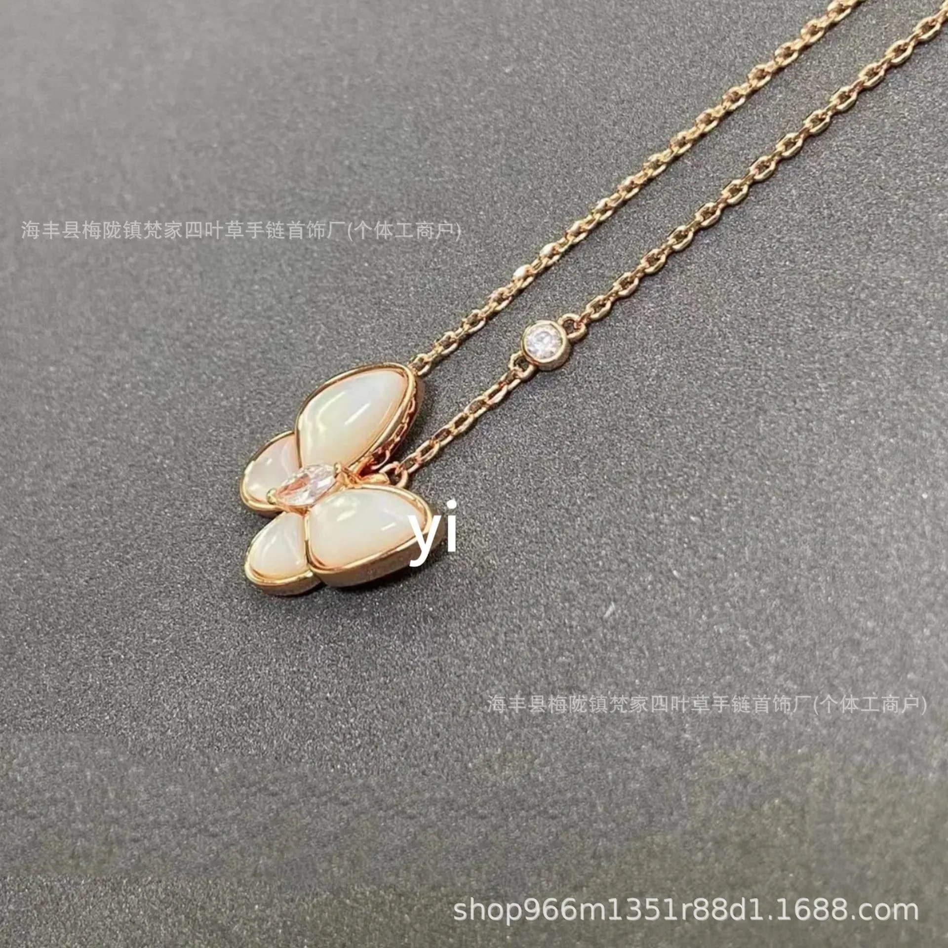梵家镀玫瑰金黄金蝴蝶贝母项链马眼白金满钻绿松石蓝色新款