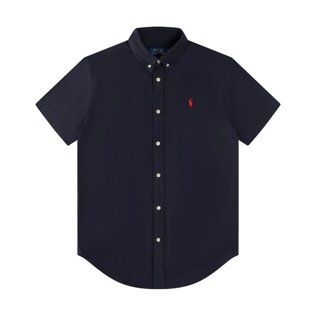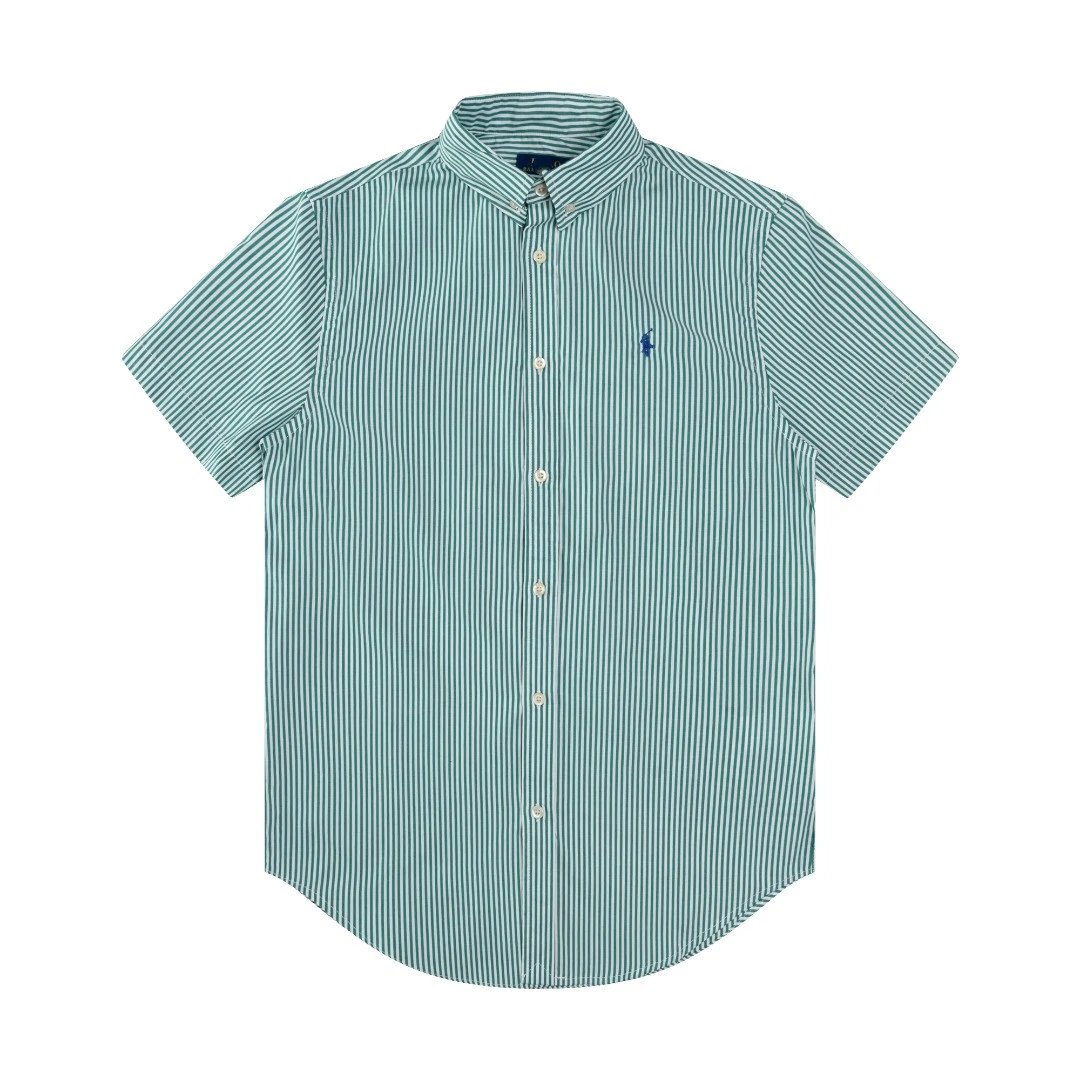 RL拉夫小马府绸短袖小马刺绣排扣翻领经典休闲短袖衬衫男女