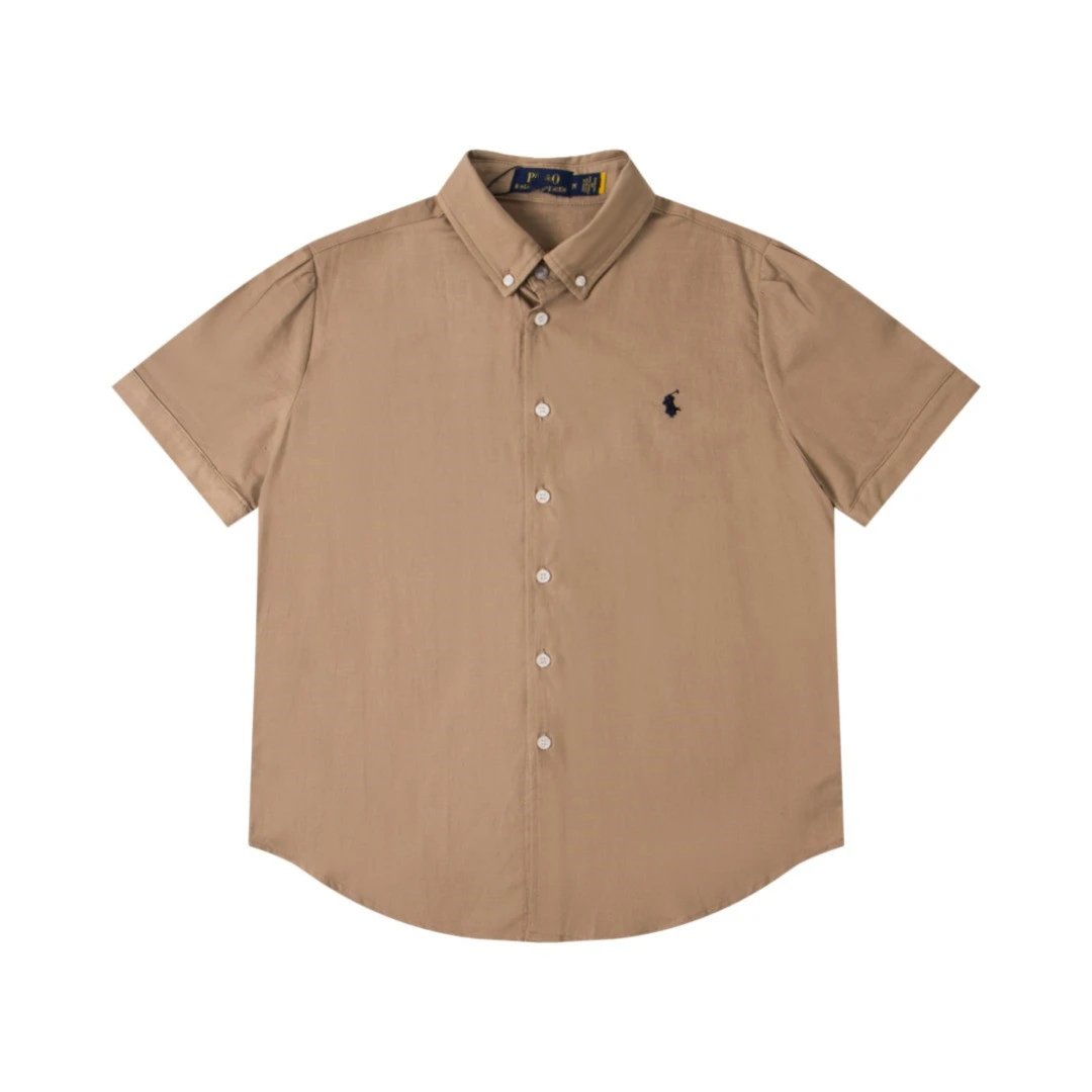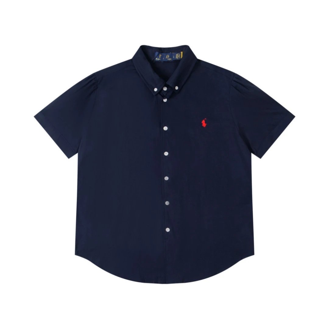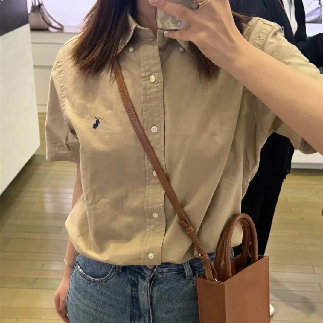 RL拉夫小马刺绣明星同款老钱风休闲短袖亚麻衬衫男女