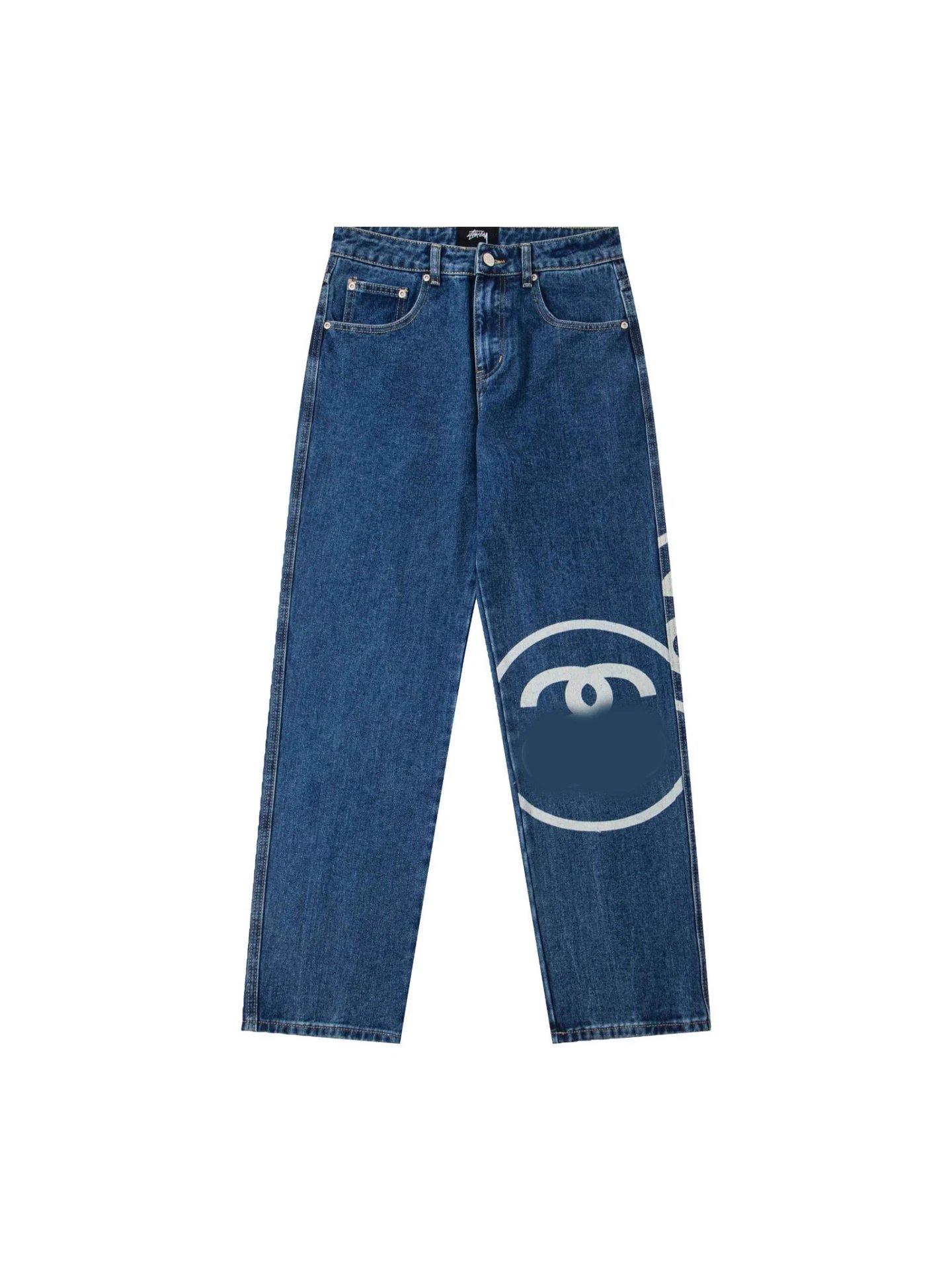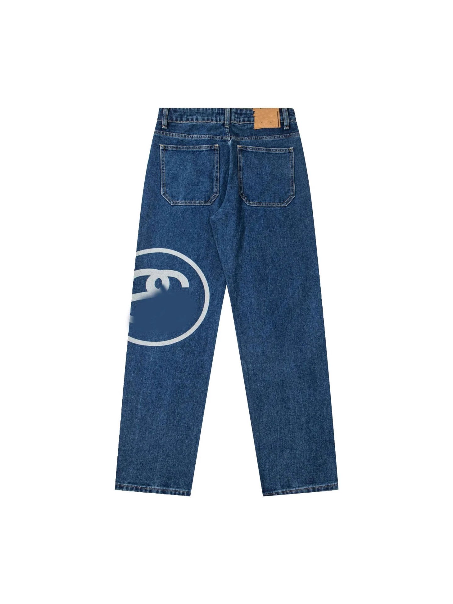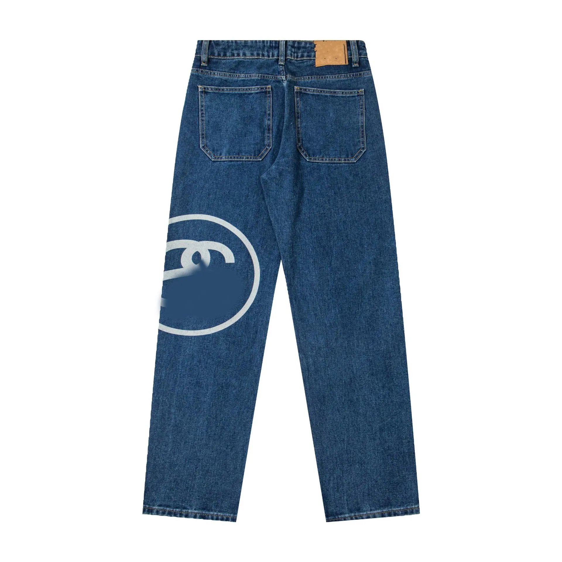 SS25春秋字母双面印花美式复古简约牛仔长裤直筒长裤男女款