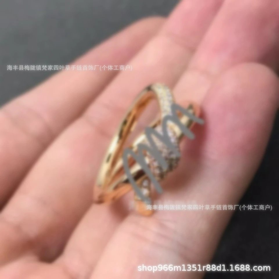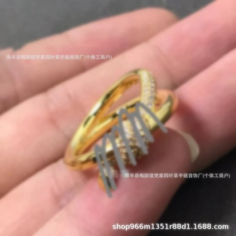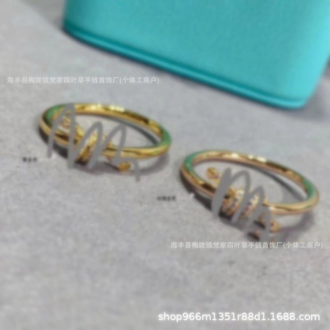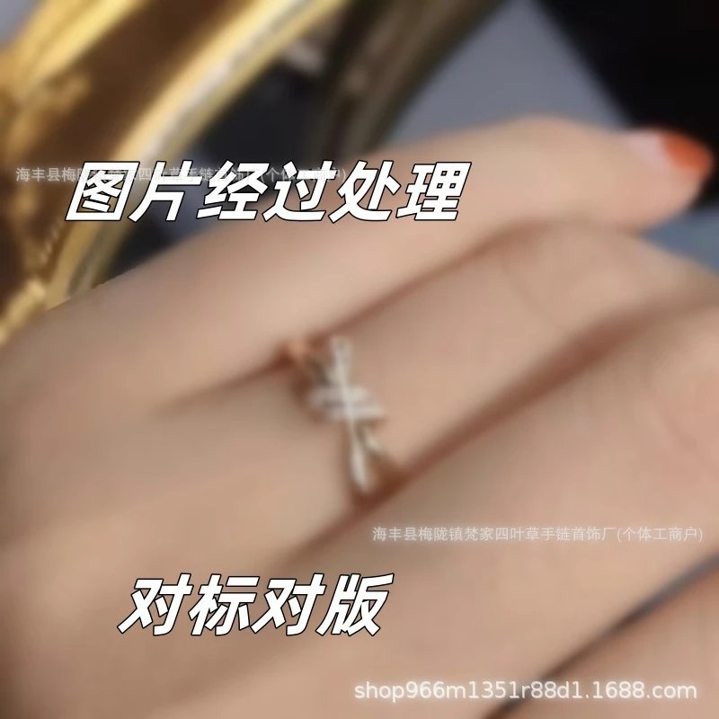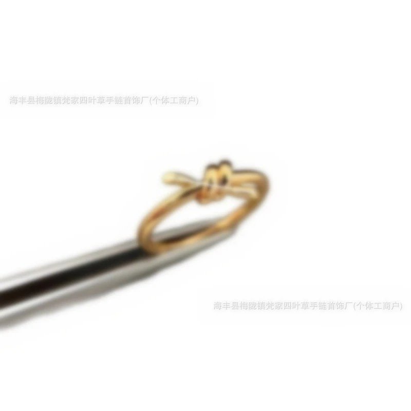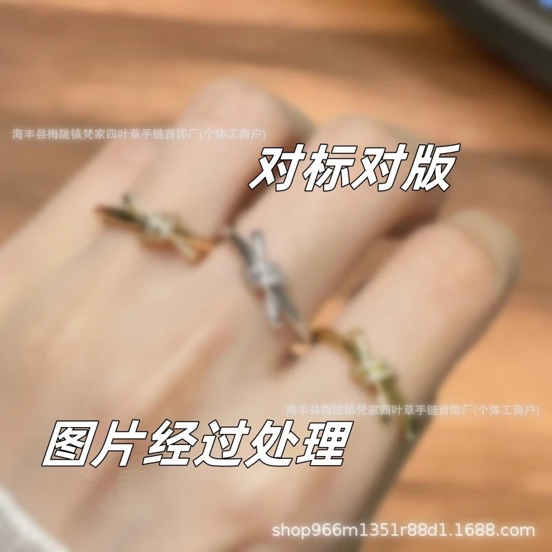 T家莆田高-版本knot绳结戒指镀18K金玫瑰金扭绳蝴蝶结叠戴指环ins