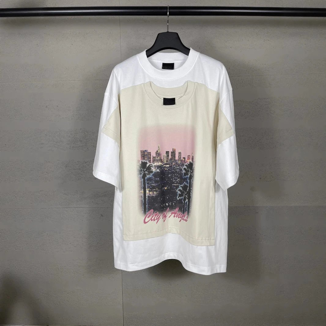 巴黎正面以洛杉矶夜景直喷印花男女款潮牌小领口短袖T恤男女款t