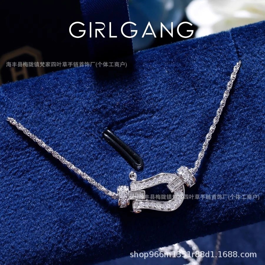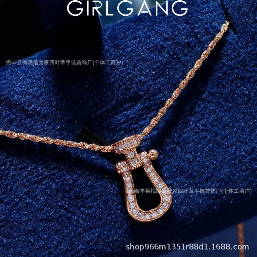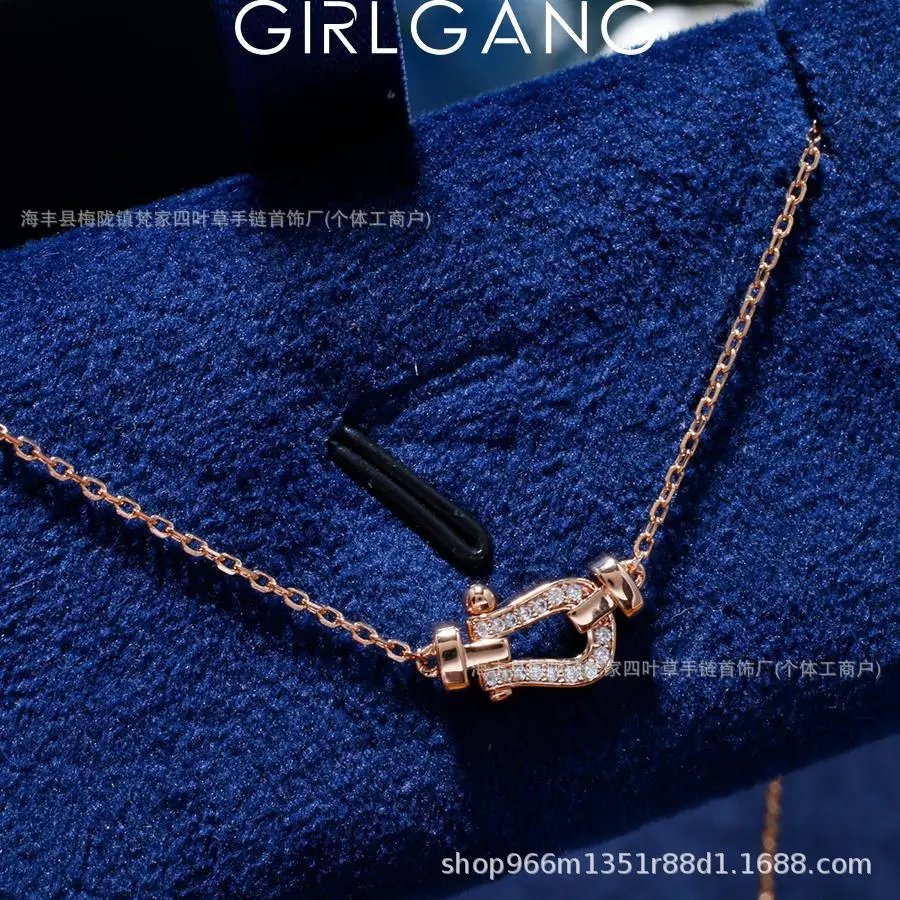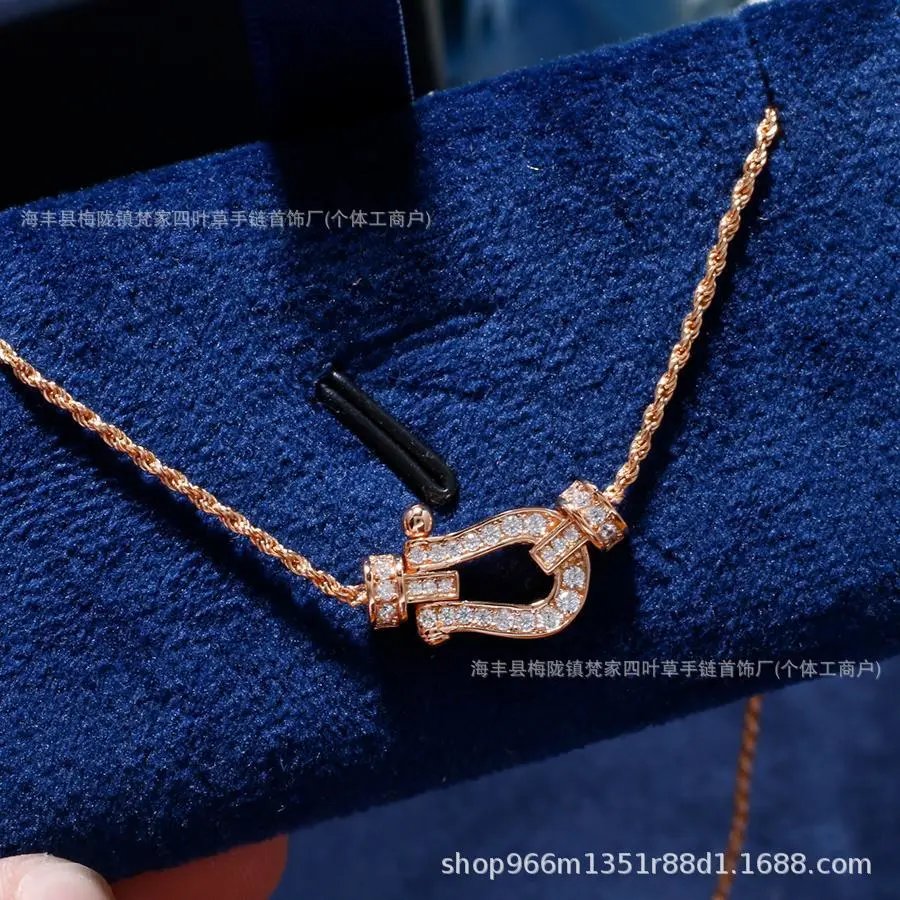 费家高版马蹄扣项链女钻石U型系列粗版镀18K金锁骨链网红款送女友