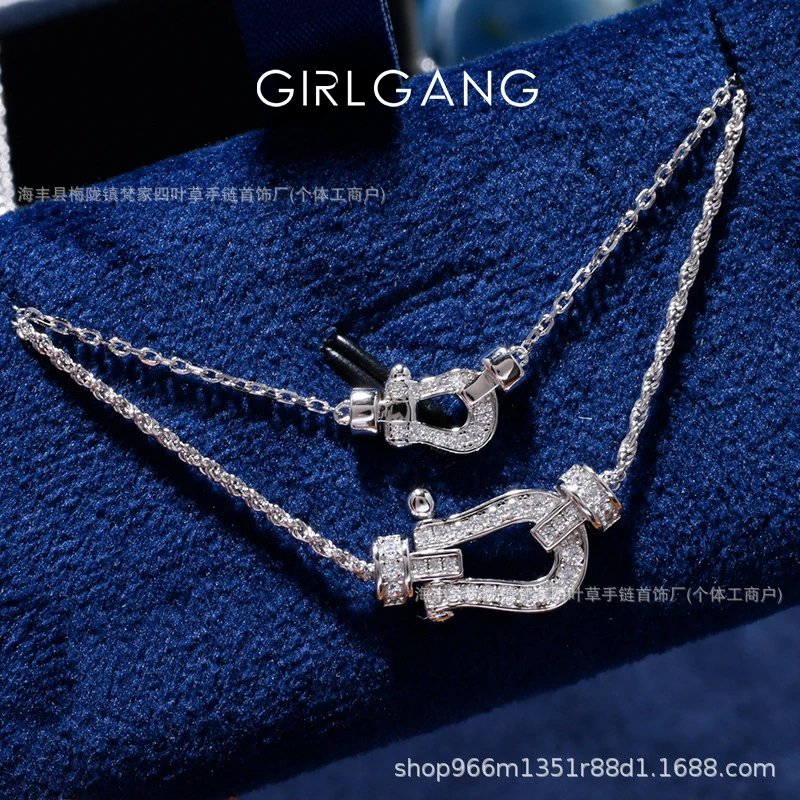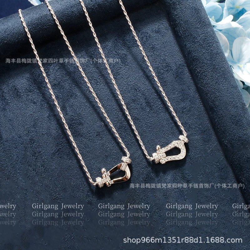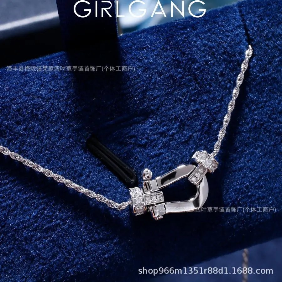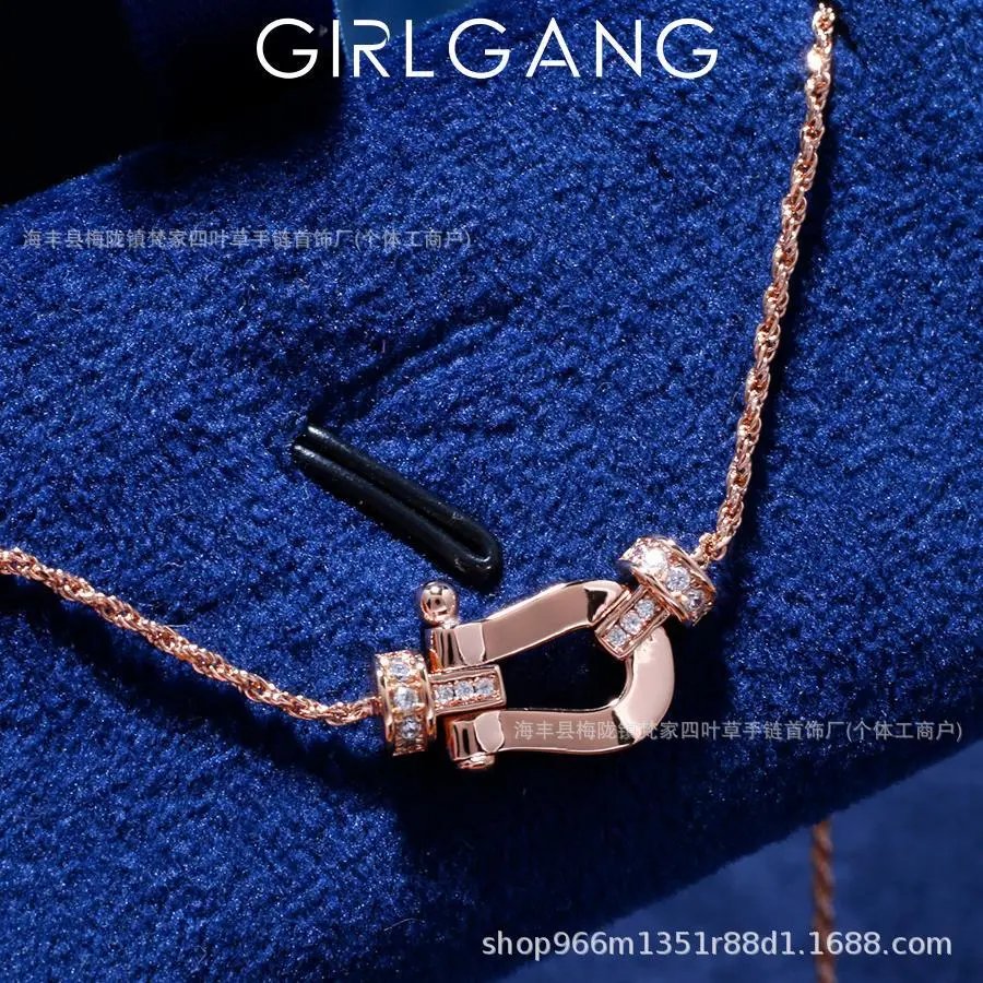 费家高版马蹄扣项链女钻石U型系列粗版镀18K金锁骨链网红款送女友