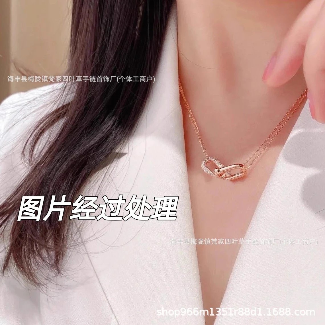 Titanium steel necklace high color value double pendant high fashion accessories antioxidant -0642