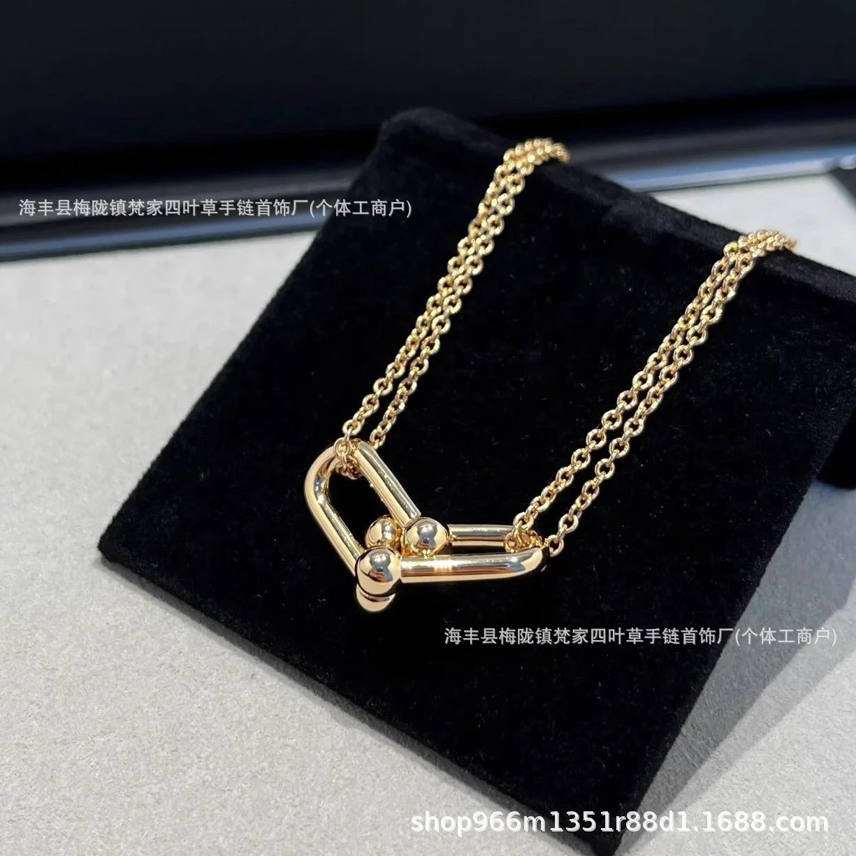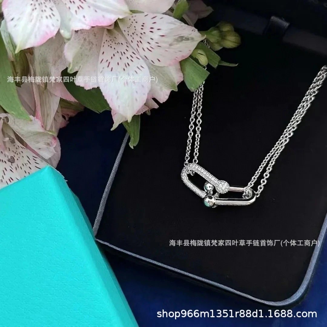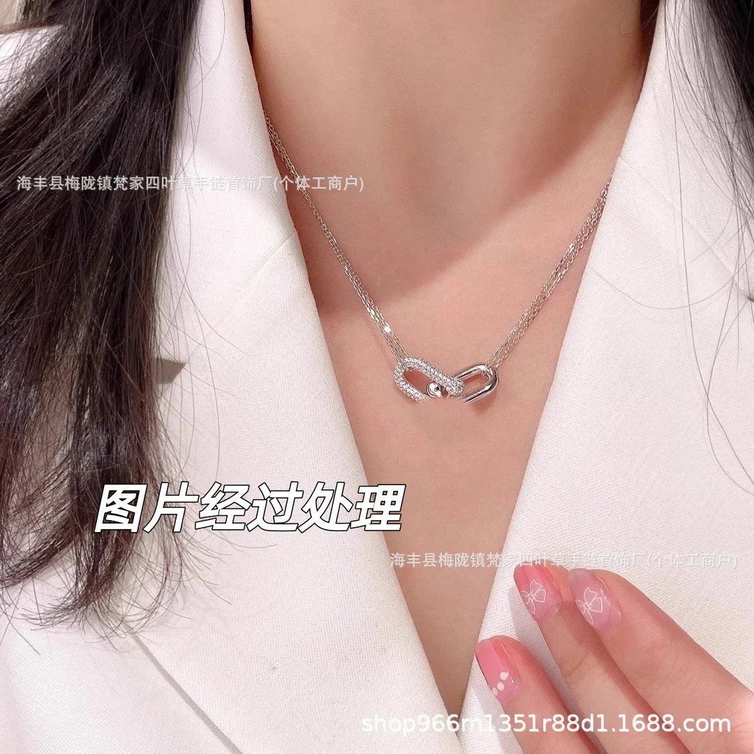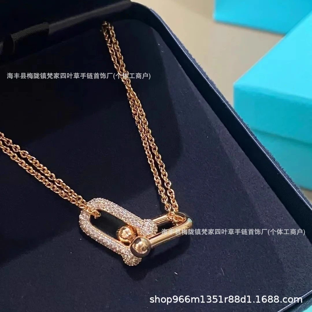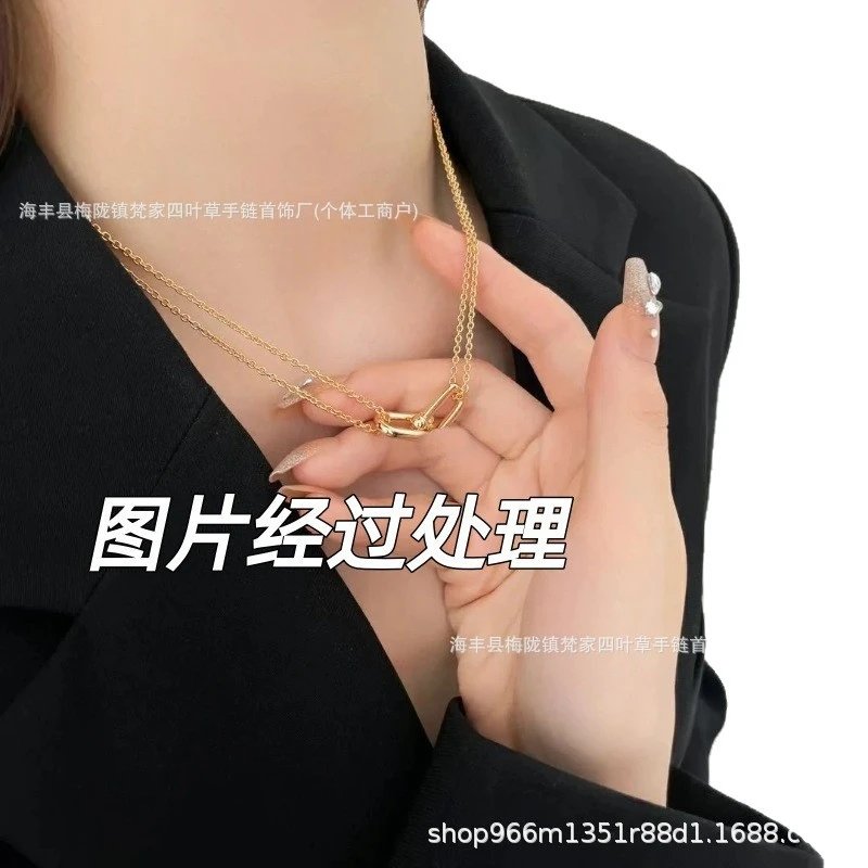蒂家高级感玫瑰金双环马蹄扣项链杨颖明星同款U形双U锁骨链送女友