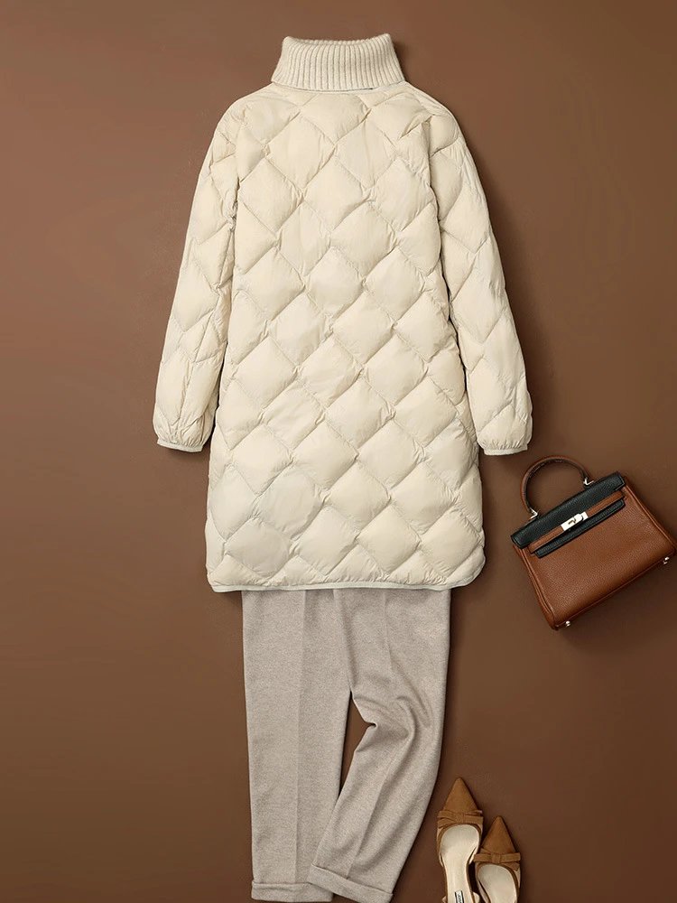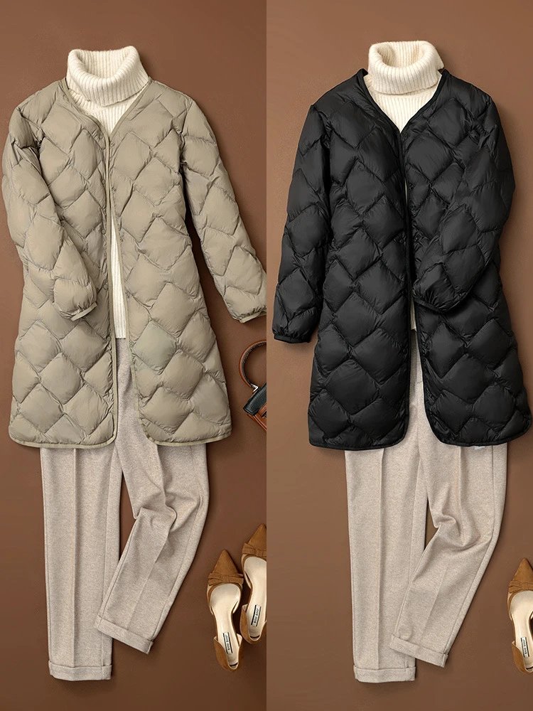 轻薄款羽绒服女中长款 秋冬新款圆领长款外套无领可变V领内胆