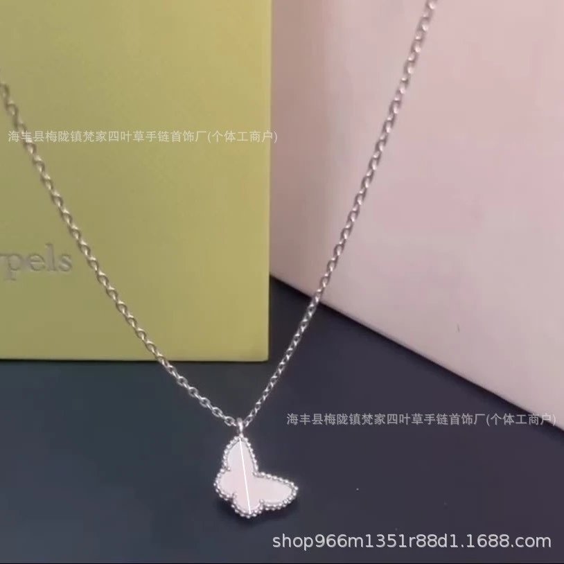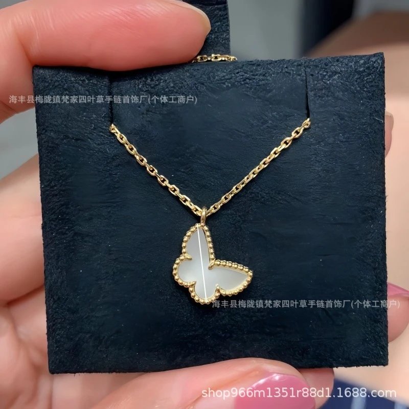 梵家V金四叶草小蝴蝶贝母项链女高级气质蝴蝶锁骨链风