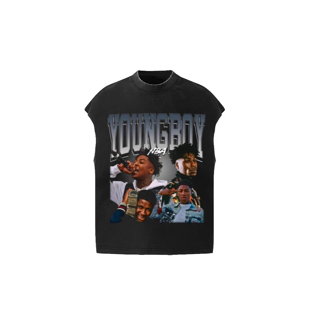 Young Thug杰弗里亚特兰说唱歌手BIG FACE人像水洗做旧无袖坎肩