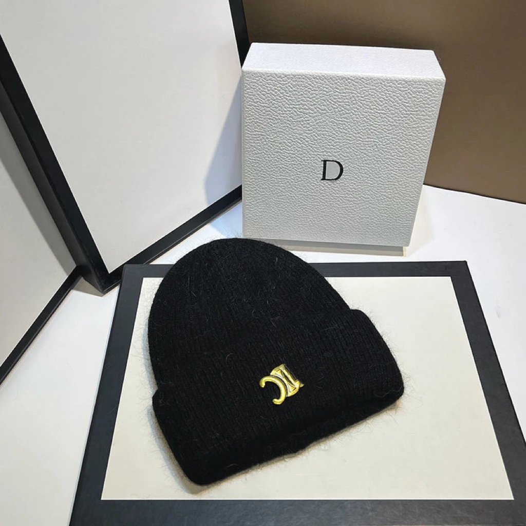秋冬季新款凯旋门兔毛针织帽女保暖加厚毛线帽大头帽子