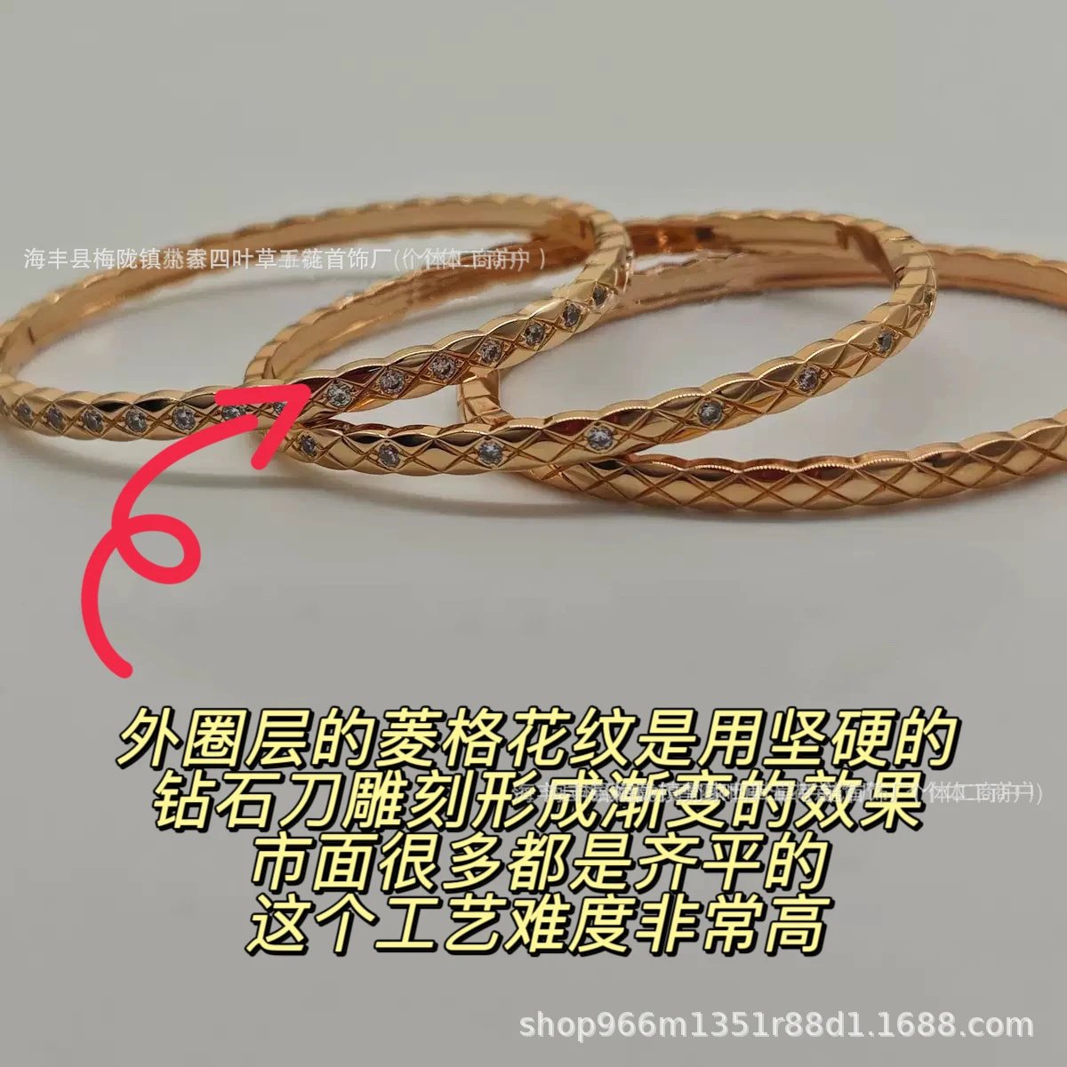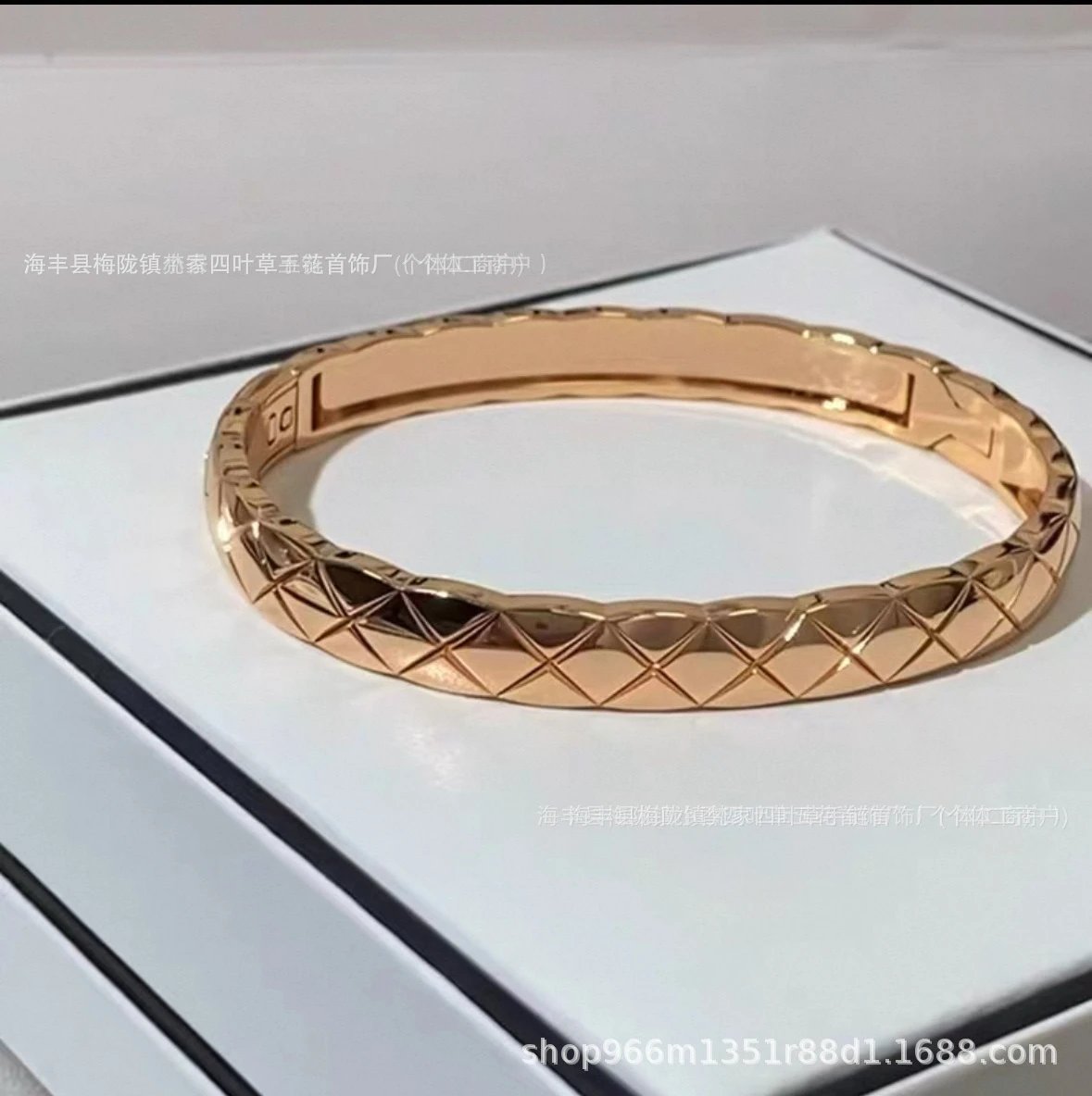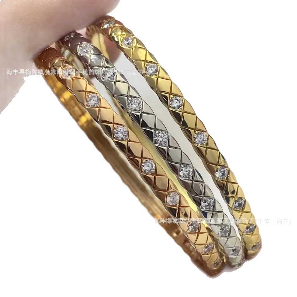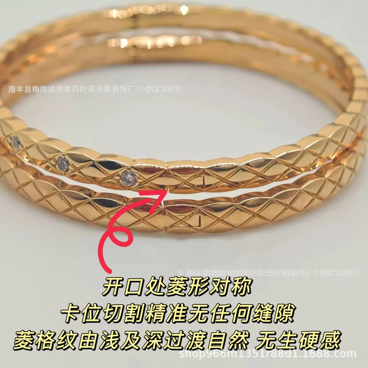 coco香家窄版宽版菱格纹手镯精雕无钻镶钻高级感米金色手环