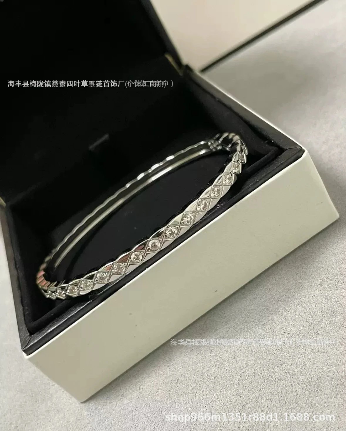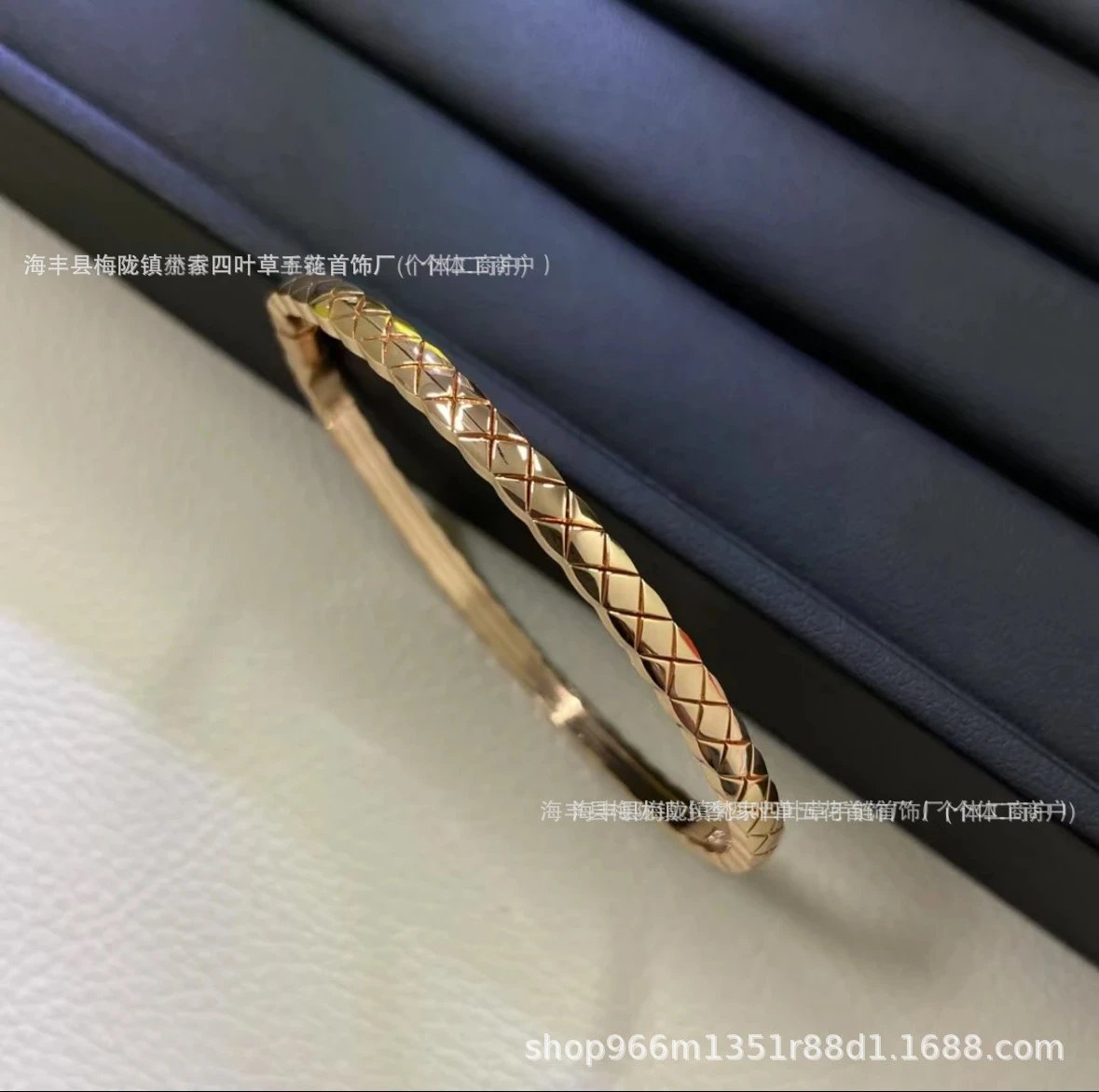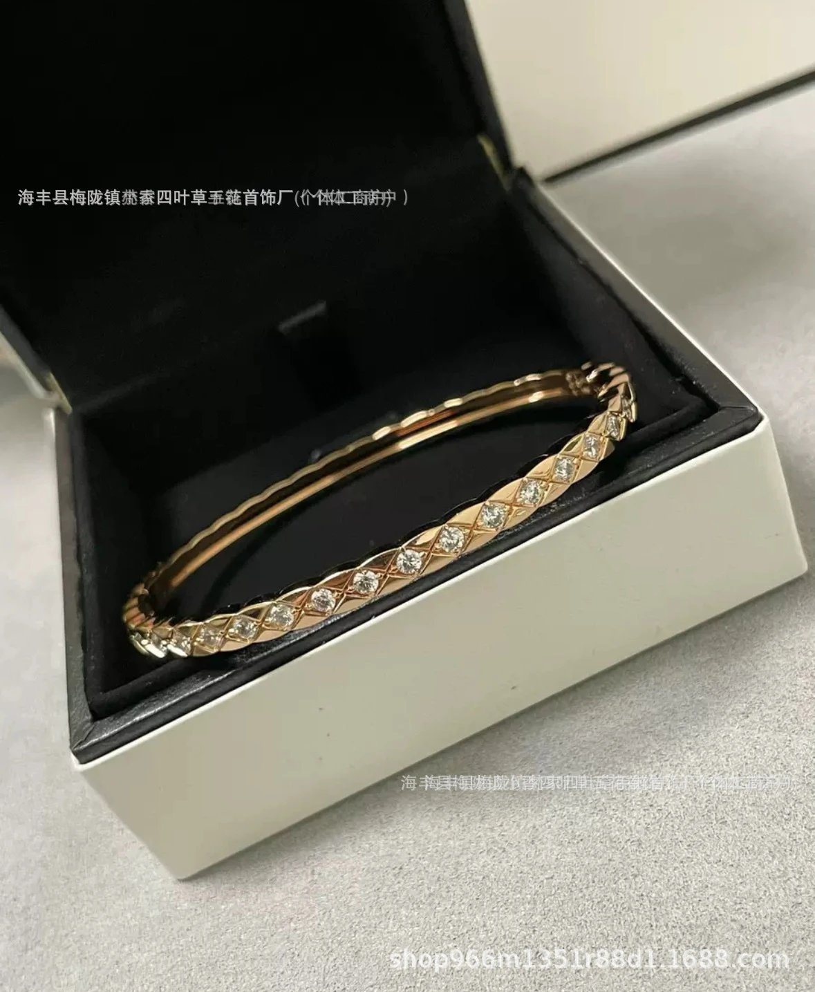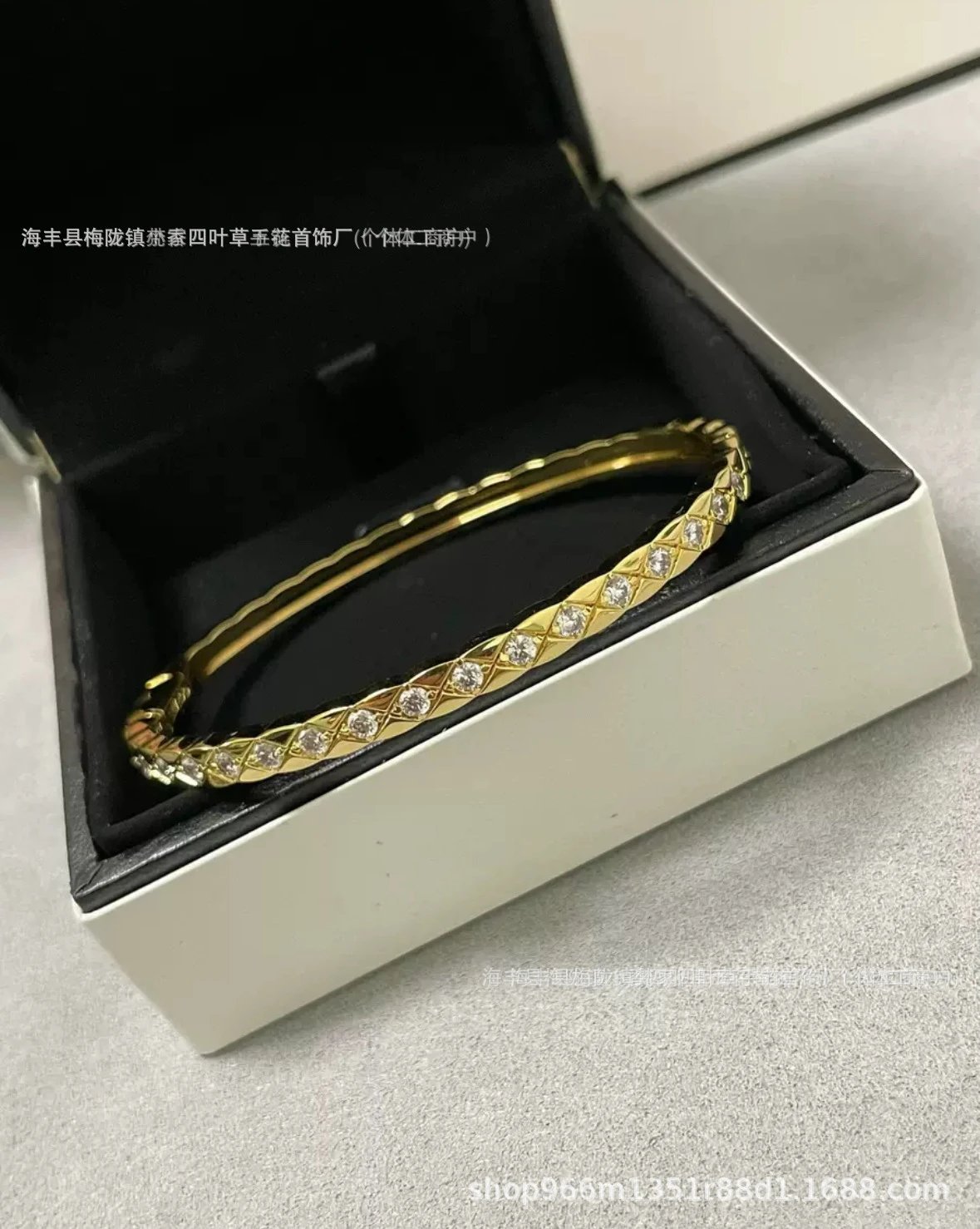 coco香家窄版宽版菱格纹手镯精雕无钻镶钻高级感米金色手环