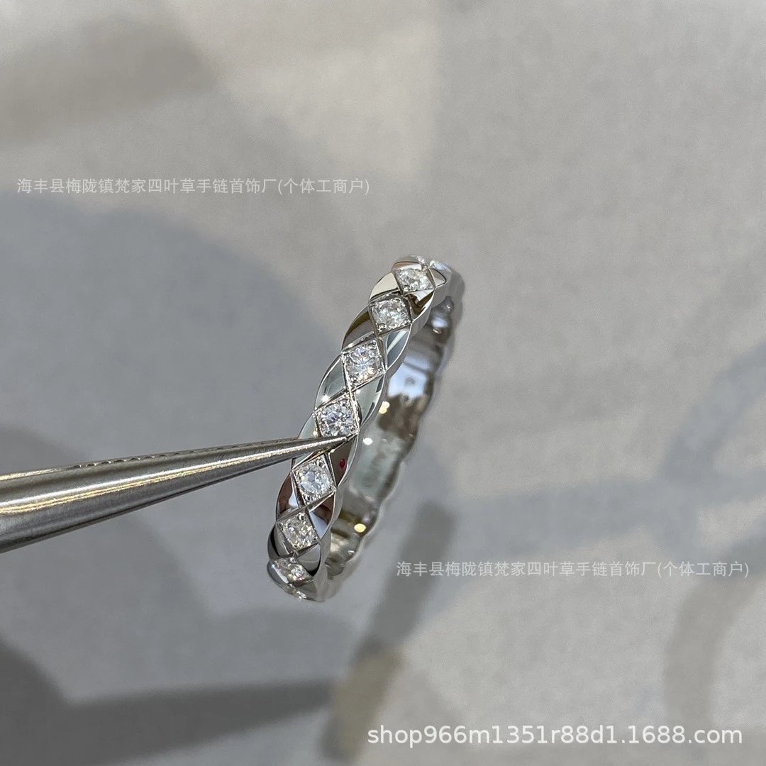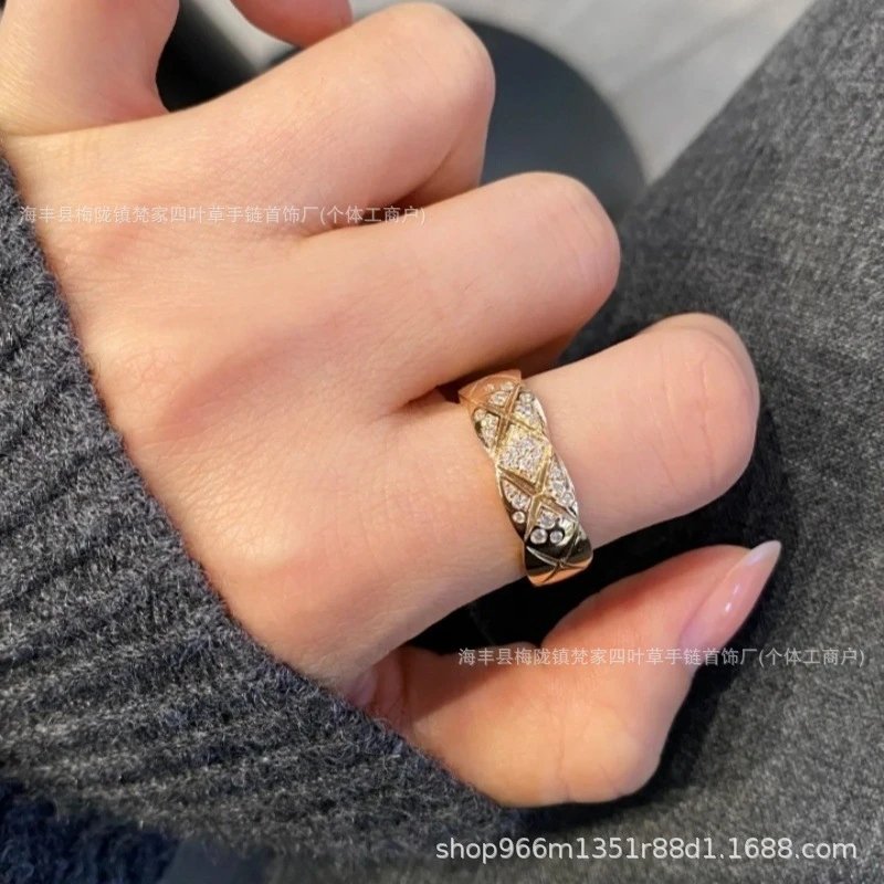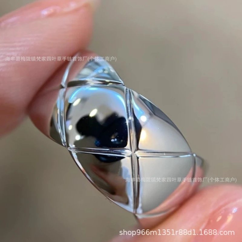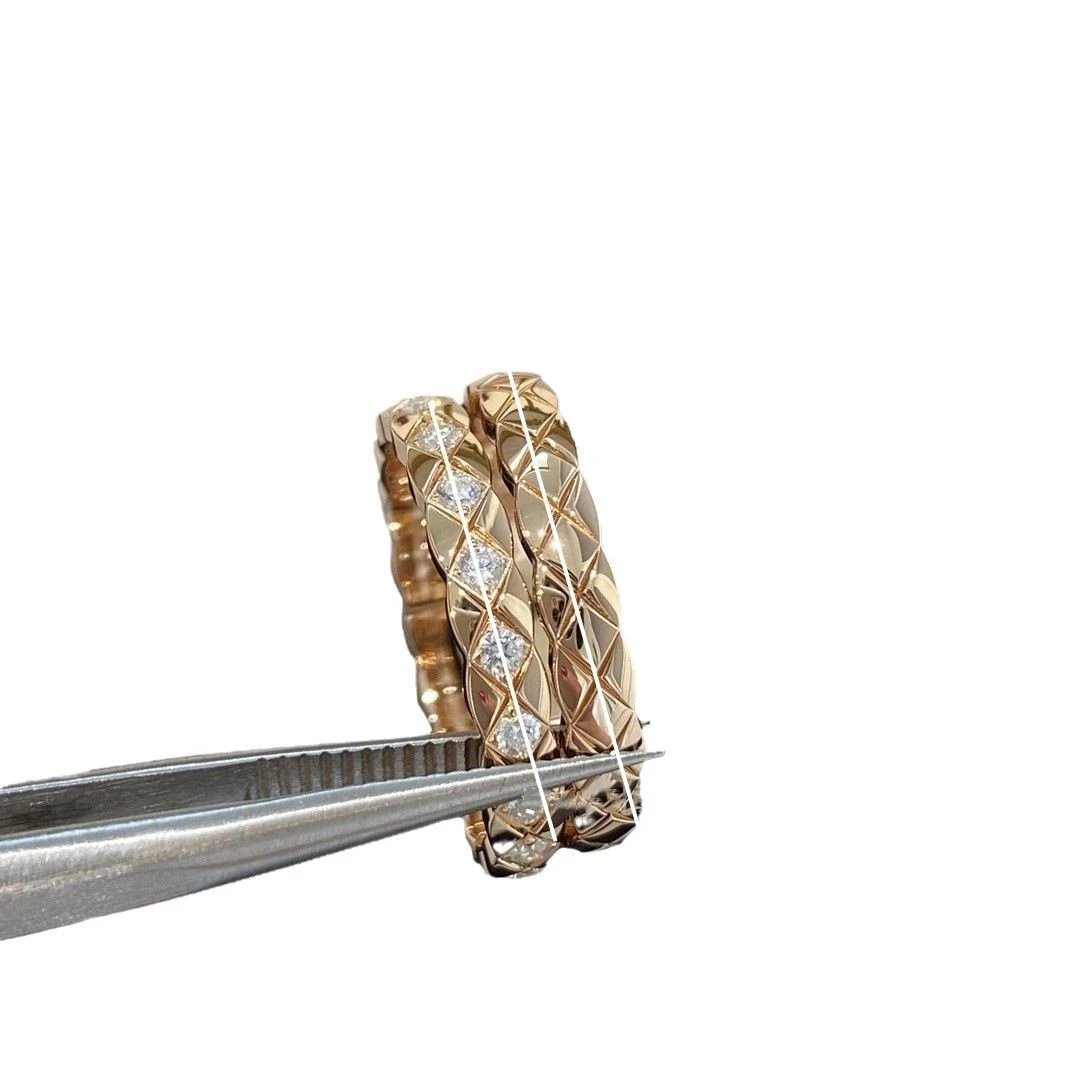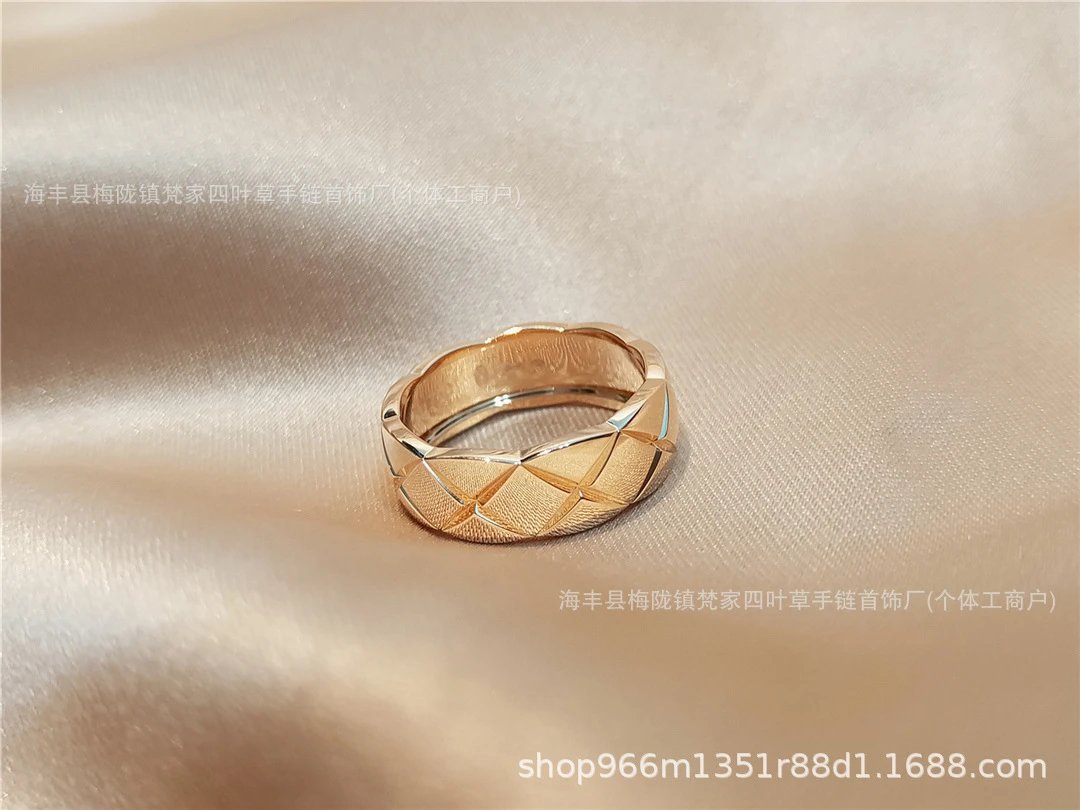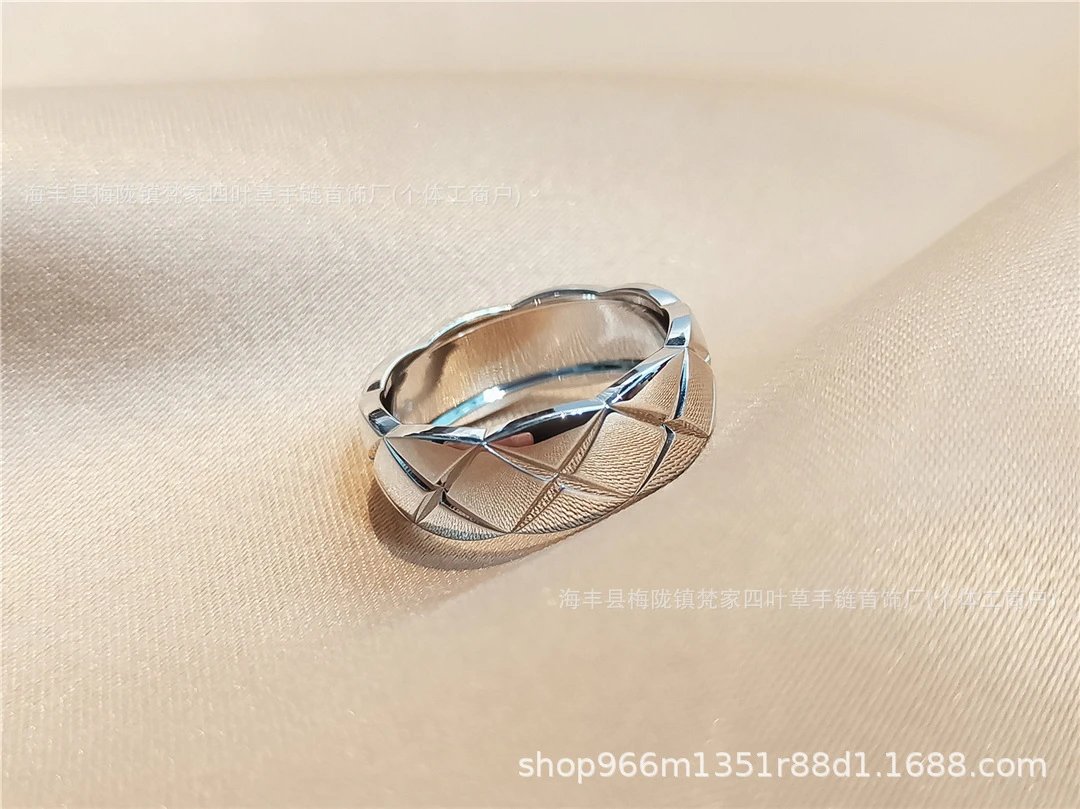 coco小香风窄版宽版指环菱格无钻间钻戒指CNC情侣菱格戒指