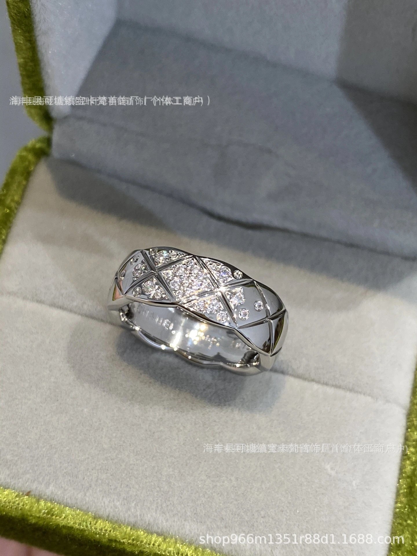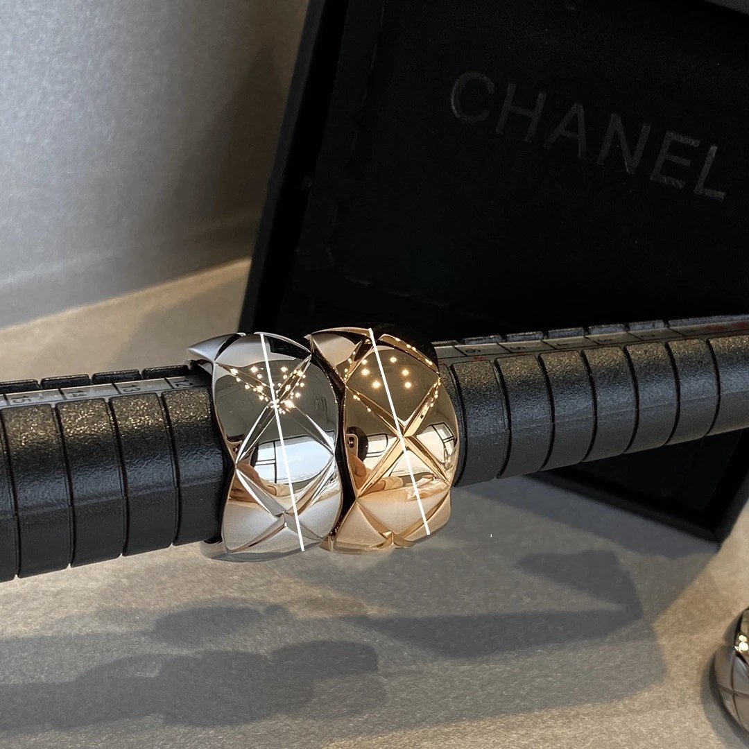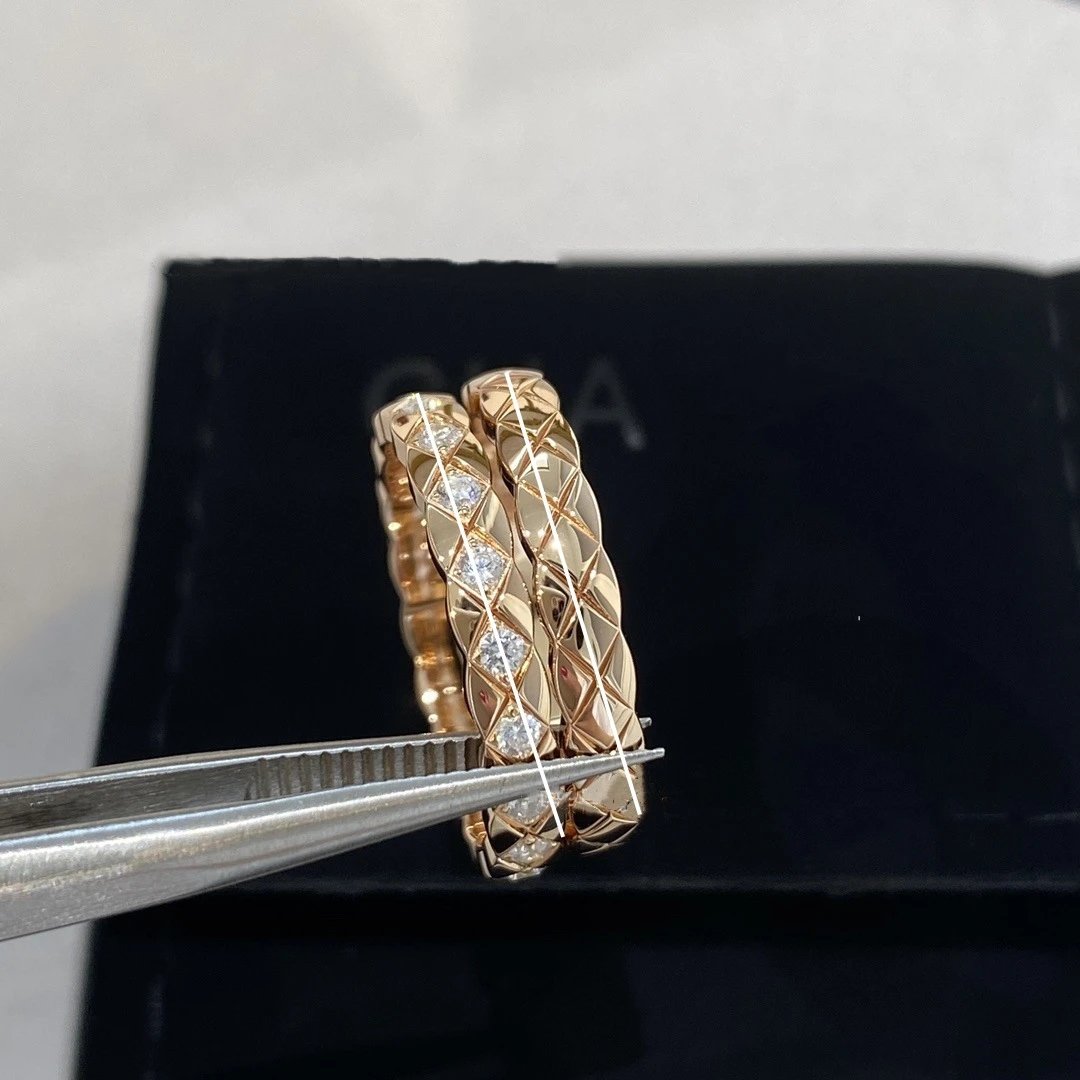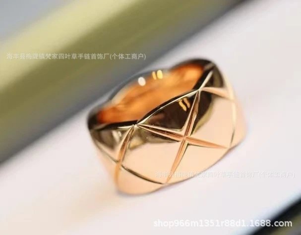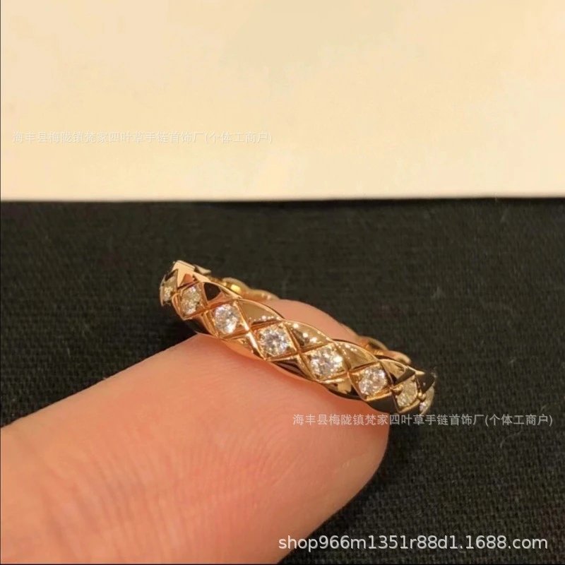 coco小香风窄版宽版指环菱格无钻间钻戒指CNC情侣菱格戒指