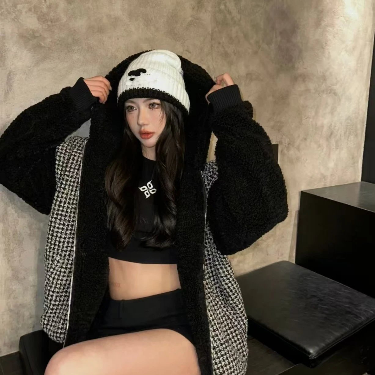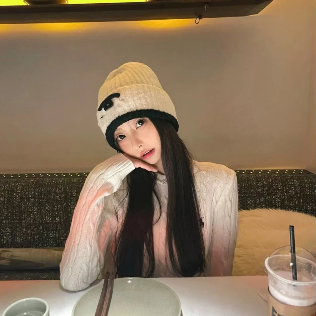 拼色小香毛线帽秋冬显脸小保暖护耳针织帽网红冷帽百搭堆堆帽