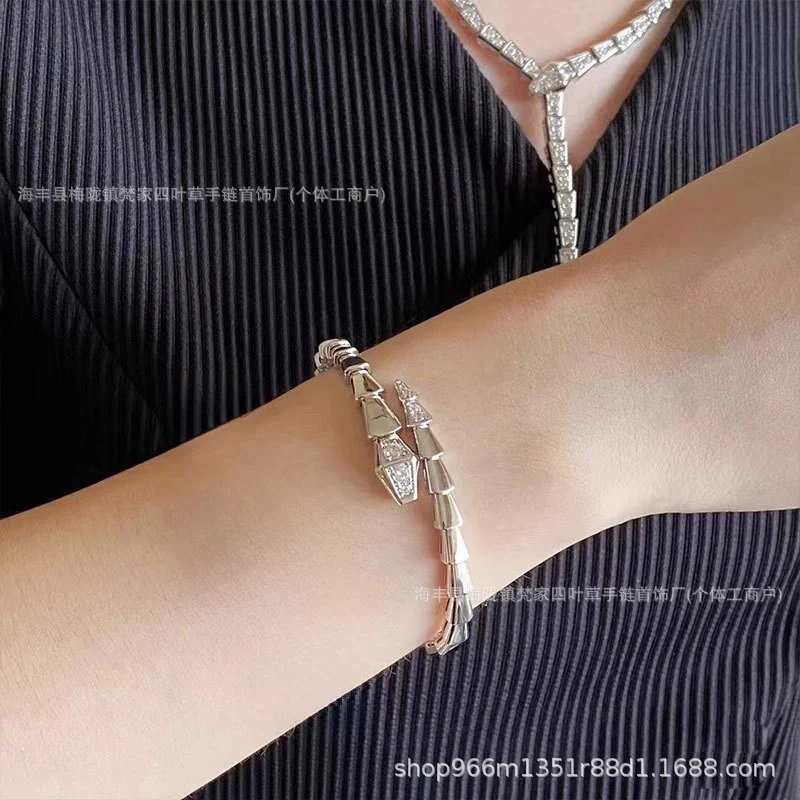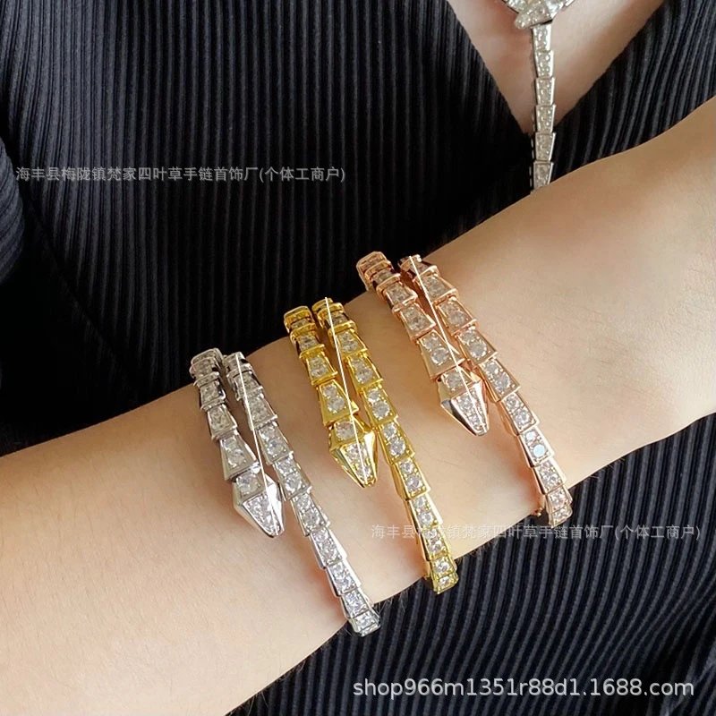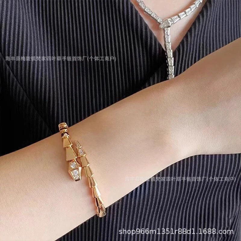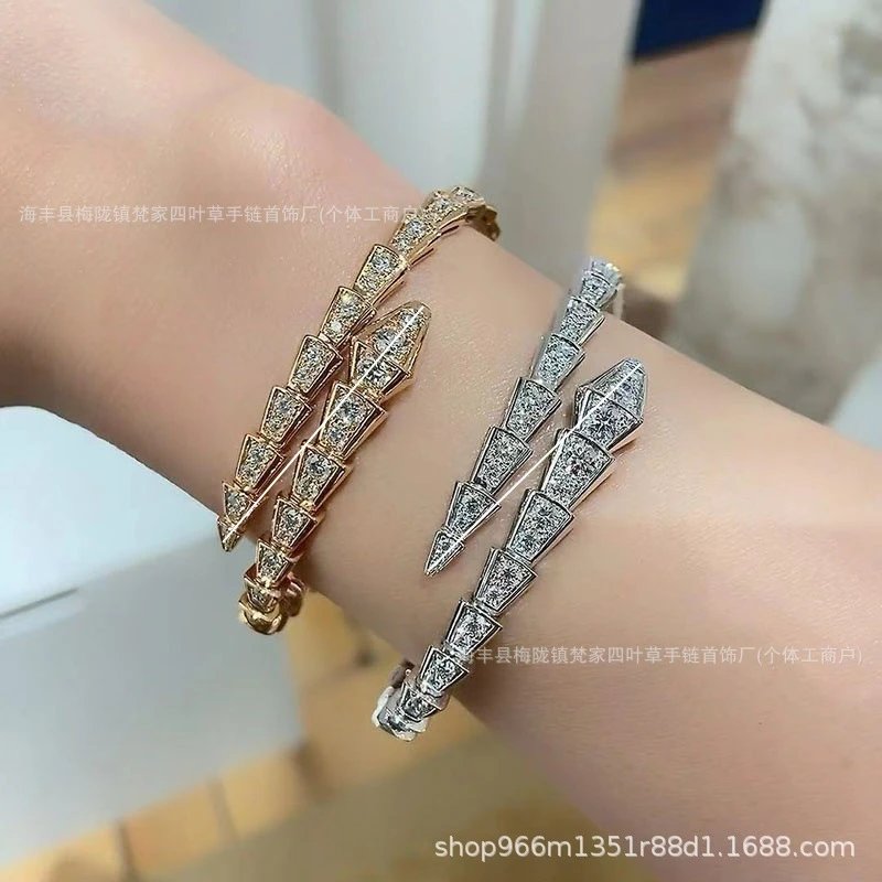 宝家蛇形手镯男女头尾满钻蛇骨开口手环轻奢蛇头弹力叠戴