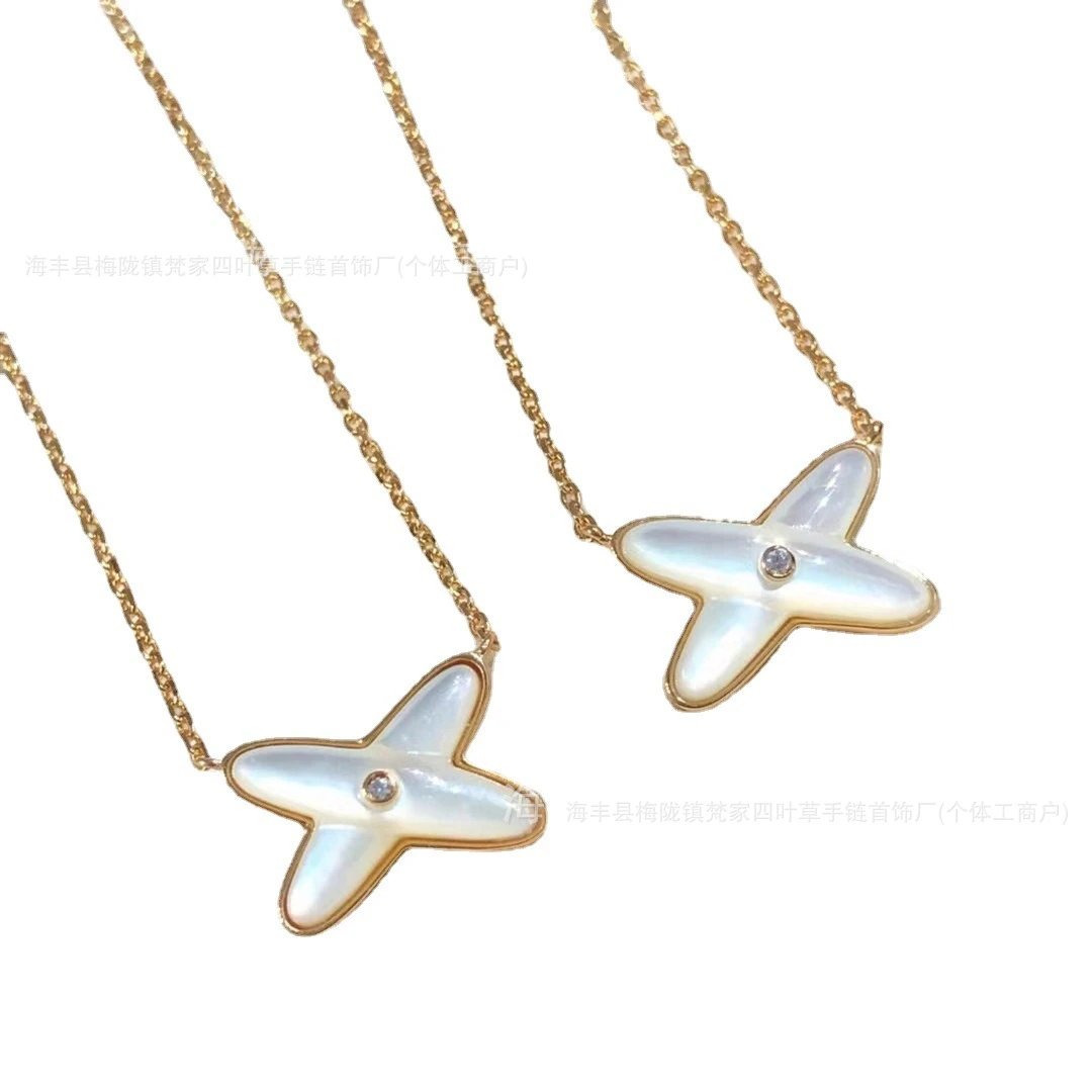 大花双面四叶草项链女V金天然白贝母红玉髓精工精工毛衣链