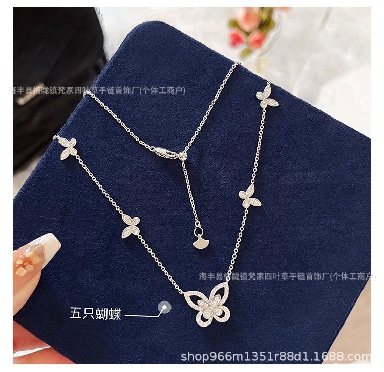 格家电镀白金两只五只幻影蝴蝶项链轻奢锁骨链女珠宝工艺ins