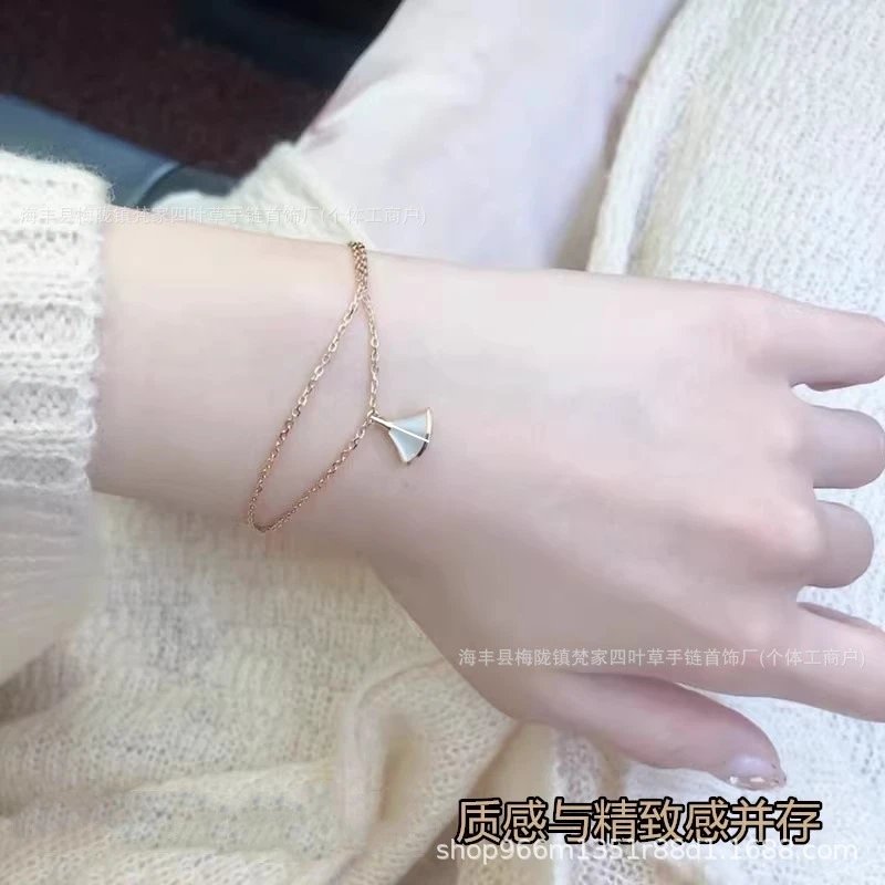 宝家轻奢白贝母双层手链女ins设计镀18k玫瑰金裙子红玉髓高级