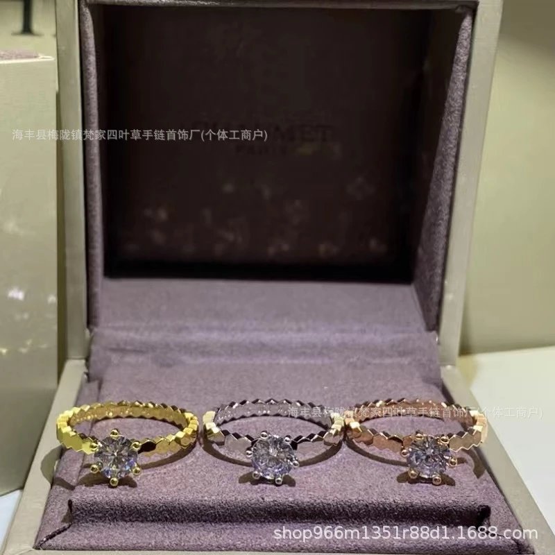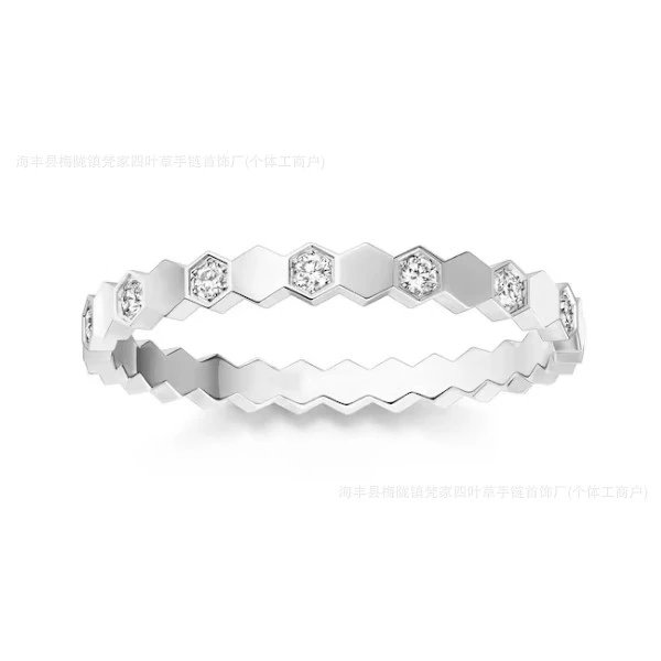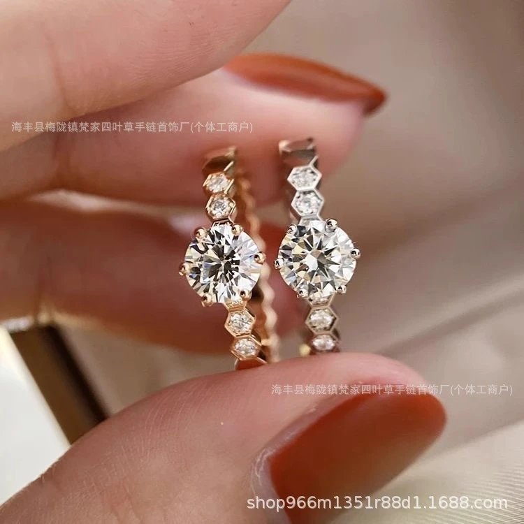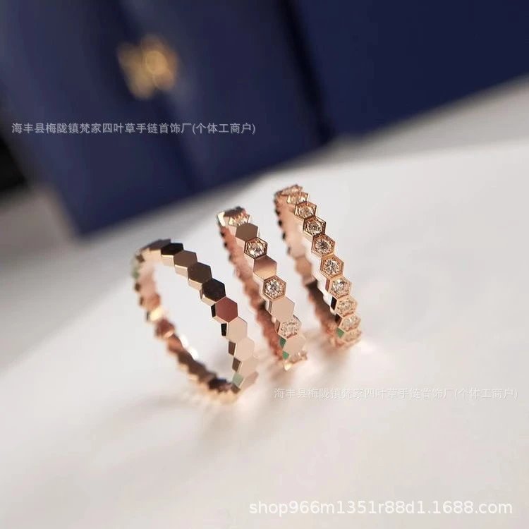 尚美蜂巢戒指女ins设计满天星18k玫瑰v金蜂窝素圈排钻珍珠